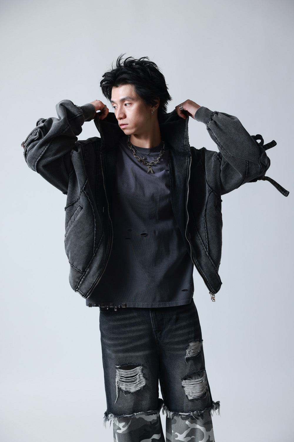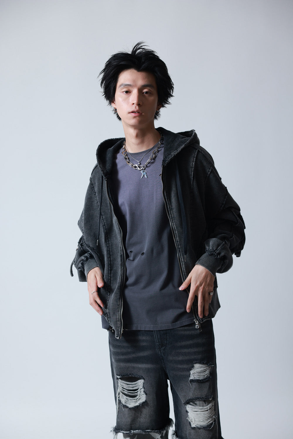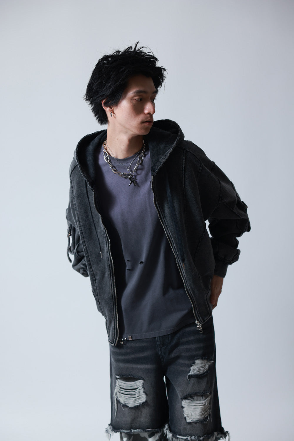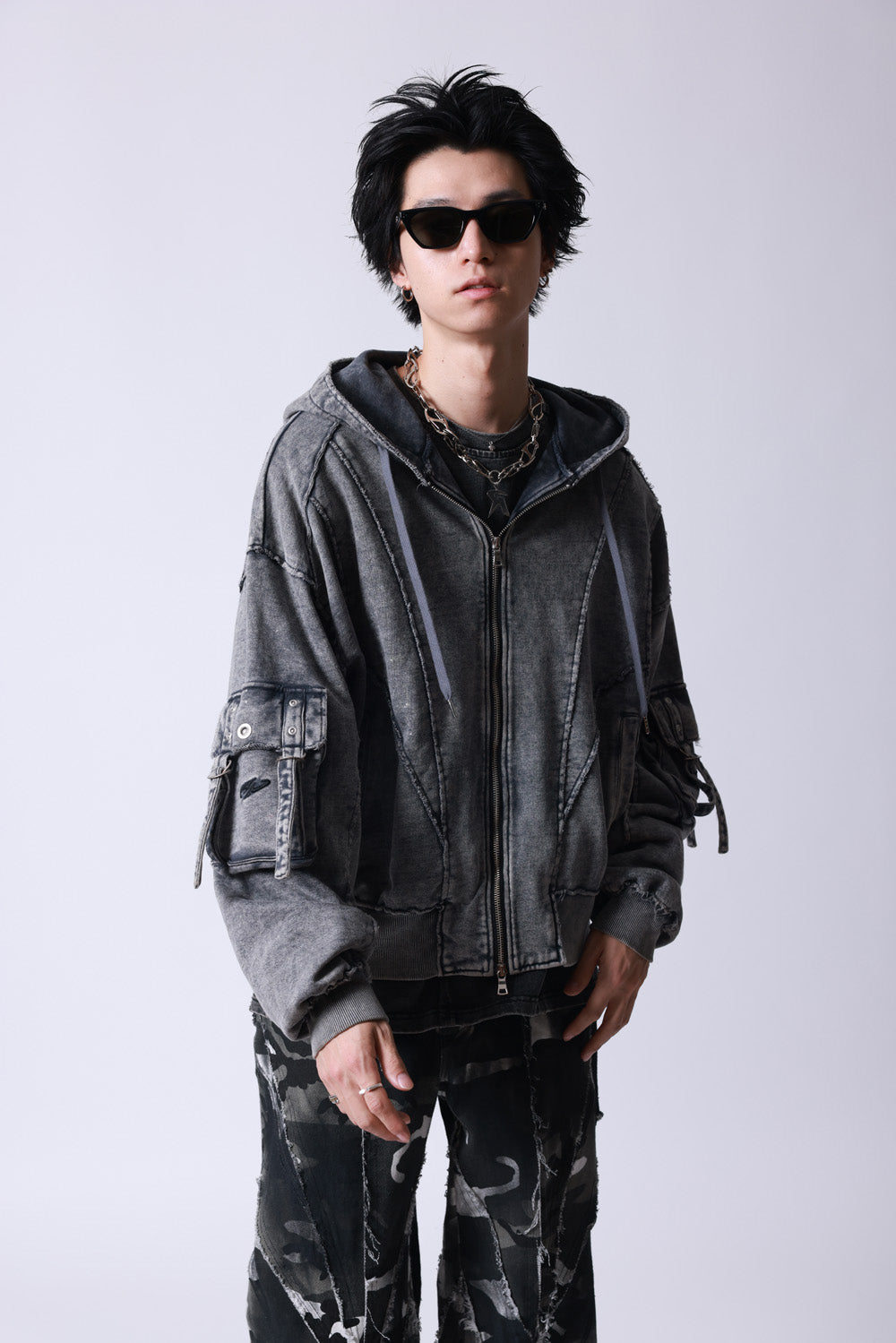 【P.N UNDERGROUND】切替ケミカルZIPパーカー (735424)