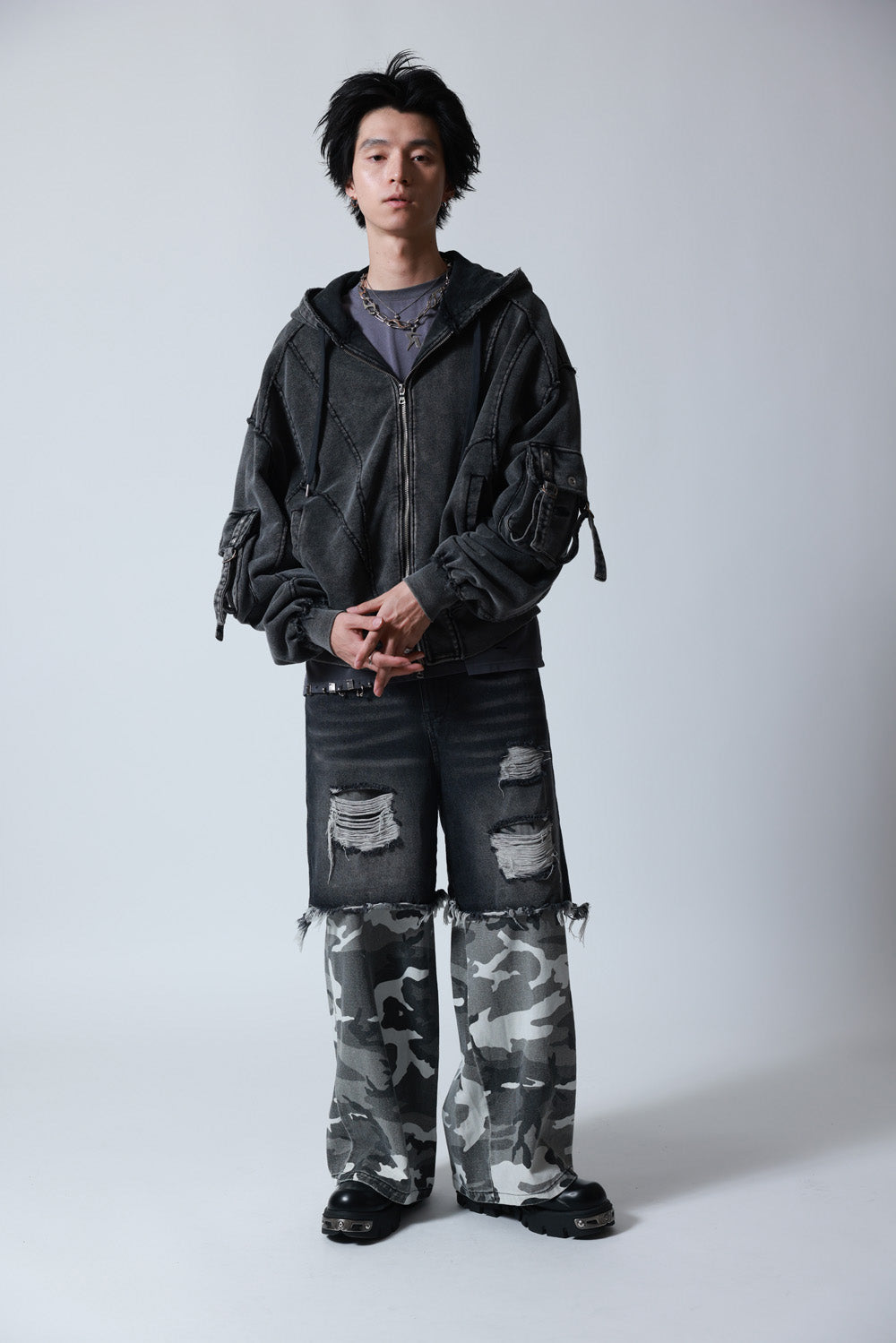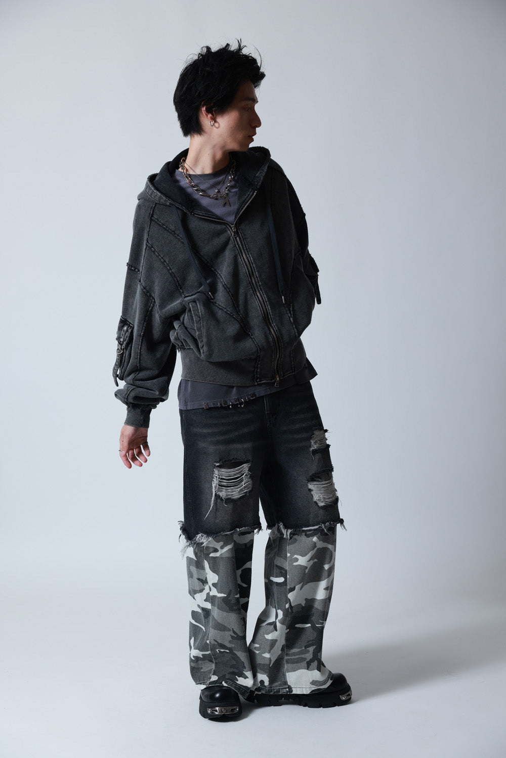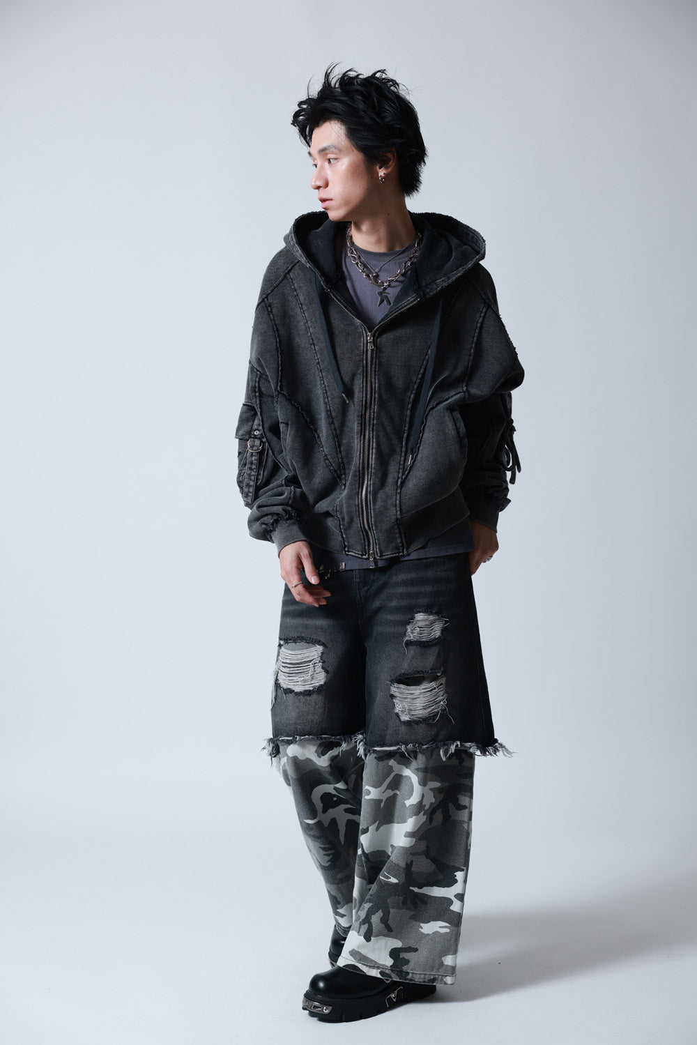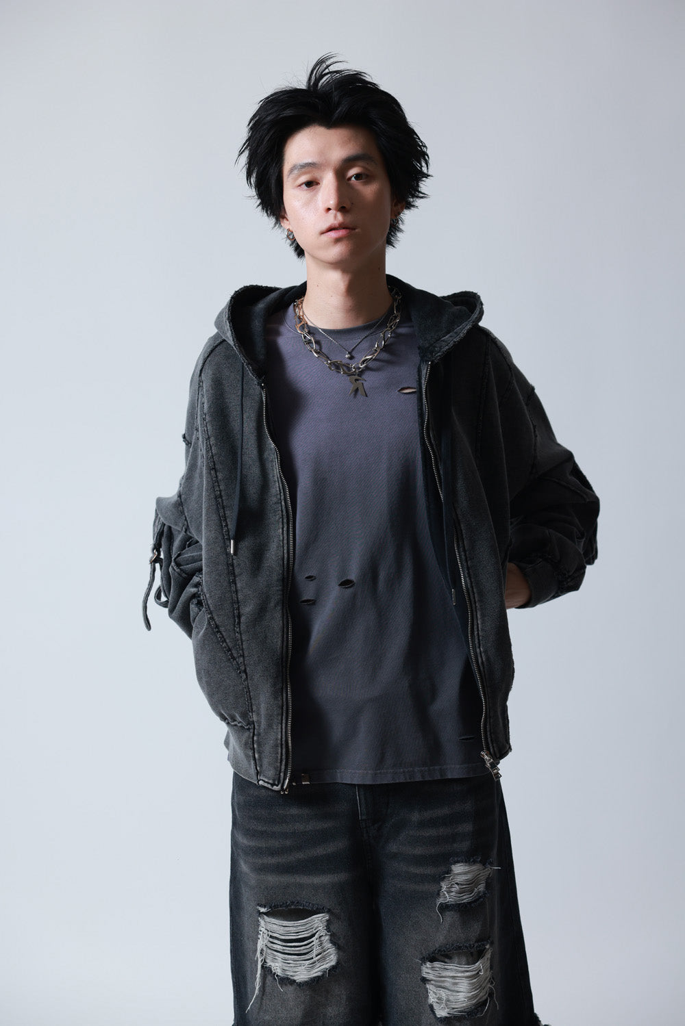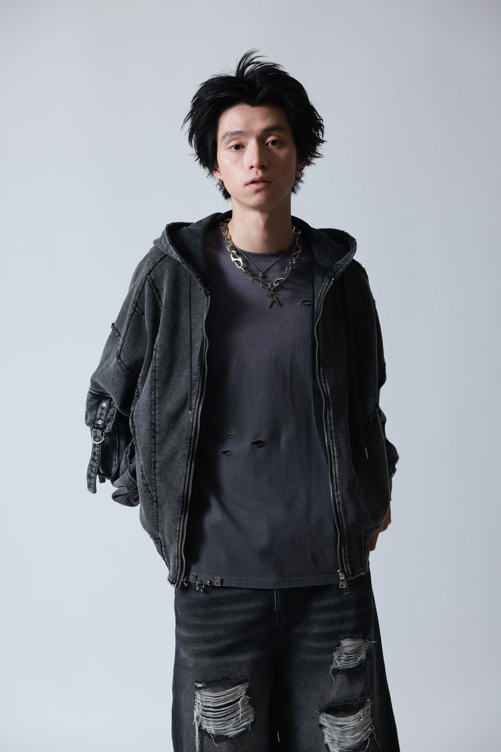 【P.N UNDERGROUND】切替ケミカルZIPパーカー (735424)