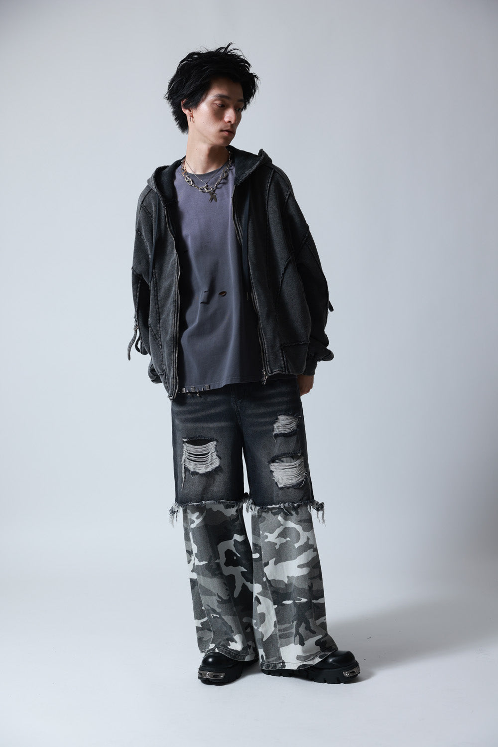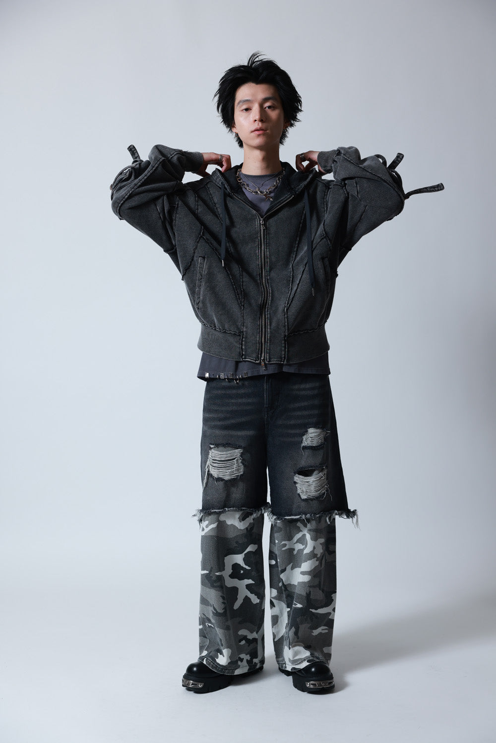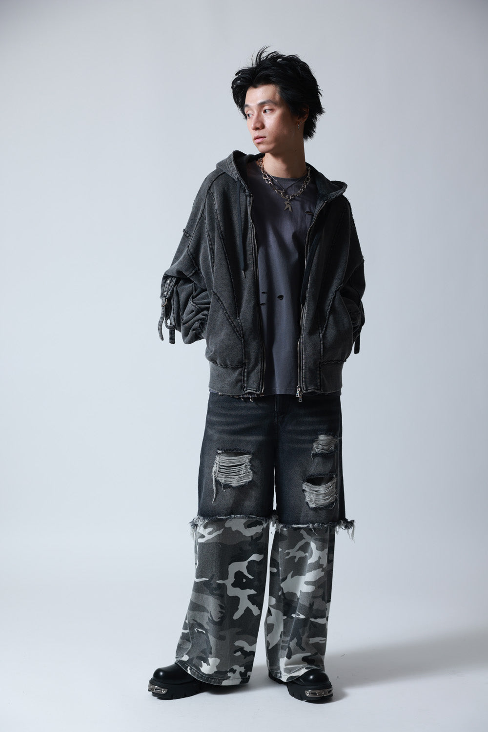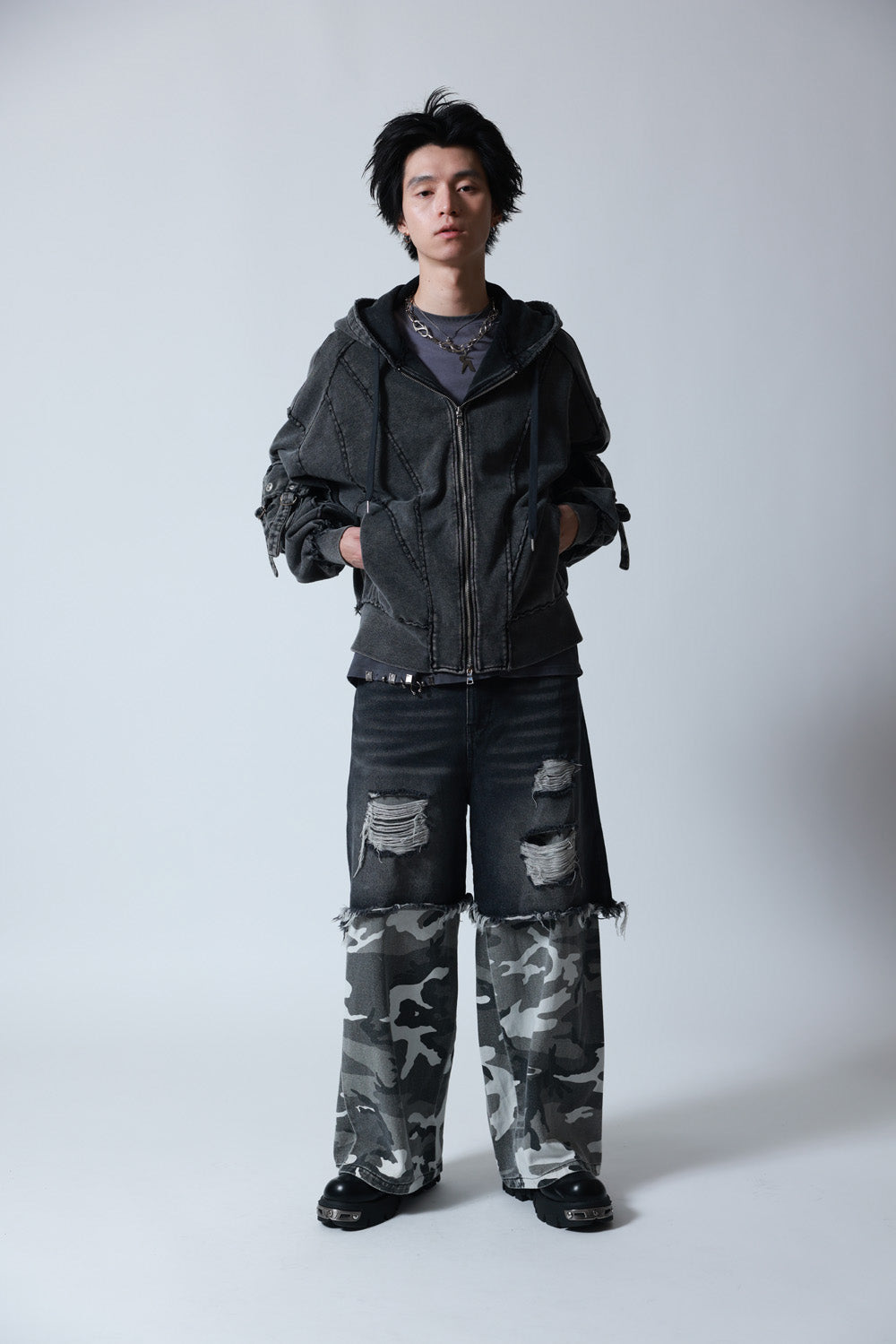 【P.N UNDERGROUND】切替ケミカルZIPパーカー (735424)