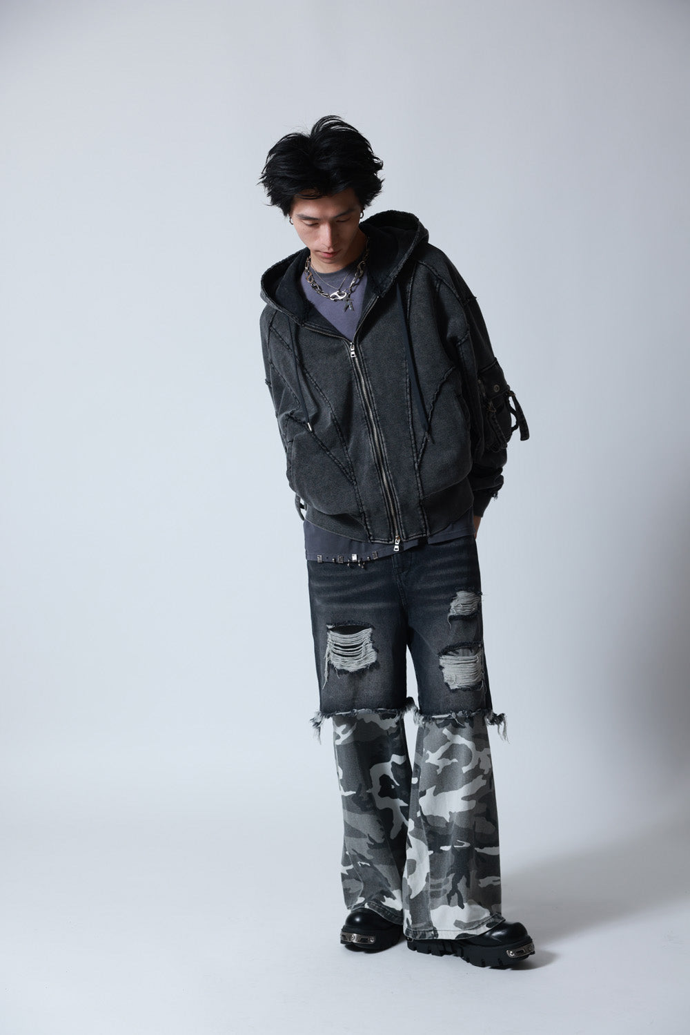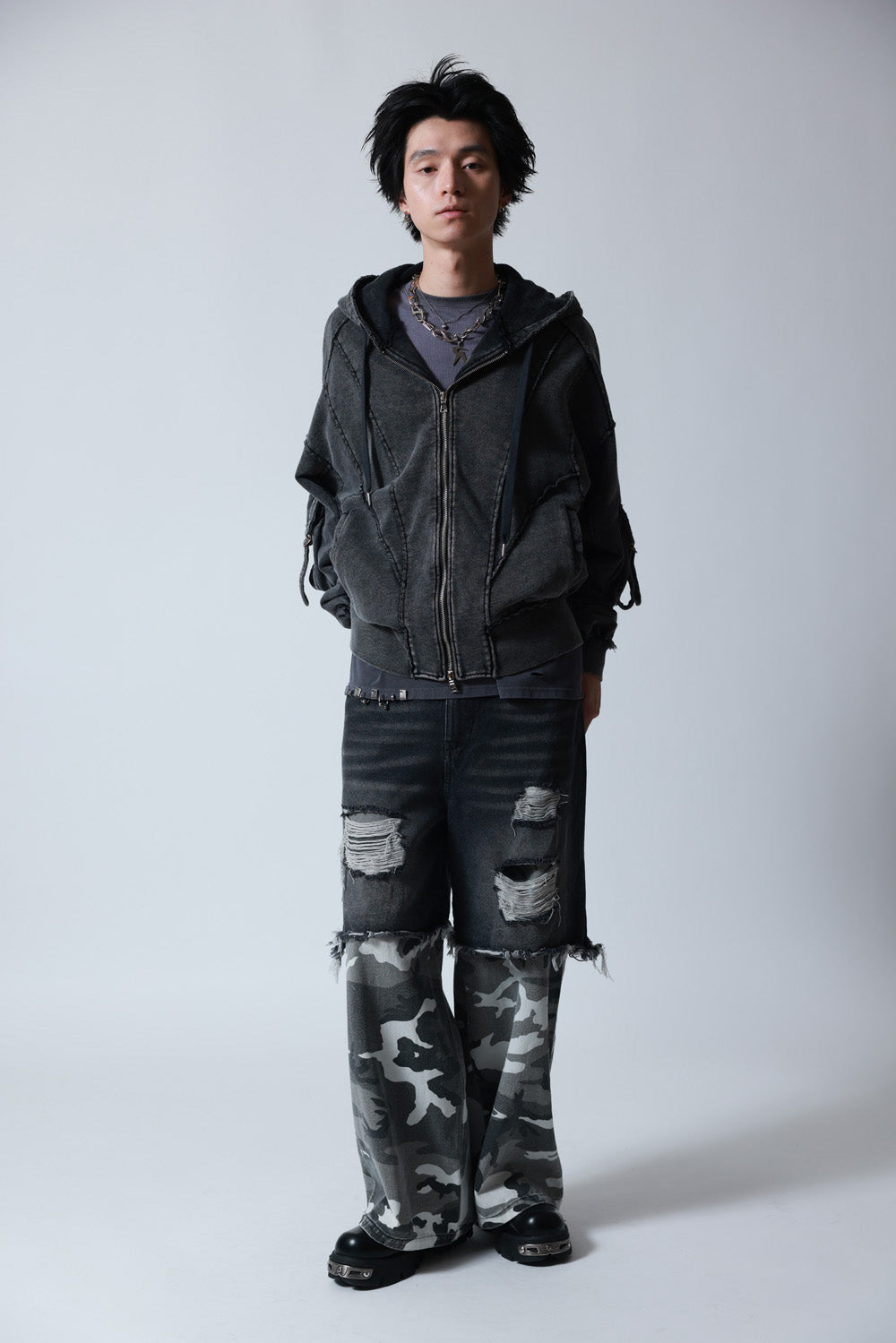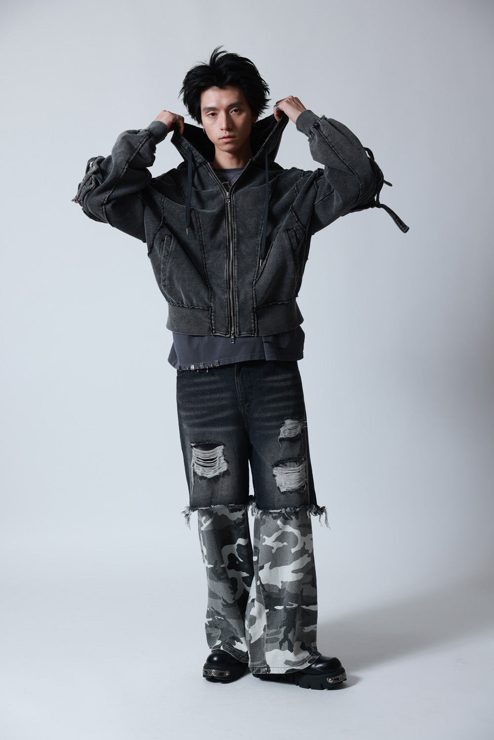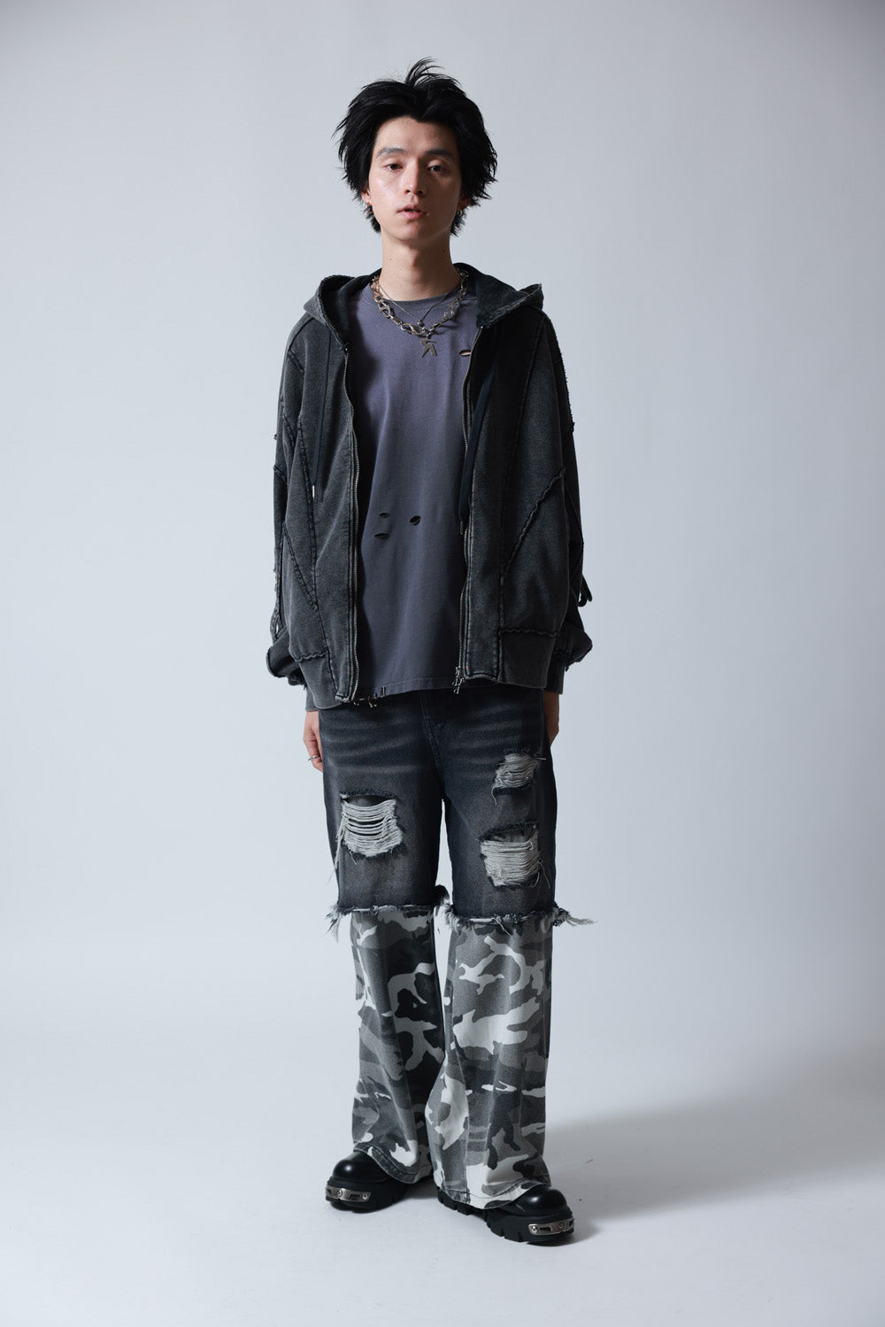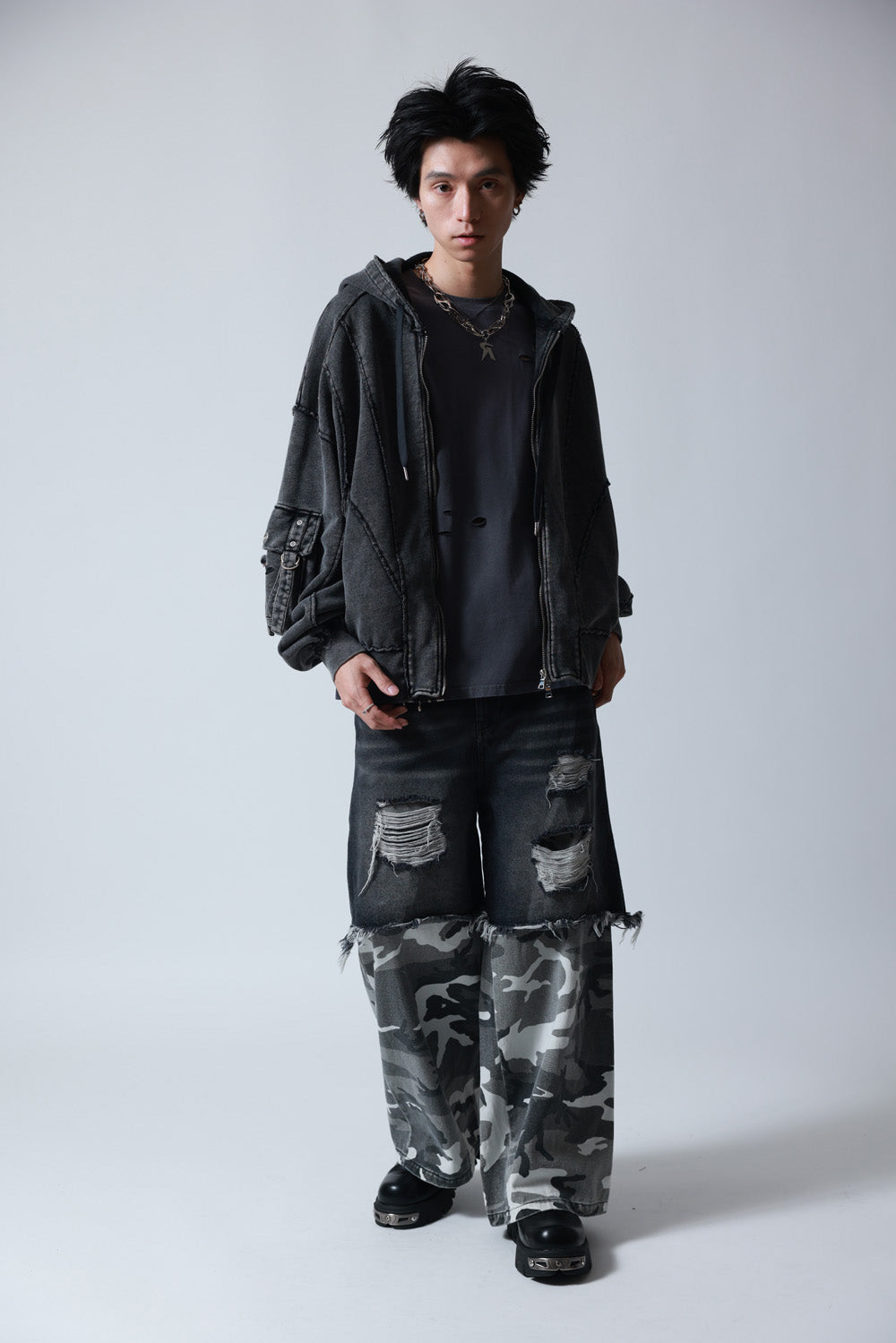 【P.N UNDERGROUND】切替ケミカルZIPパーカー (735424)