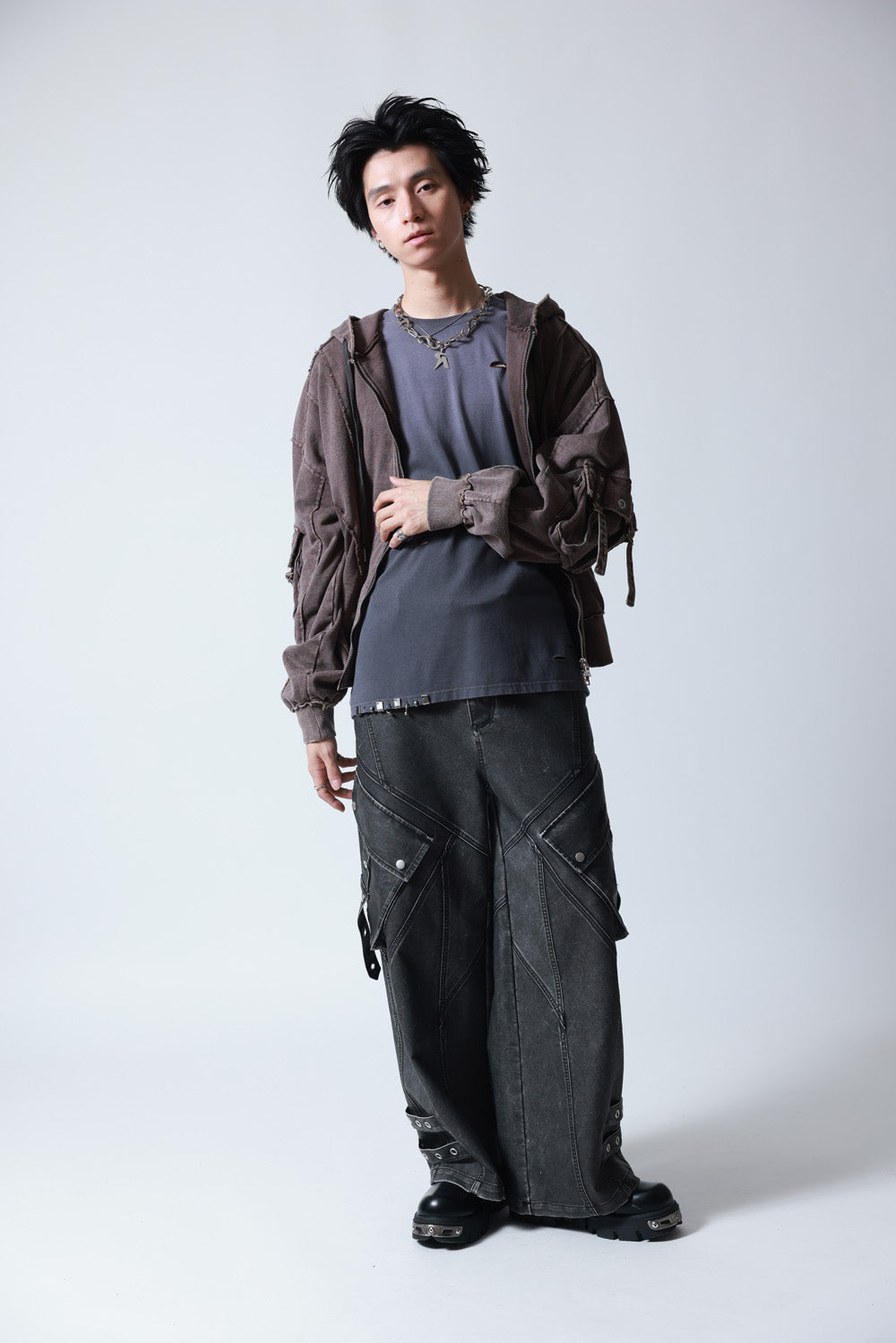 「UNDERGROUND」をテーマにシンプルな中にもどこか無骨さとインパクトを感じられるアイテムを展開。シルエットはY2Kを意識しつつも加工や付属、縫製などでグランジ感を演出し独自のストリートスタイルを提案する気鋭のブランド。