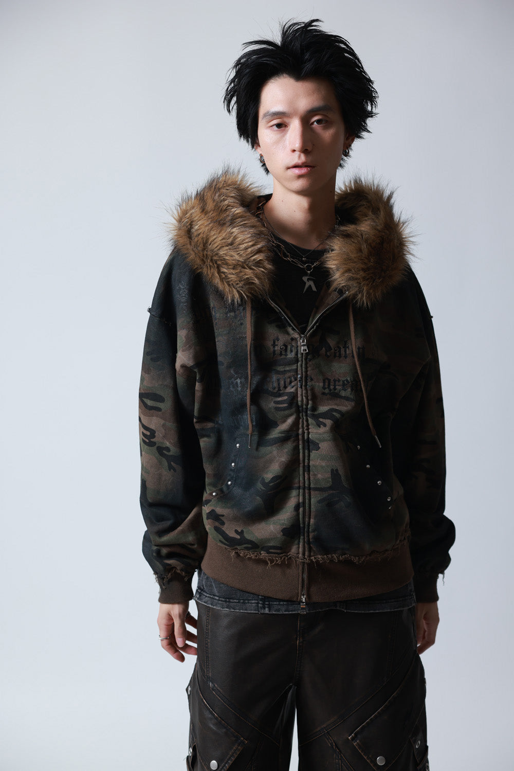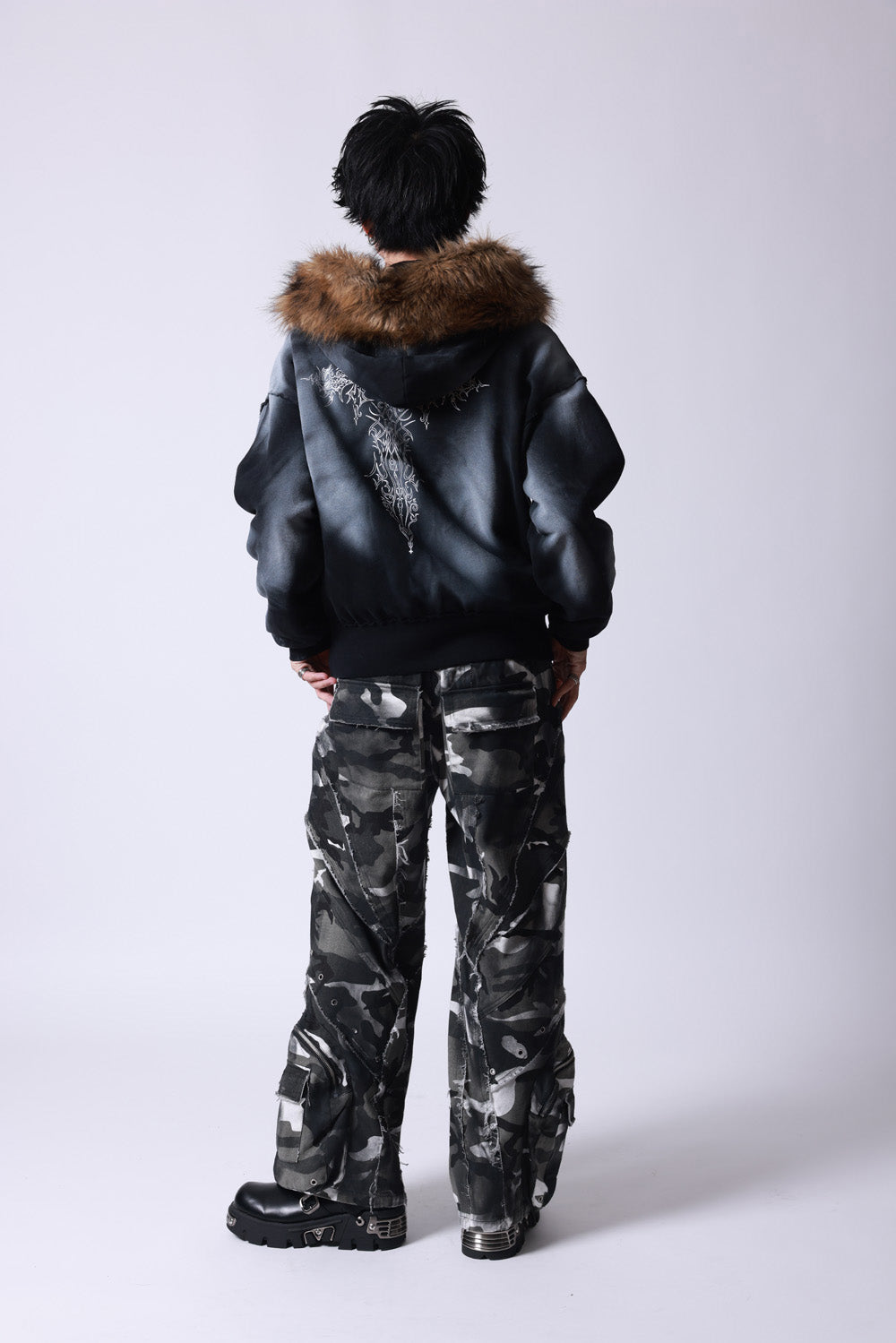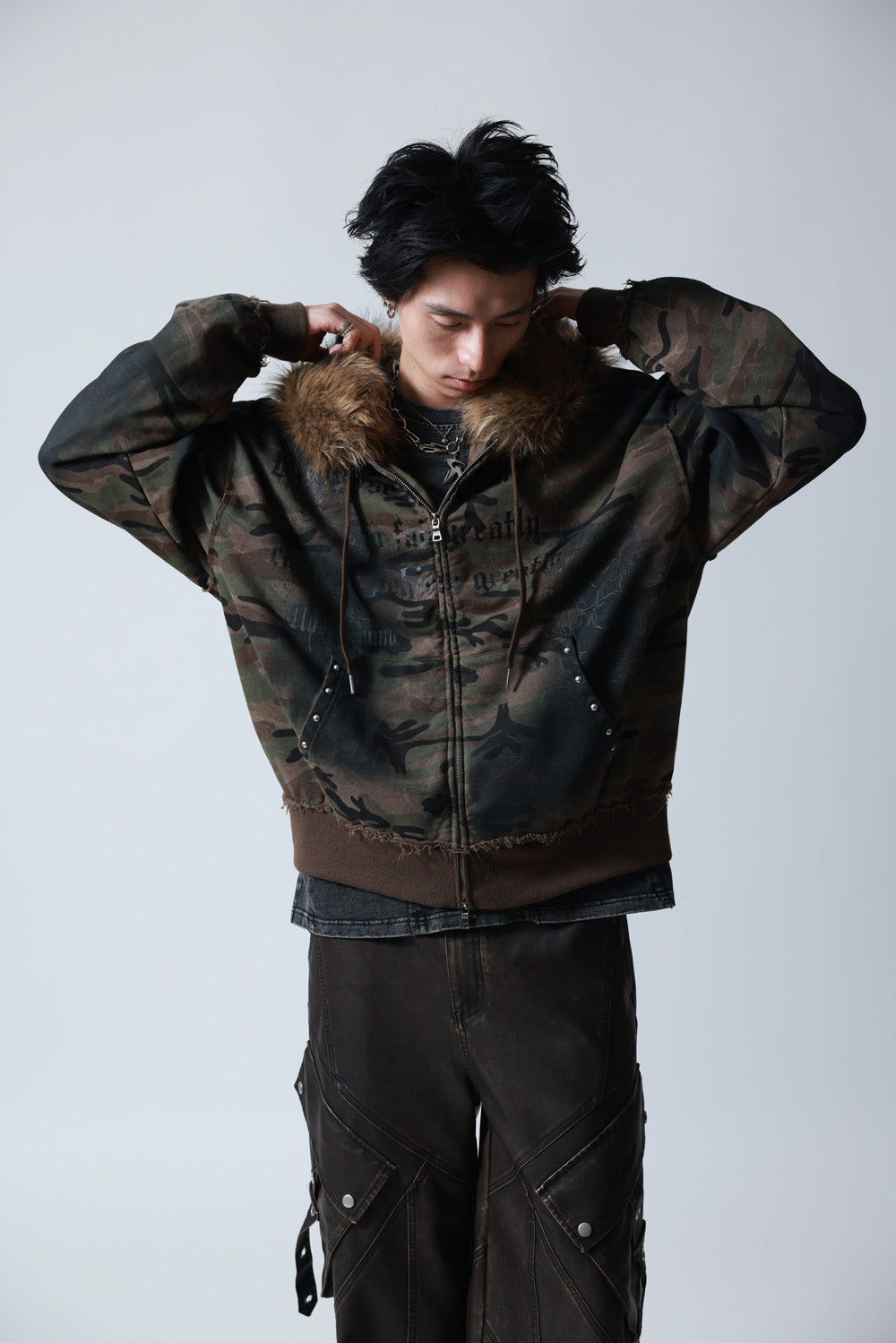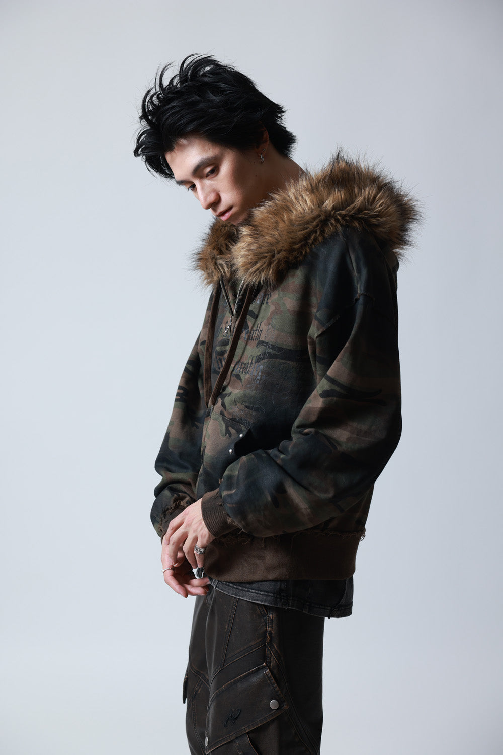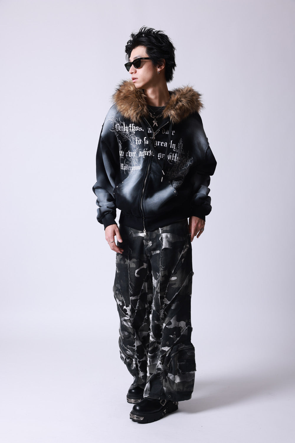 【P.N UNDERGROUND】ファー脱着スプレーZIPパーカー (735425)