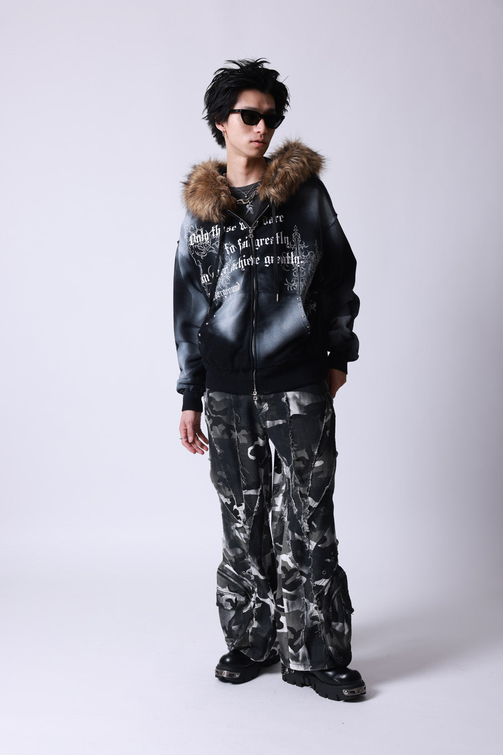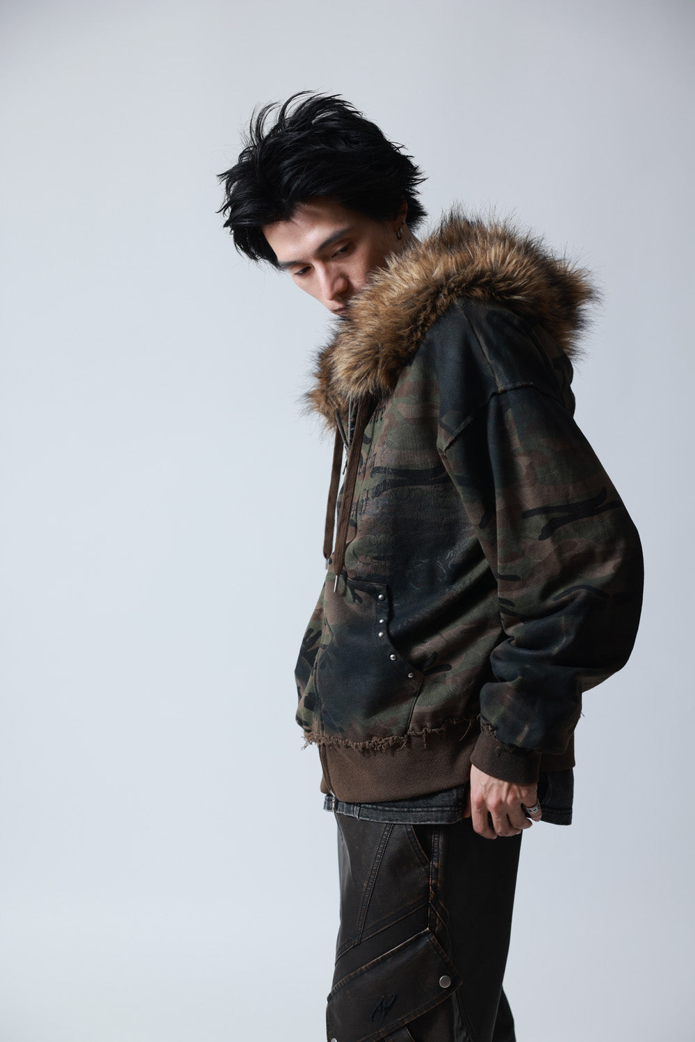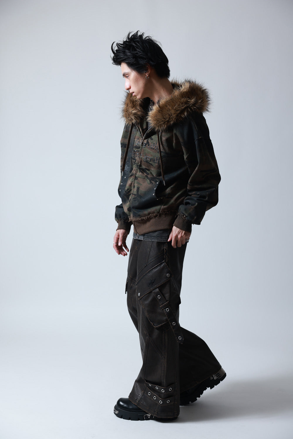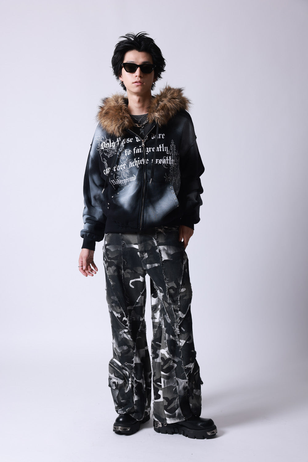 【P.N UNDERGROUND】ファー脱着スプレーZIPパーカー (735425)