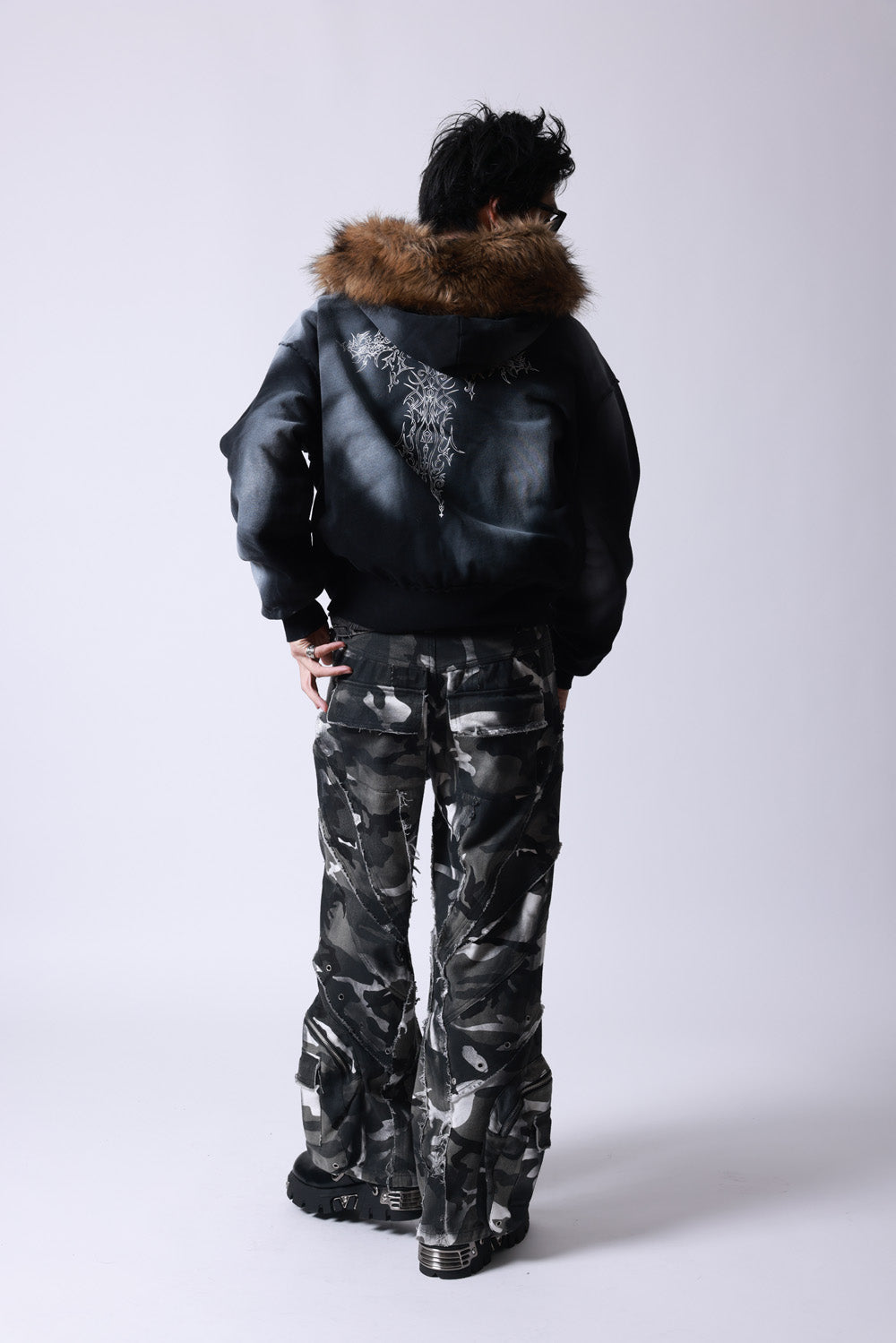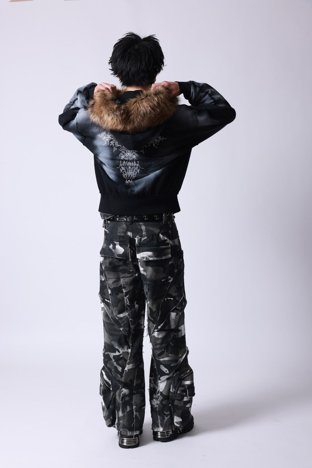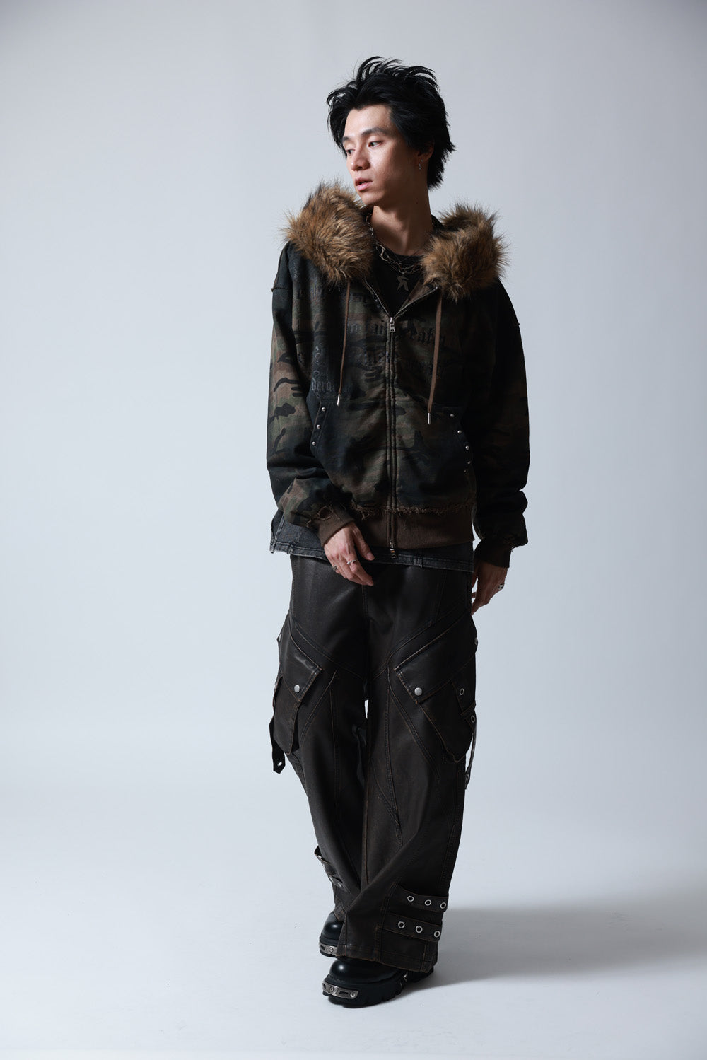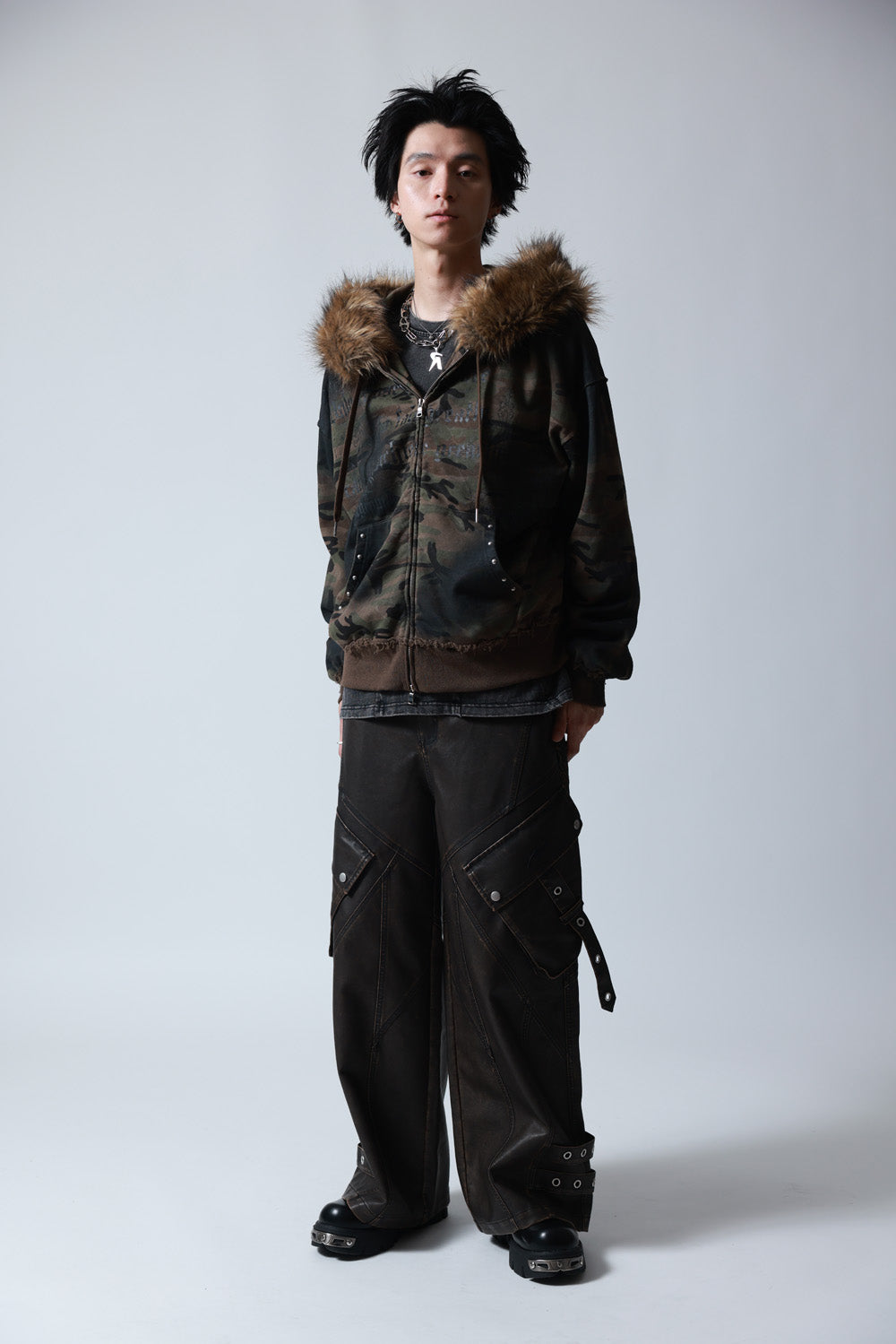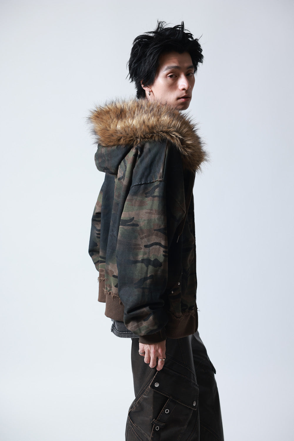 【P.N UNDERGROUND】ファー脱着スプレーZIPパーカー (735425)