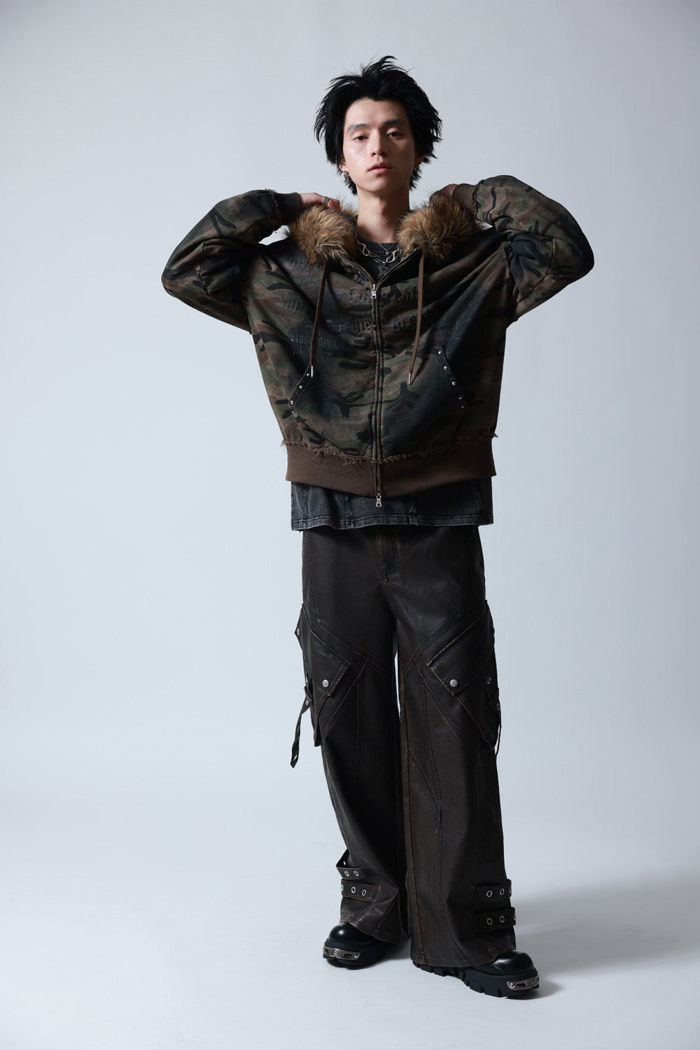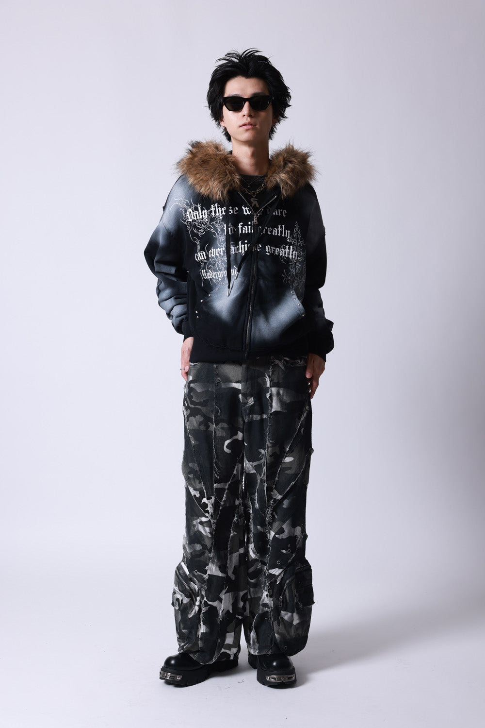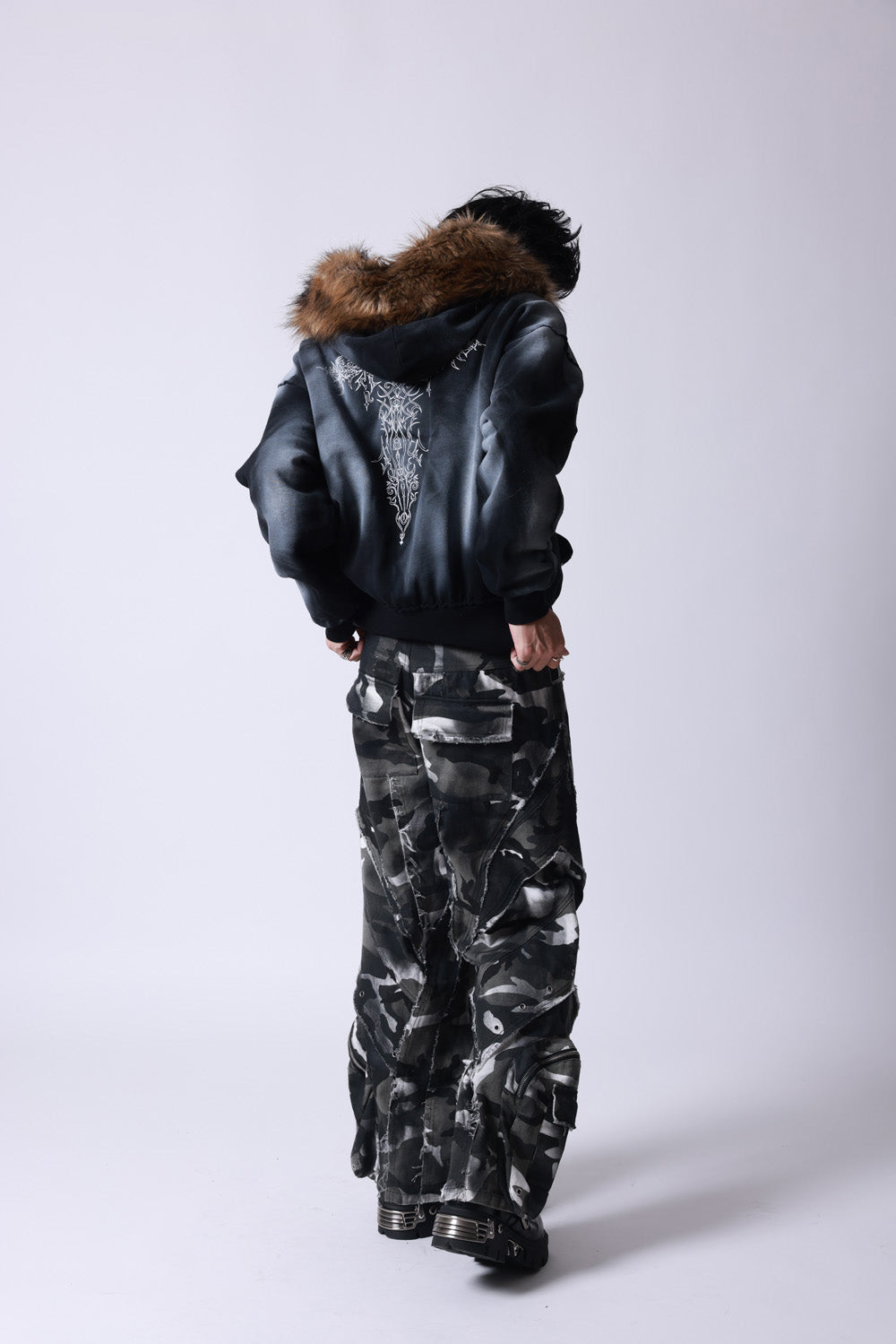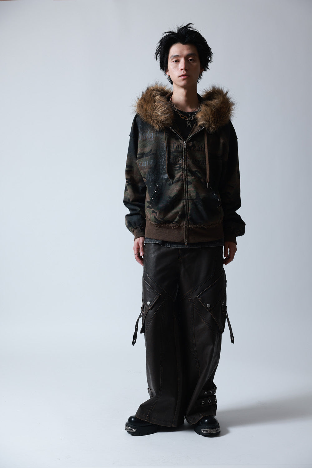 【P.N UNDERGROUND】ファー脱着スプレーZIPパーカー (735425)