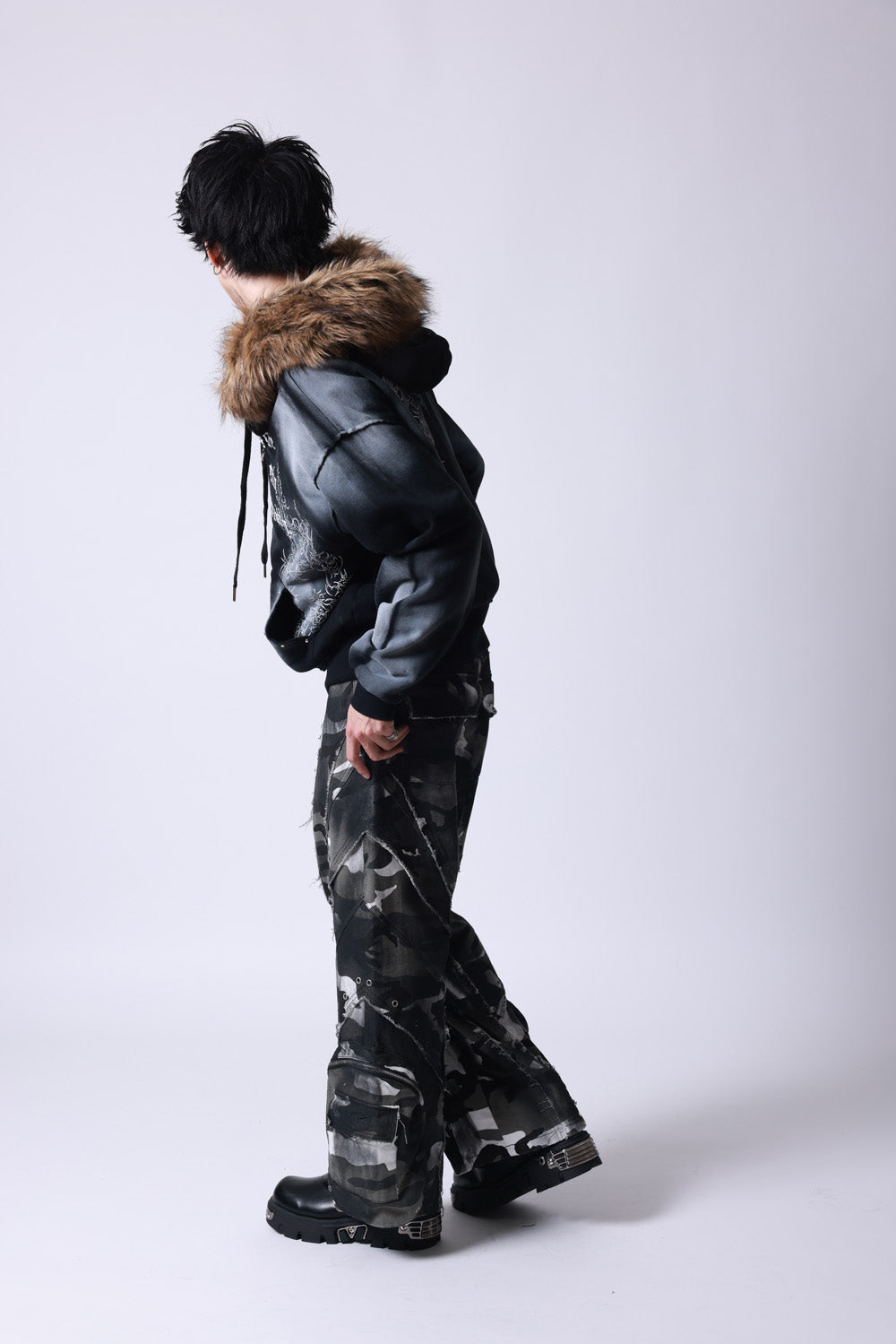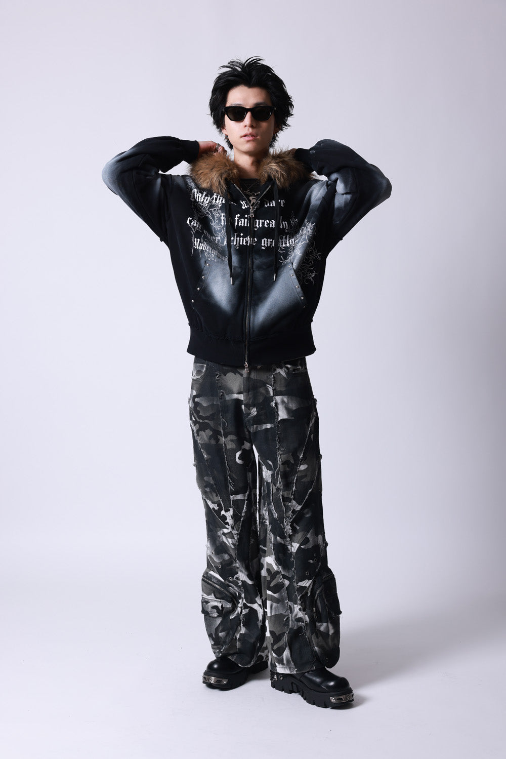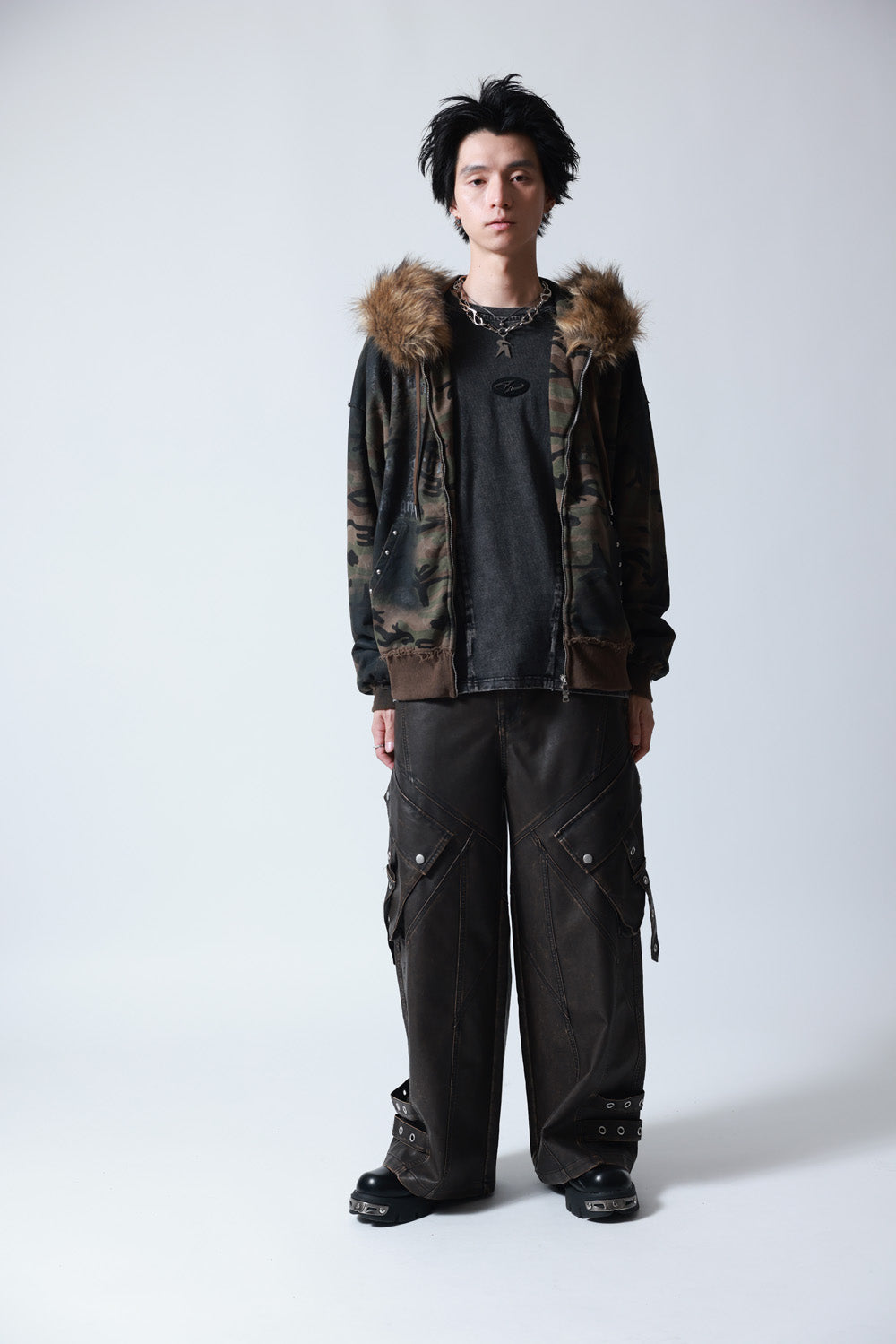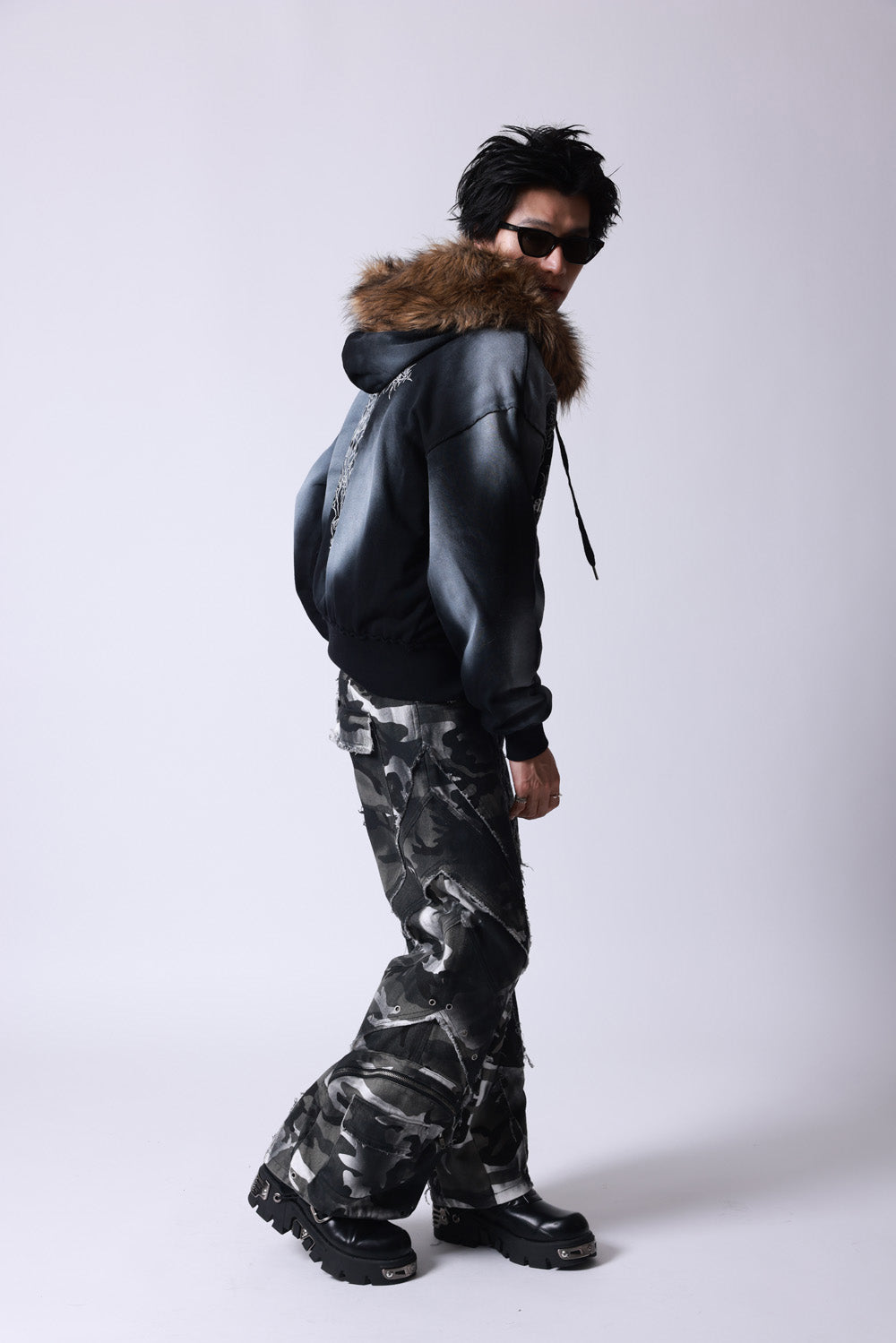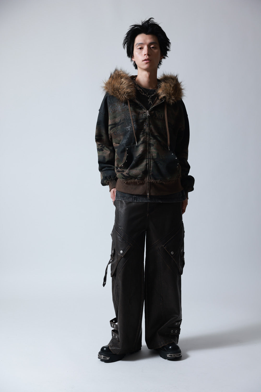 【P.N UNDERGROUND】ファー脱着スプレーZIPパーカー (735425)