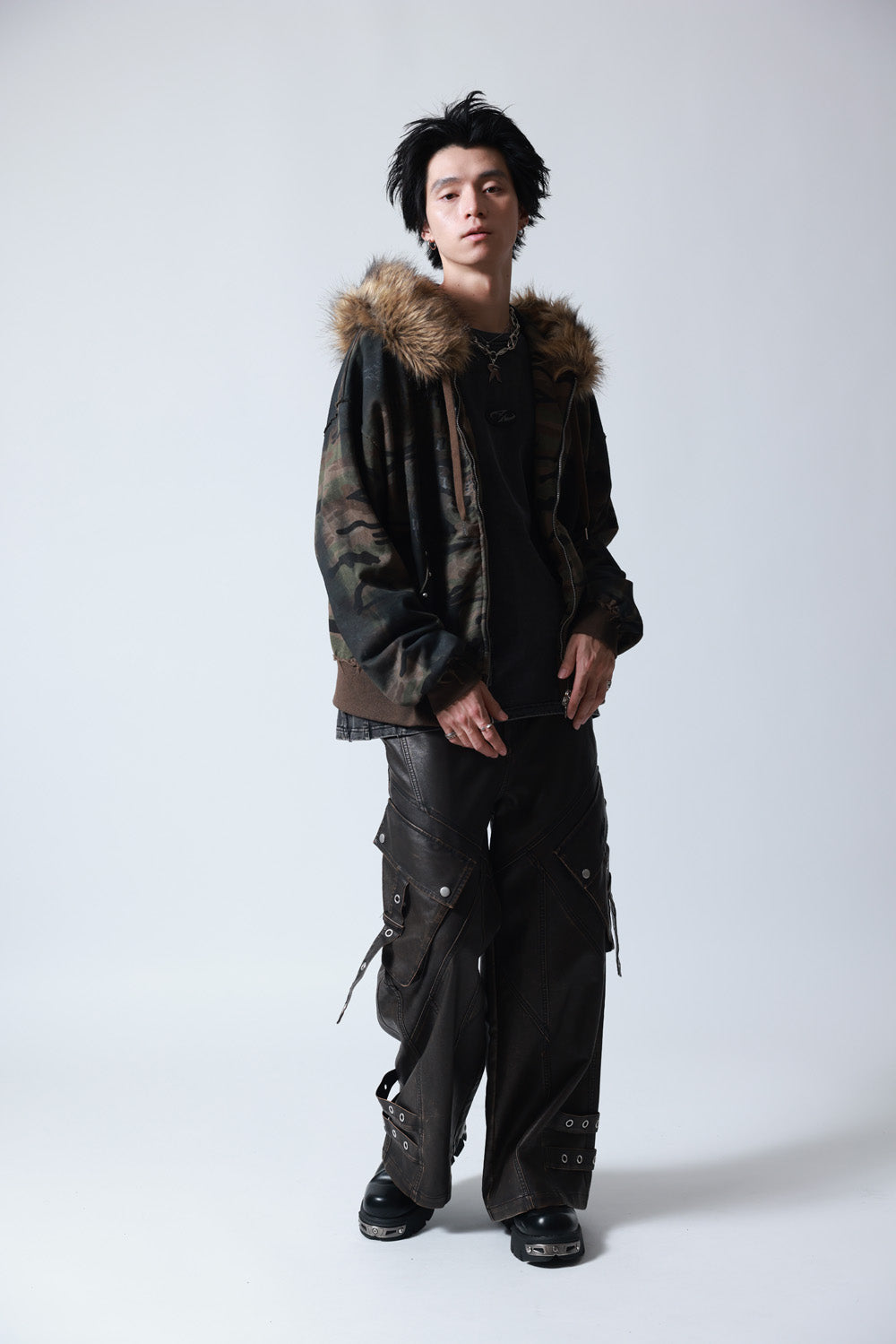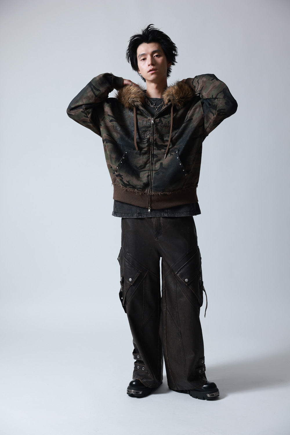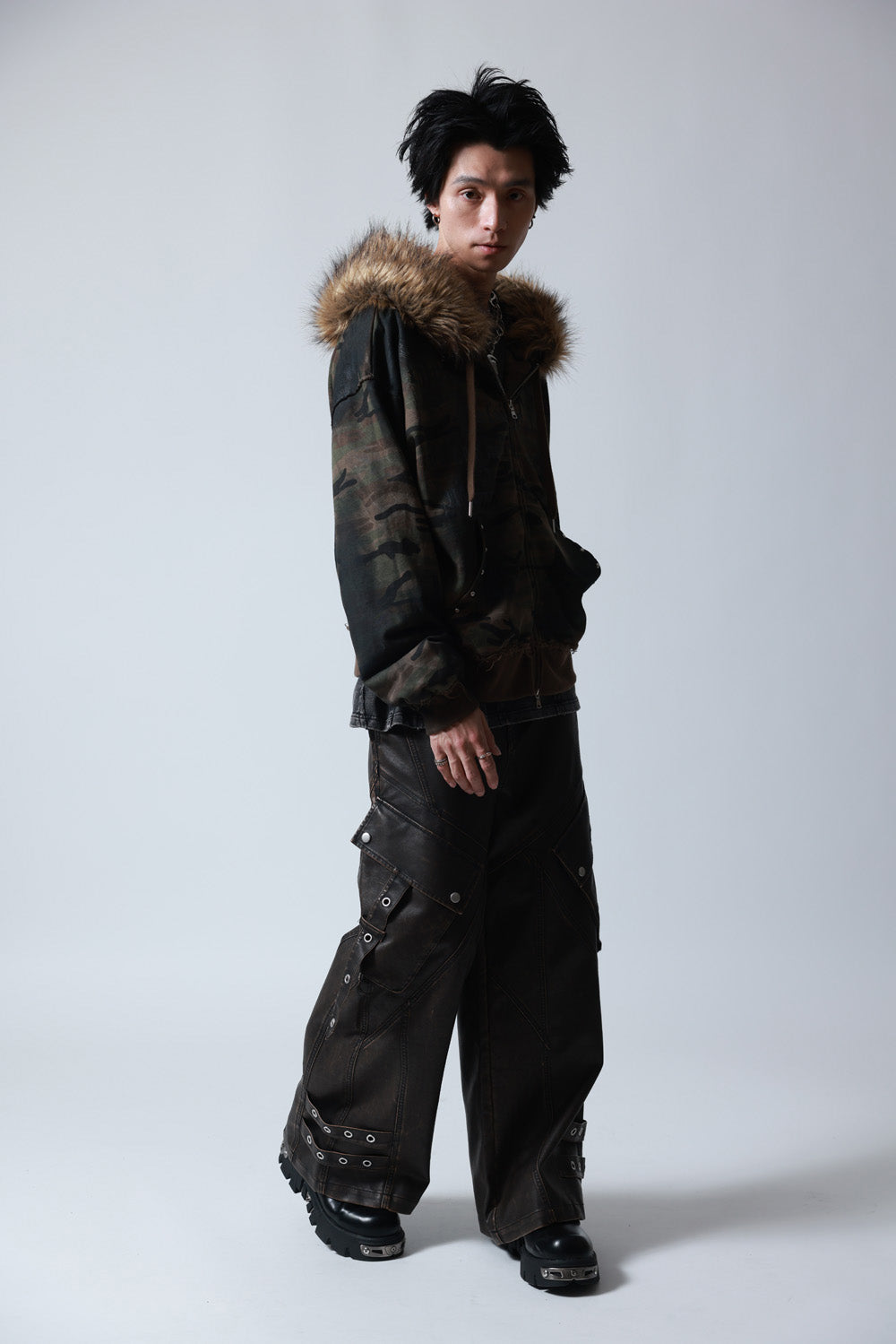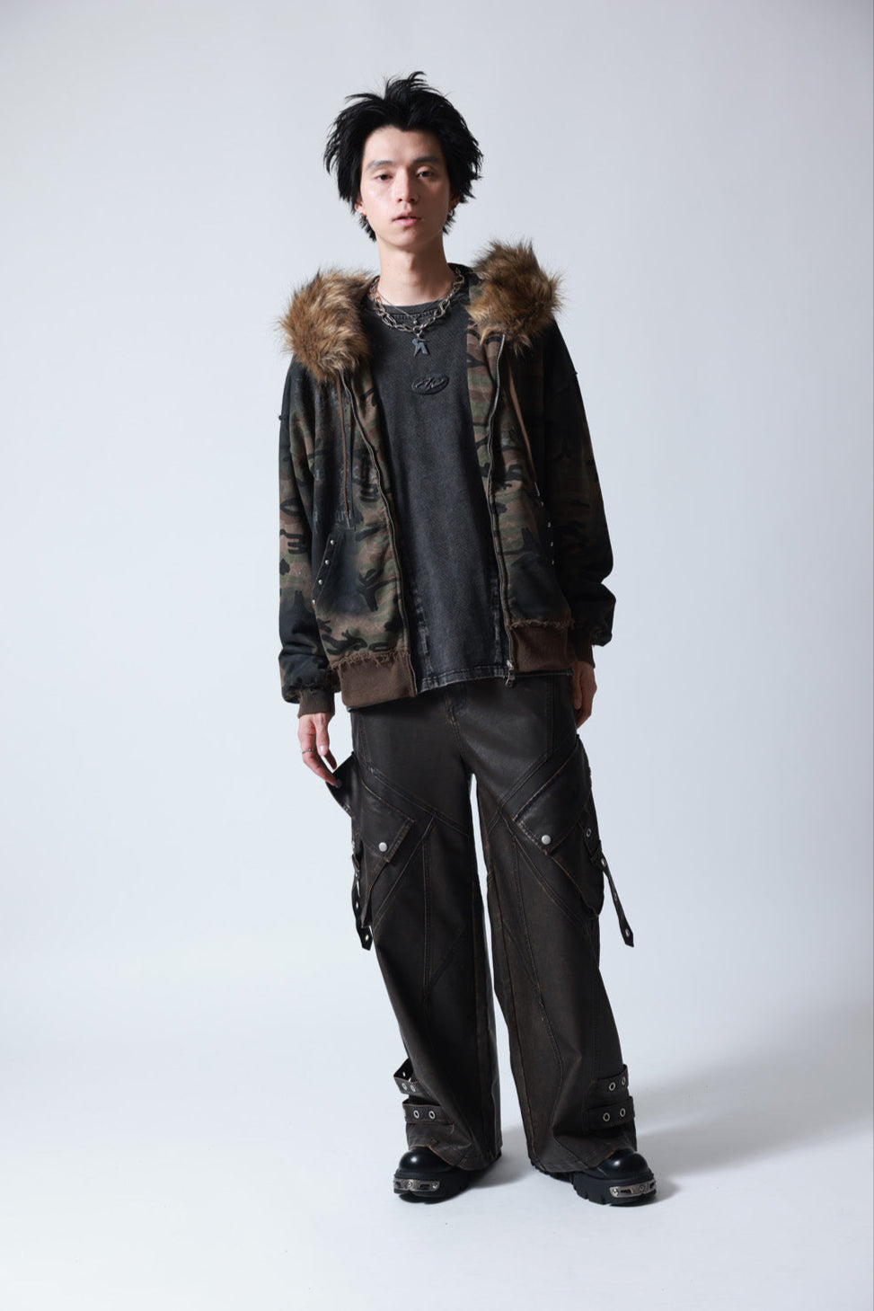 【P.N UNDERGROUND】ファー脱着スプレーZIPパーカー (735425)