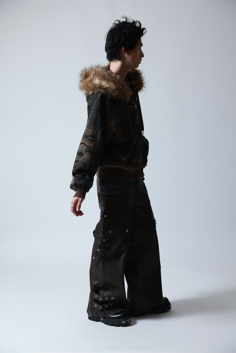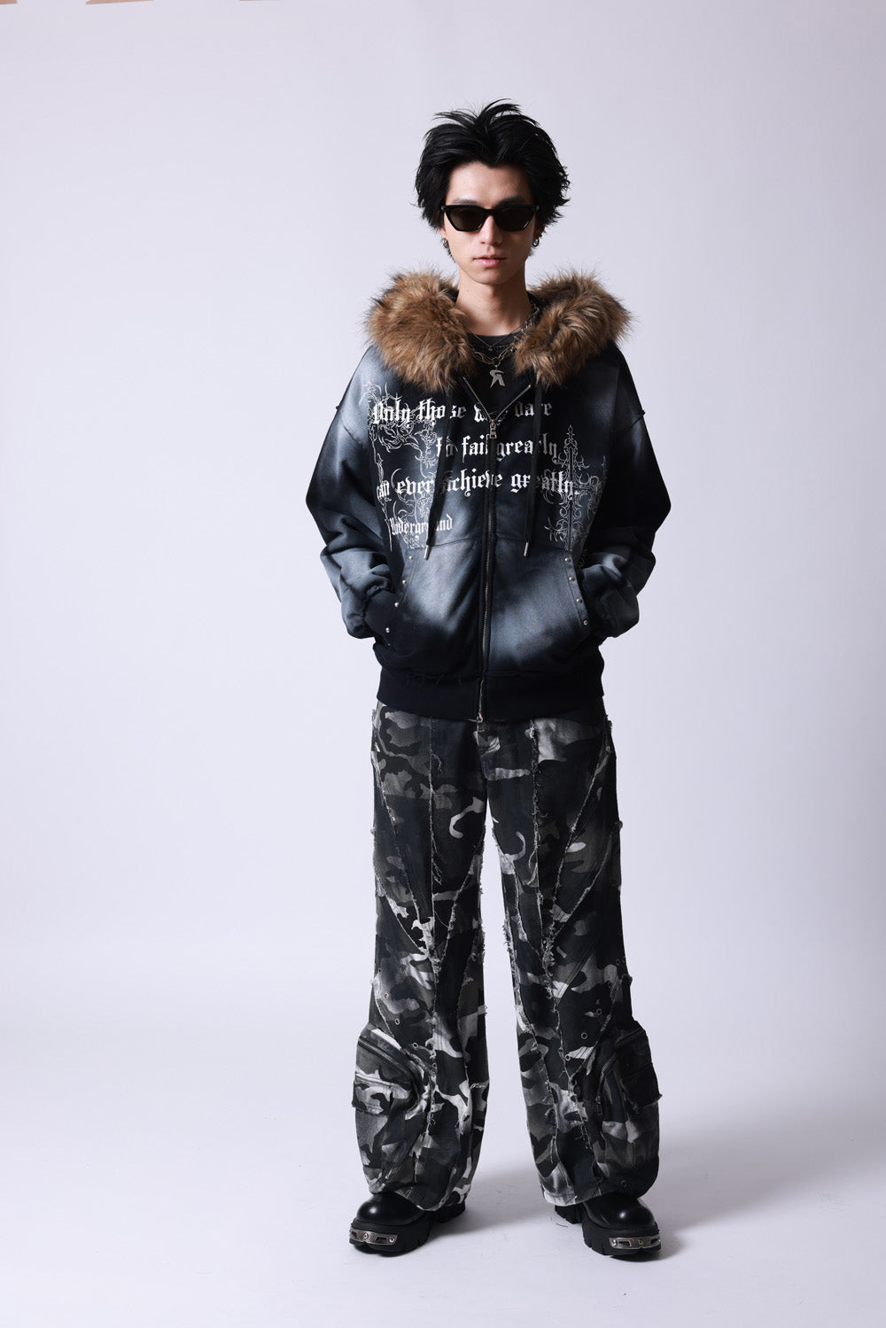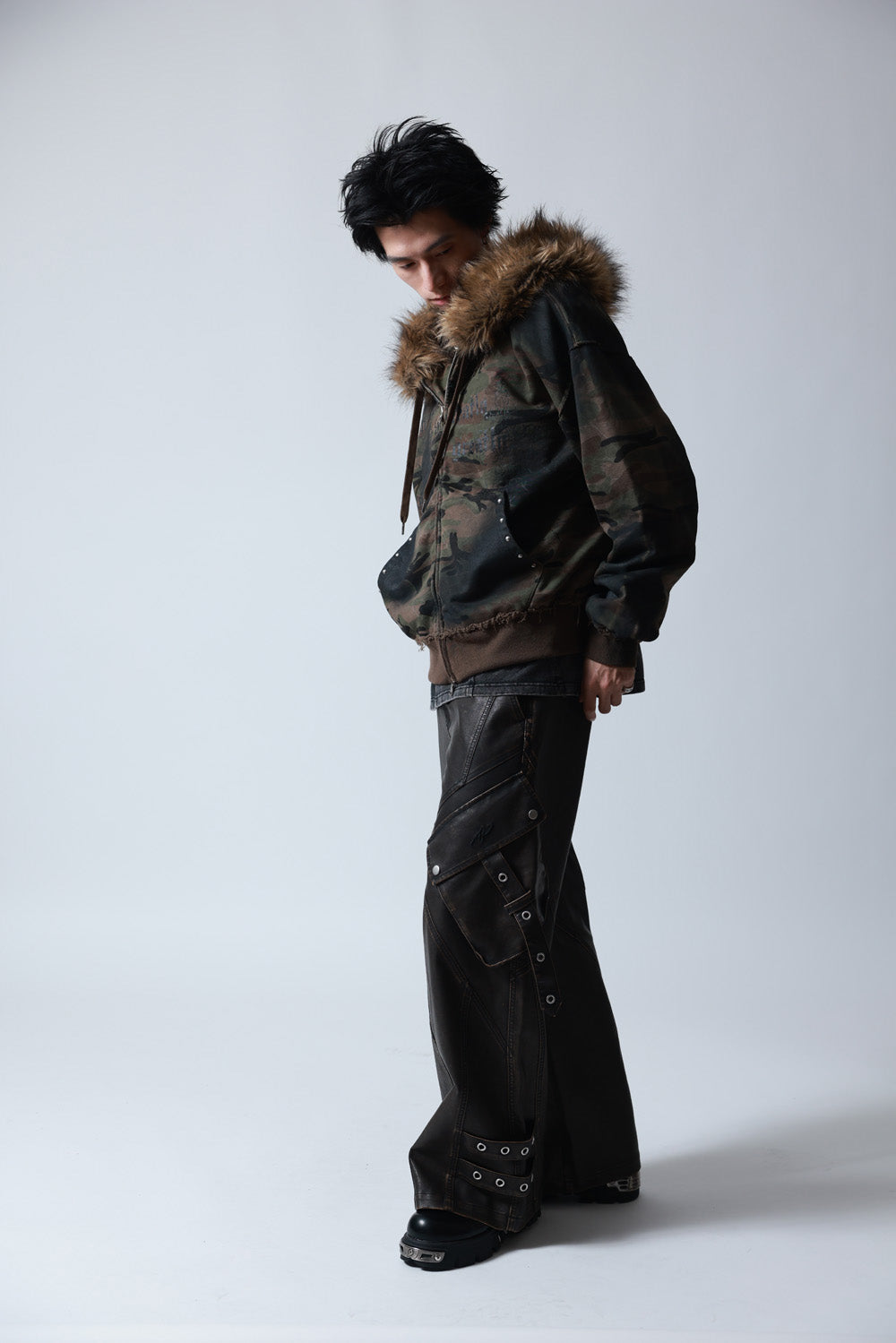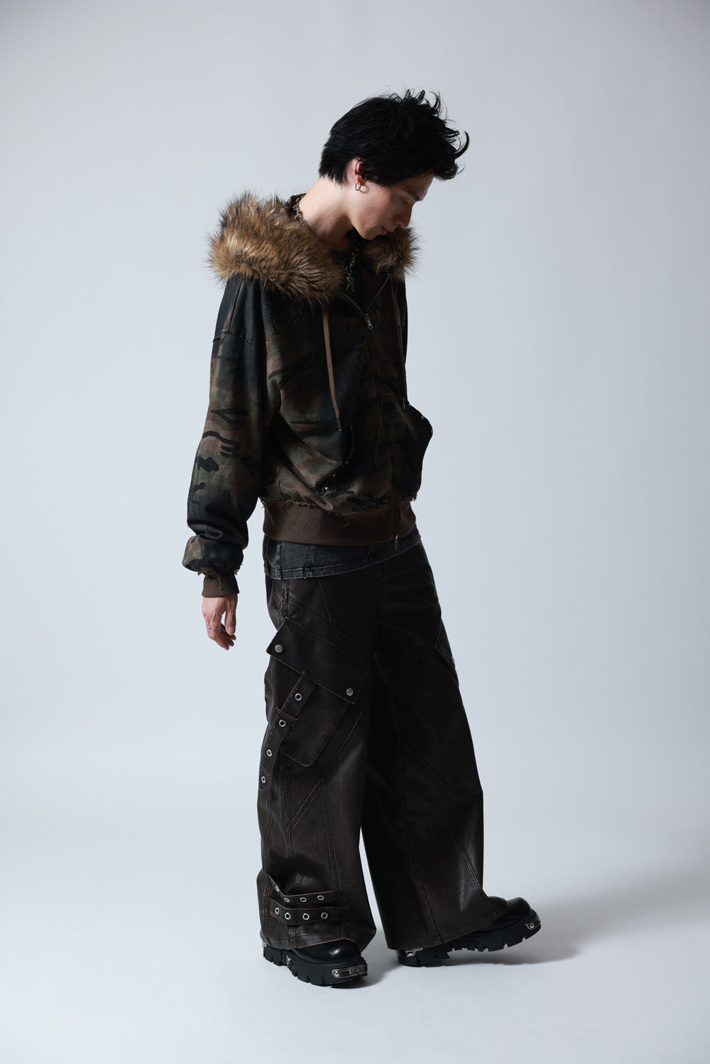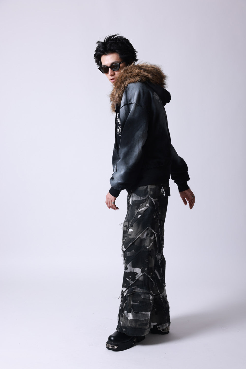 【P.N UNDERGROUND】ファー脱着スプレーZIPパーカー (735425)