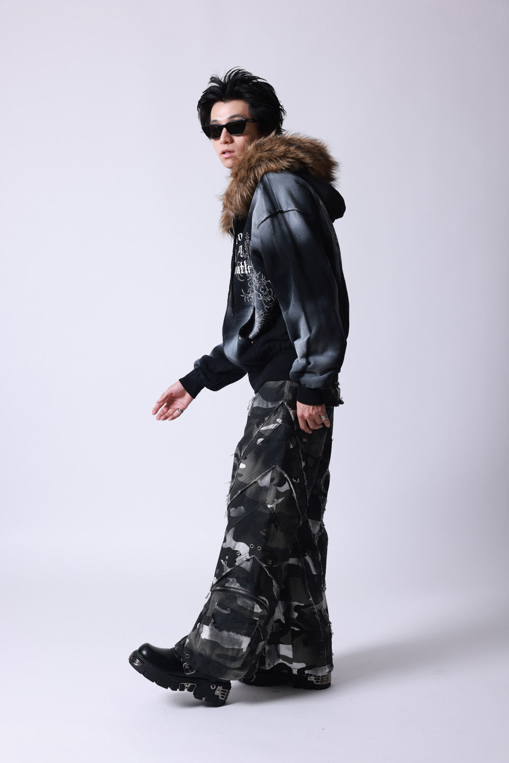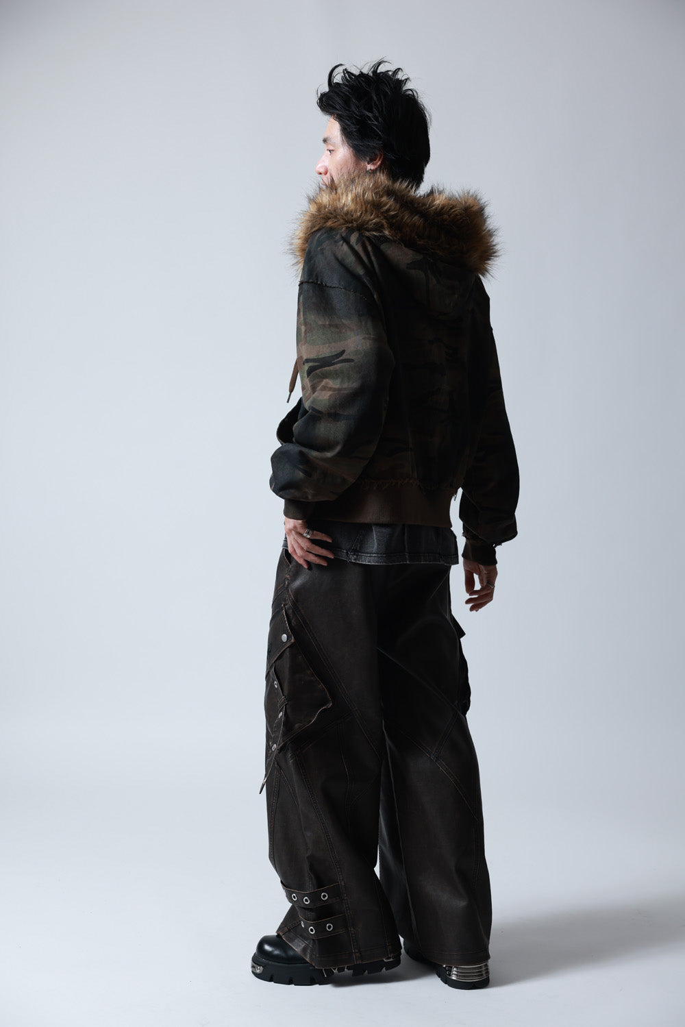 随所にカットオフ仕様を採用し、スプレー加工を施してグランジテイストを演出。