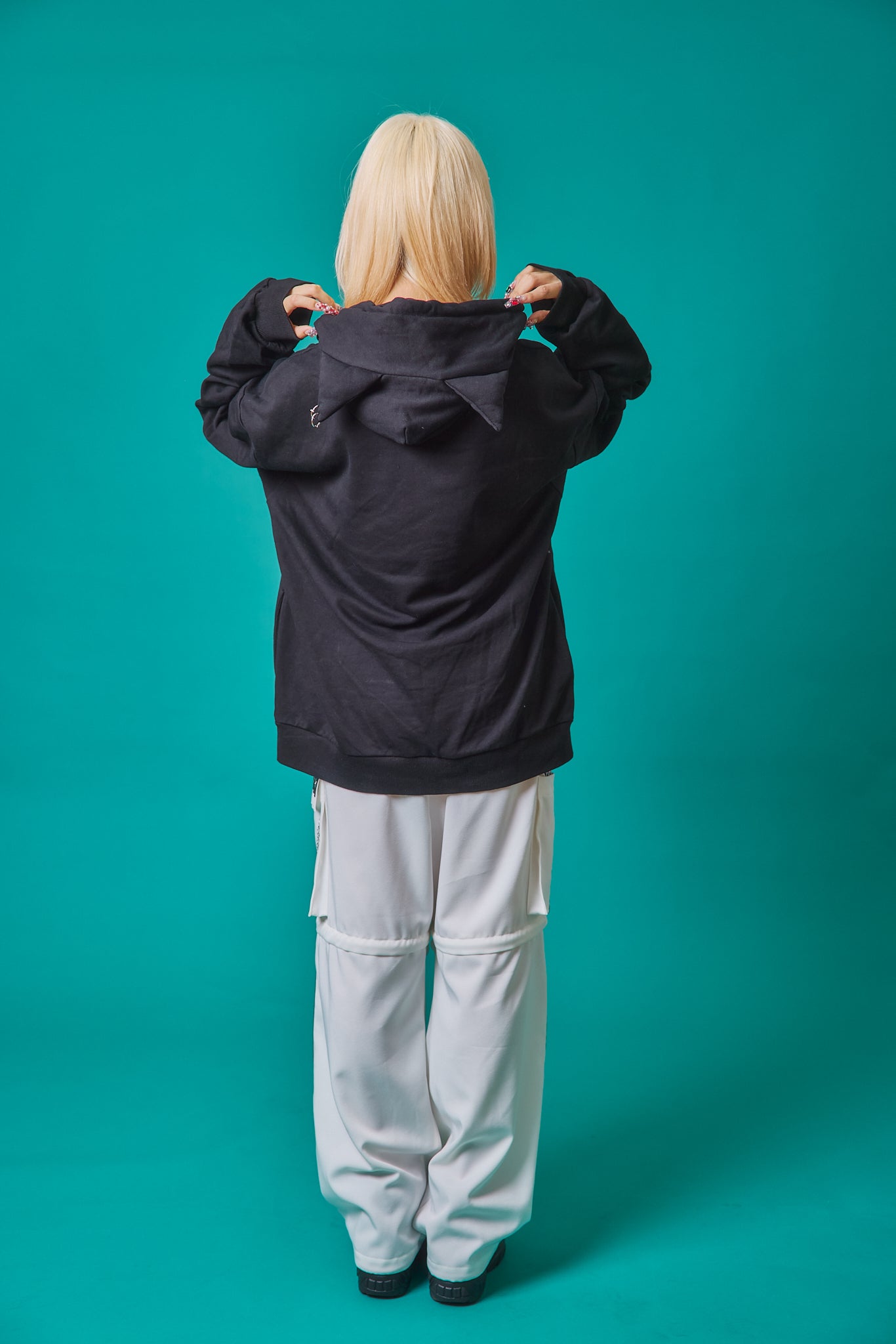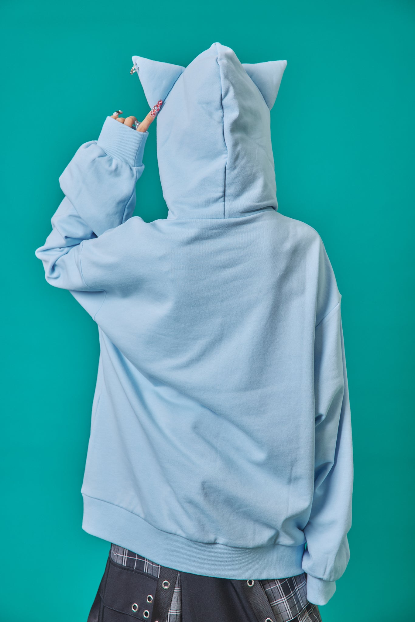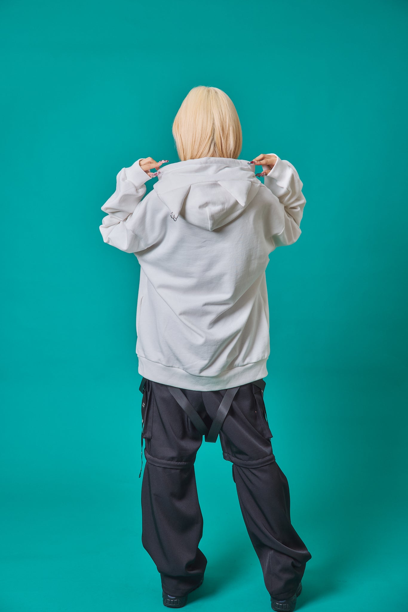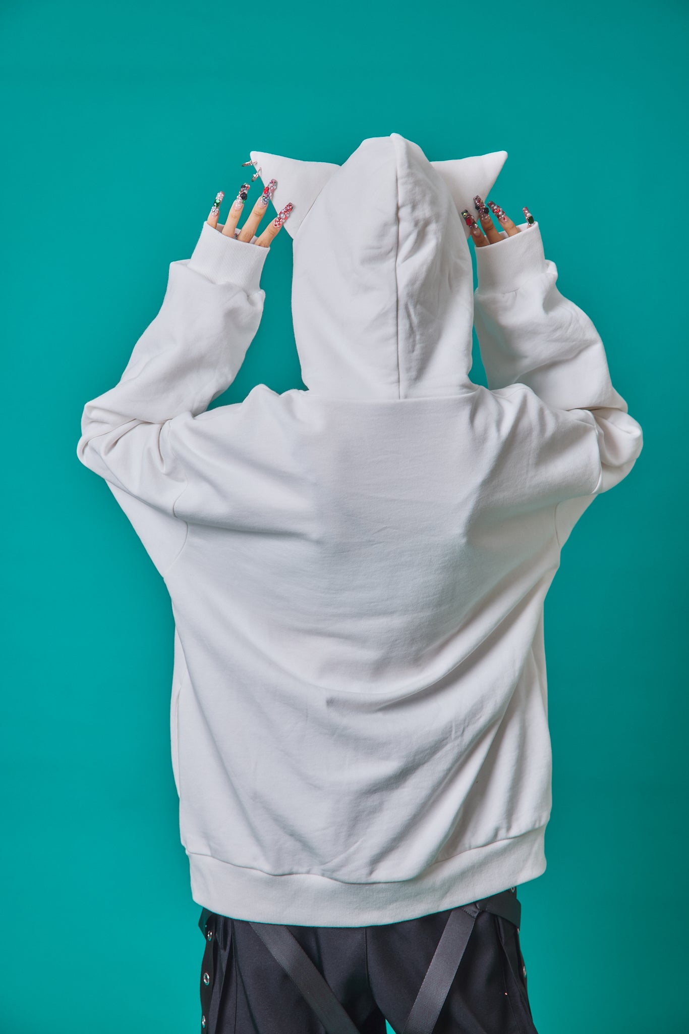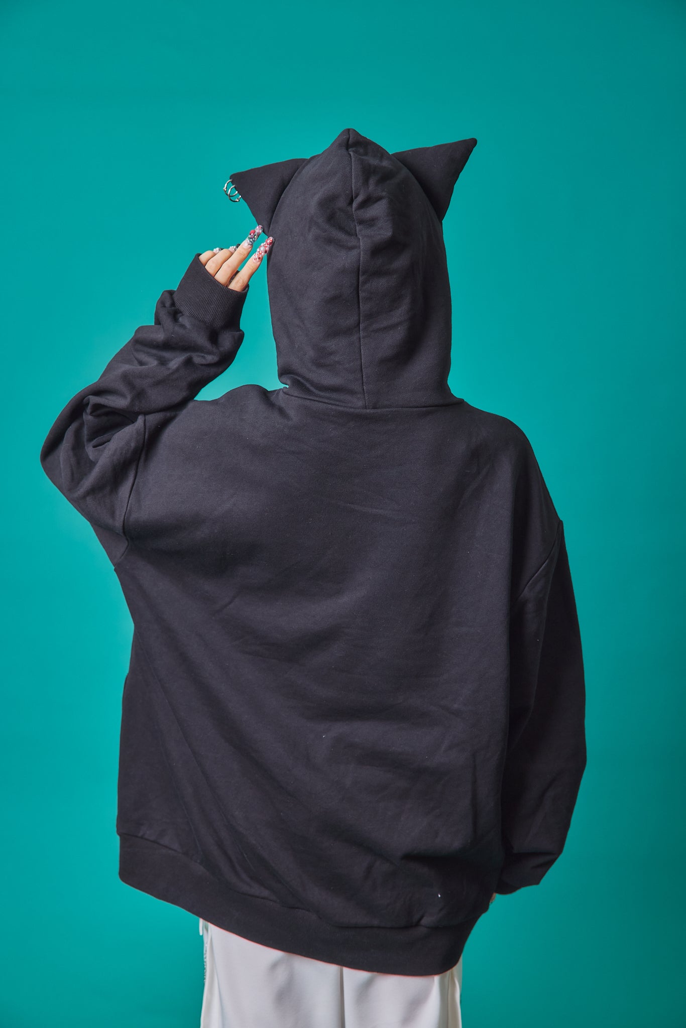 フードには「DEVIL CAT」の猫耳付きで、被った時にもポイントになるデザインです。