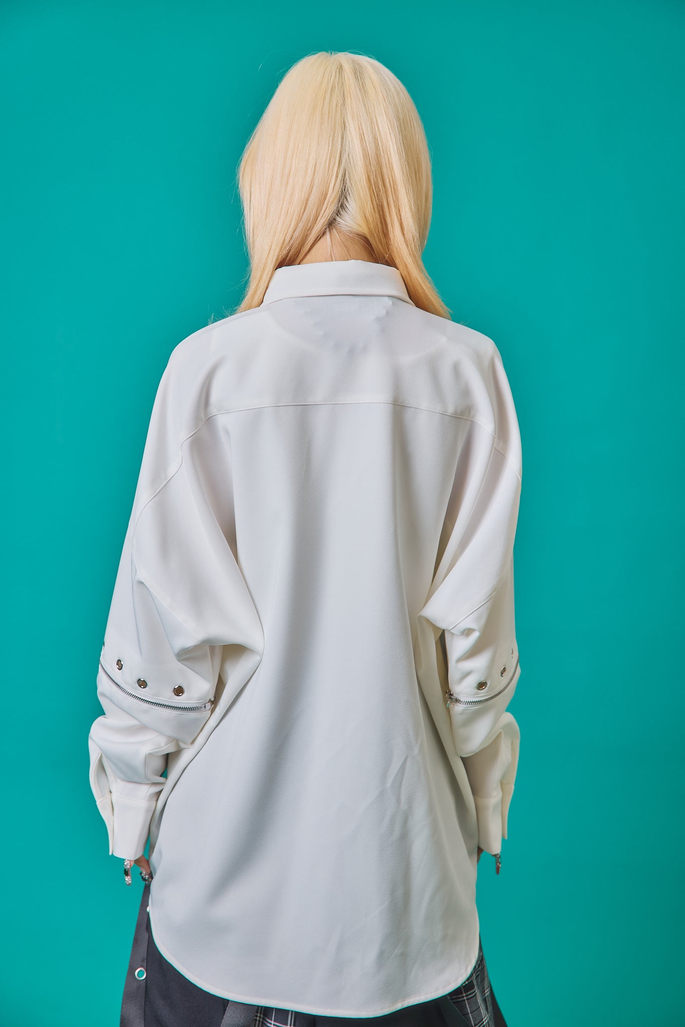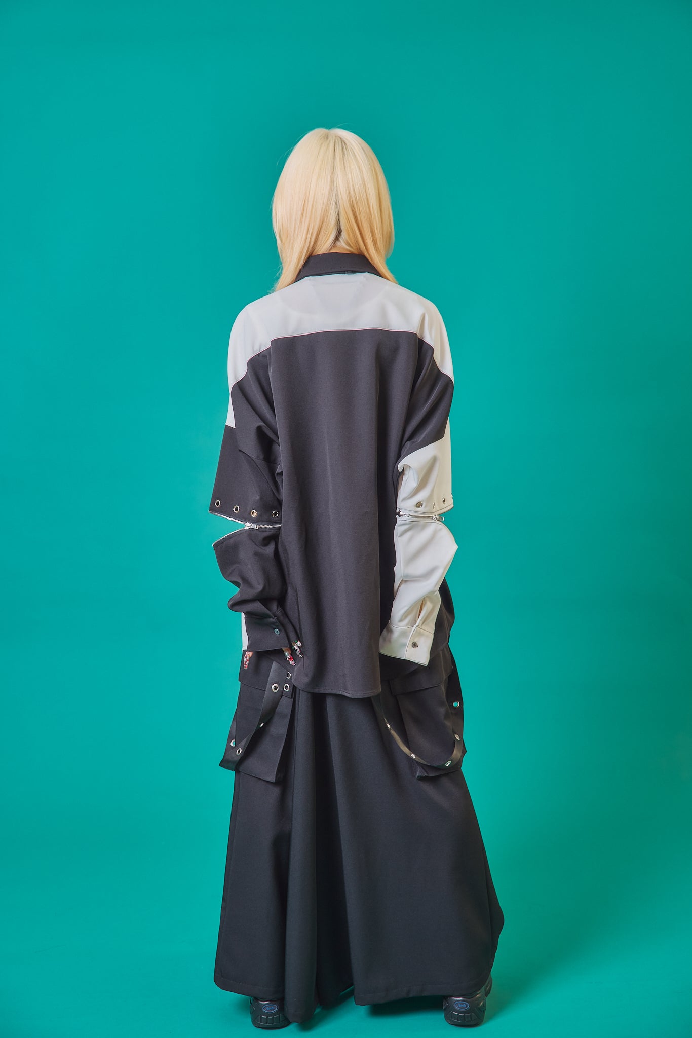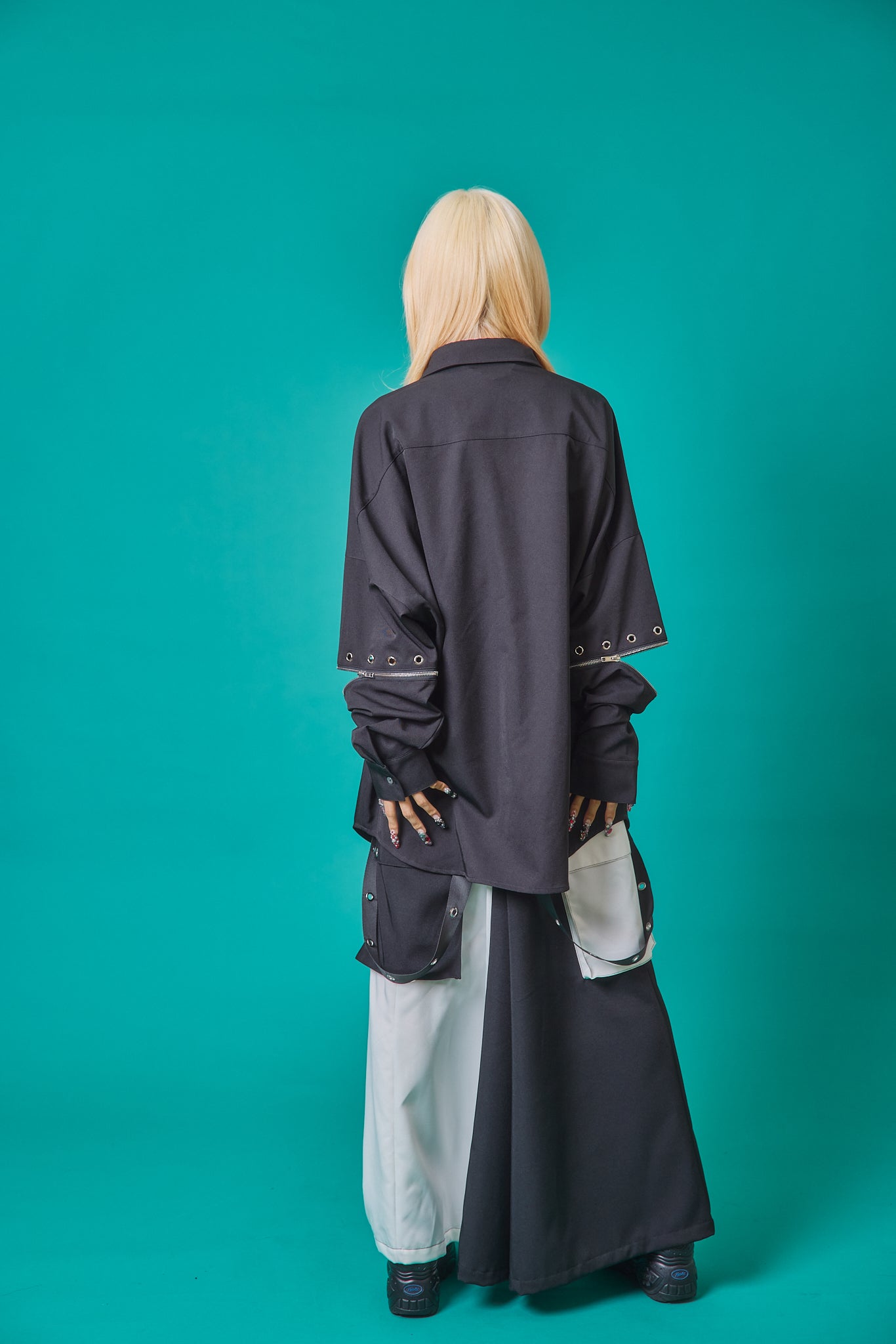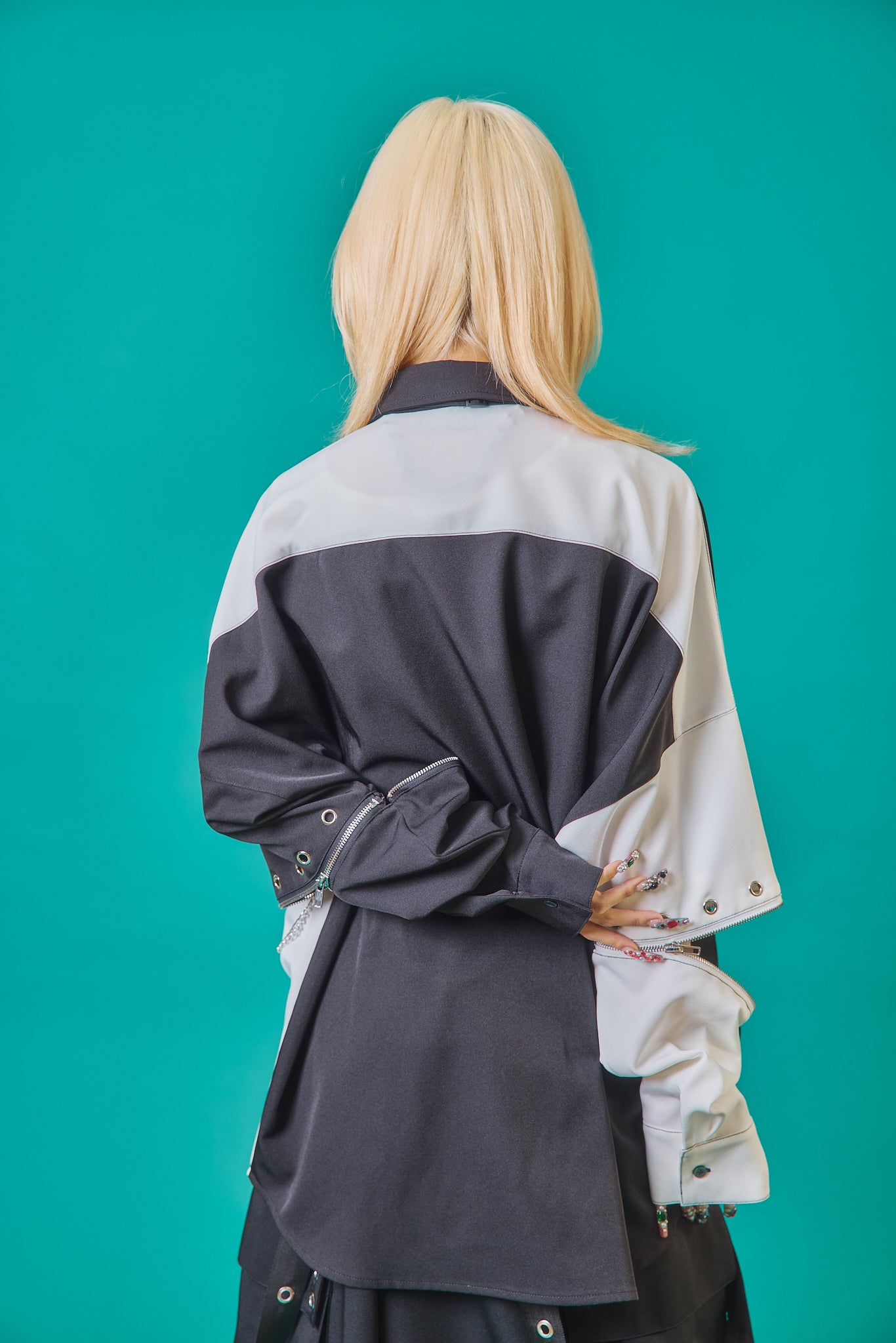 袖や襟に配置されたハトメに付属のチェーンを装着可能です。チェーンの取外しも可能で、外しても良し、ハトメの場所を変えて装着するも良しで色々なバリエーションを楽しめるディテールが秀逸なアイテムです。