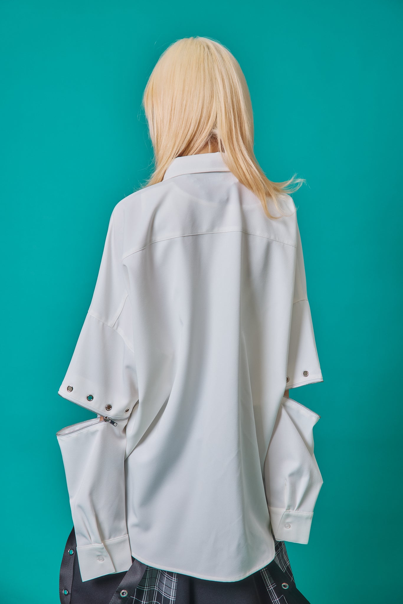 ワンタッチで簡単に着脱可能なデザインネクタイがポイントのデザインシャツ。