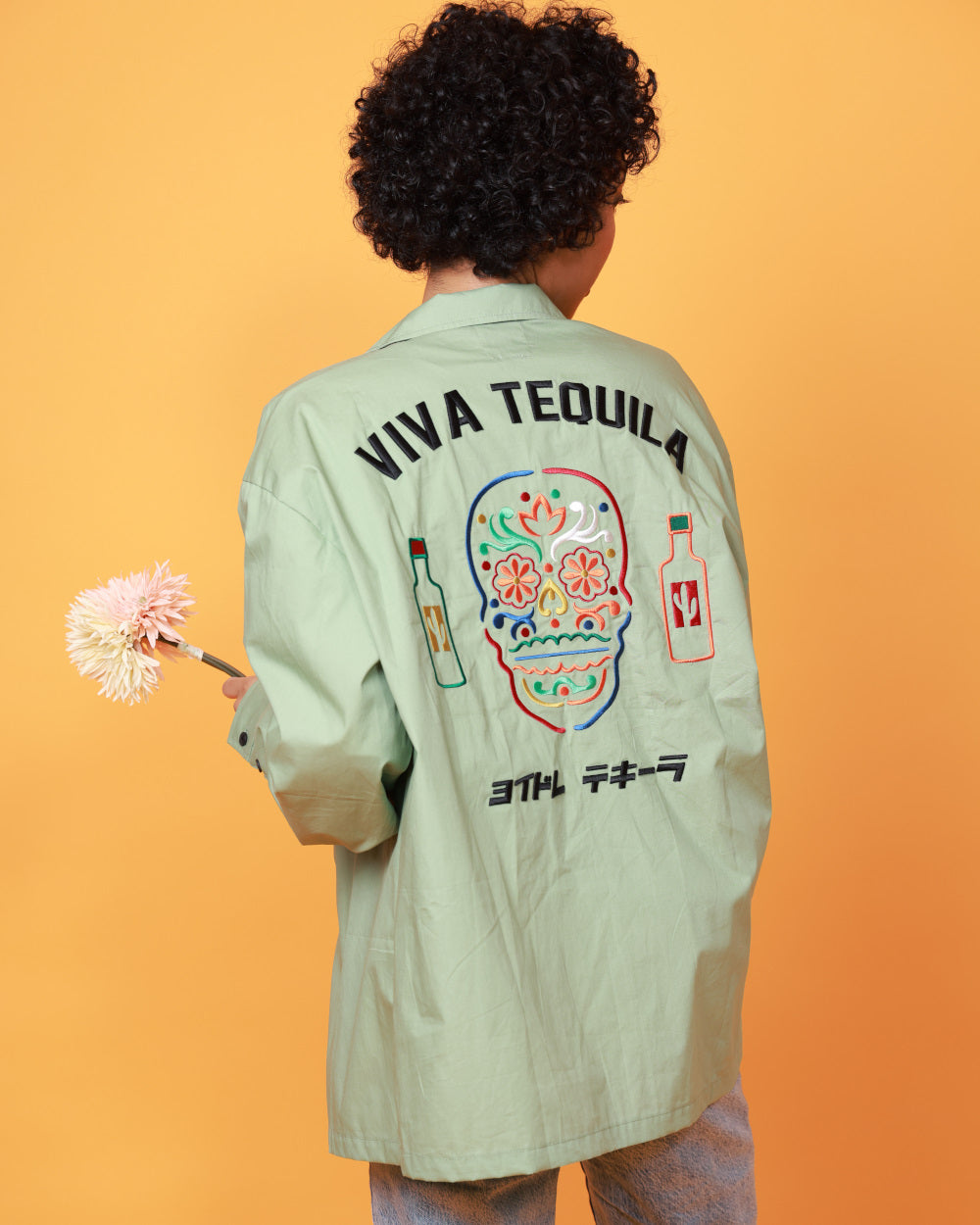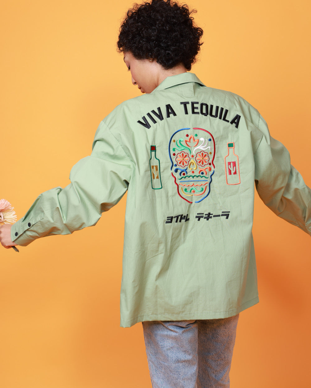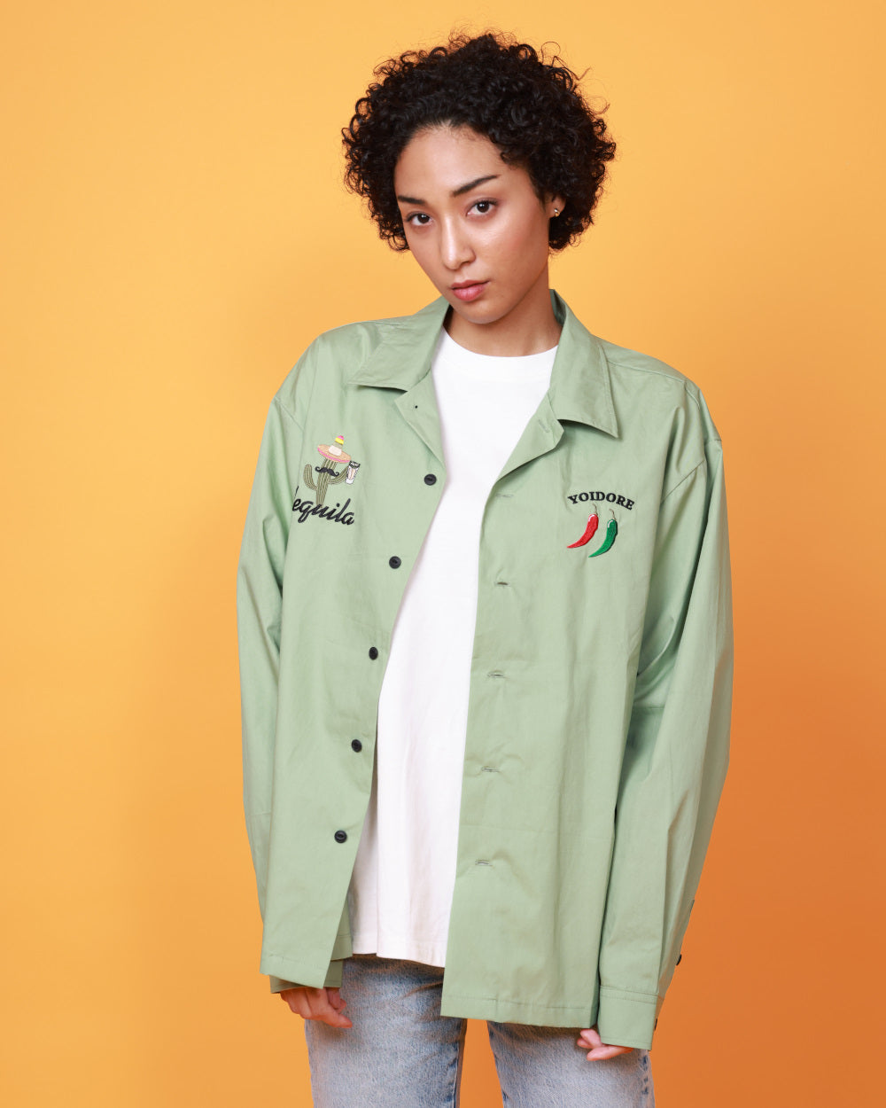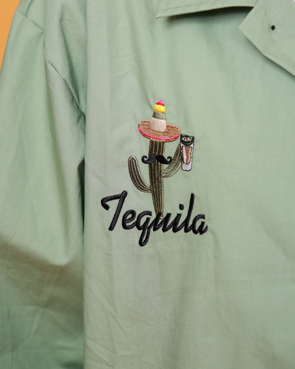 バックのカラベラと酒瓶、フロントのサボテンとハラペーニョはもちろん刺繍でデザイン。