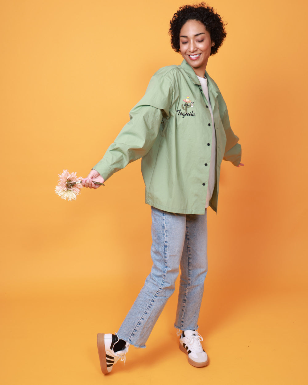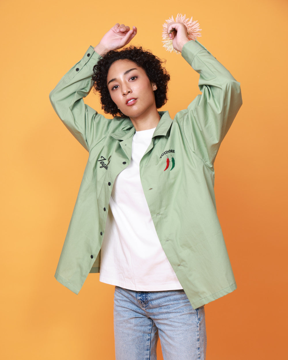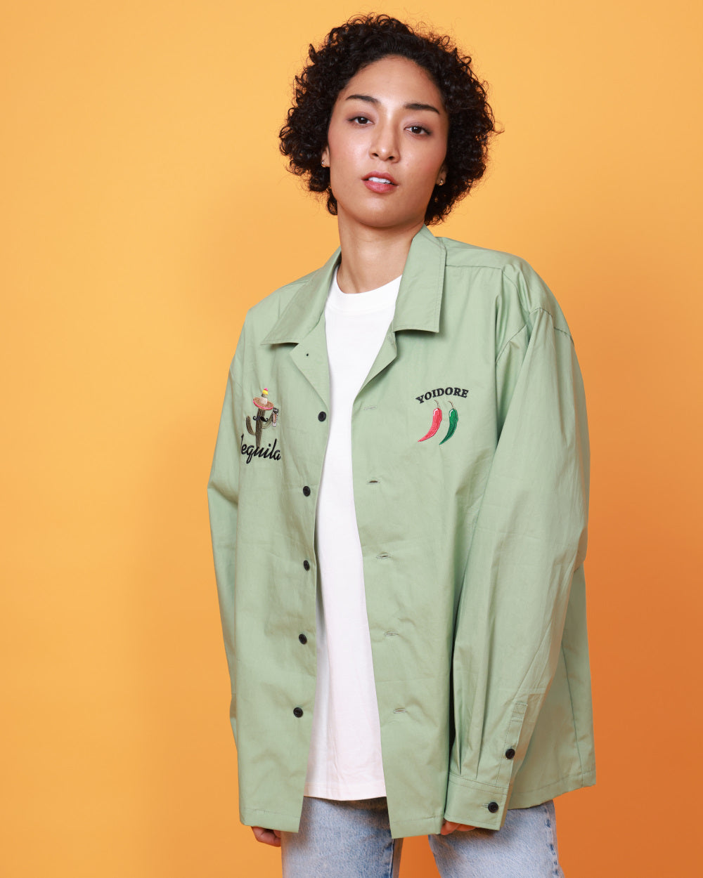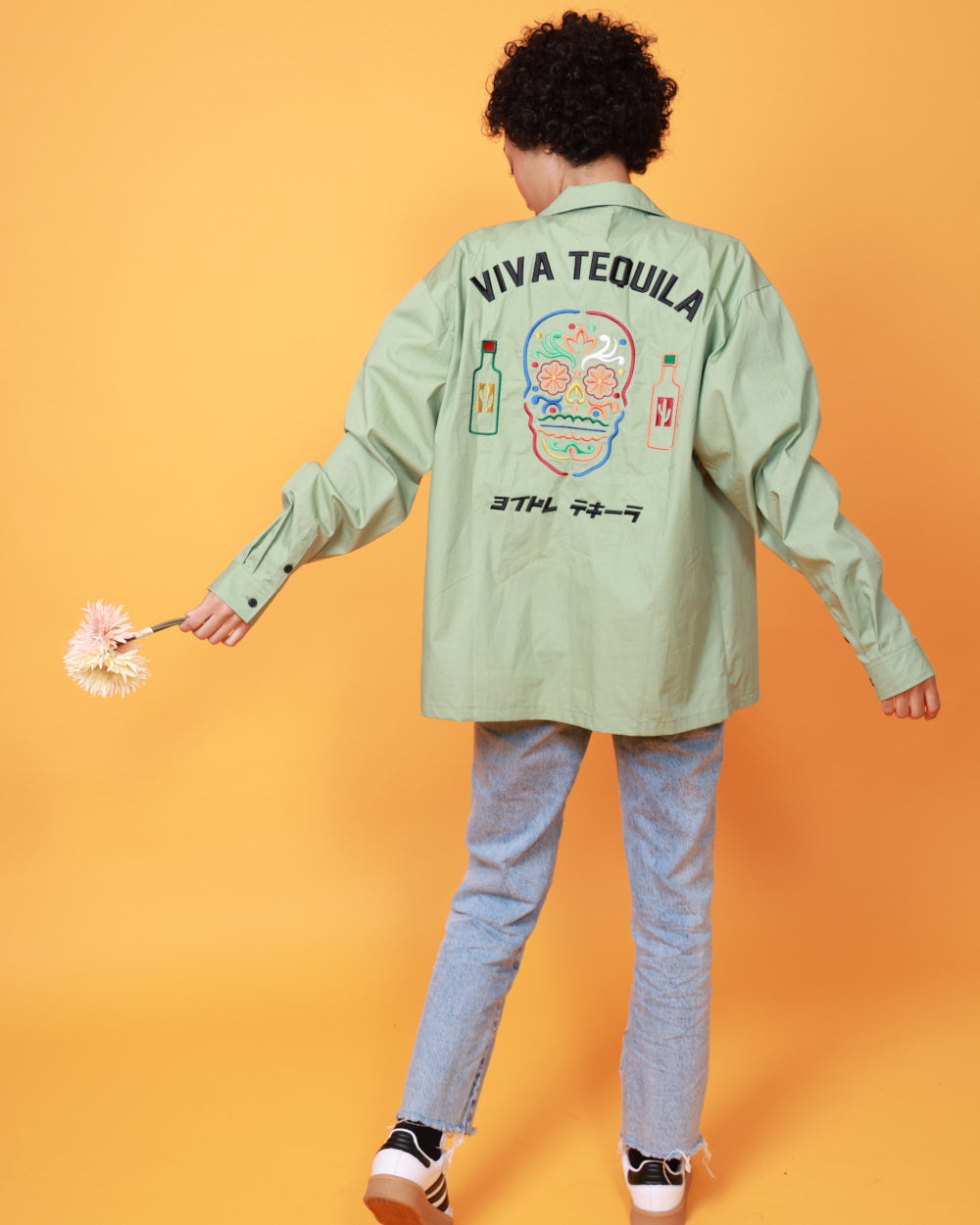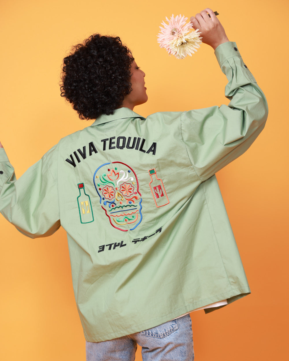 バックのカラベラと酒瓶、フロントのサボテンとハラペーニョはもちろん刺繍でデザイン。