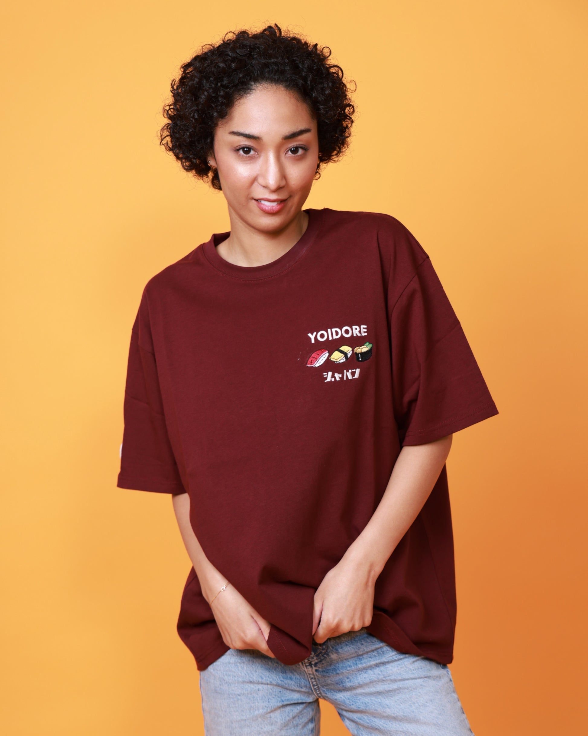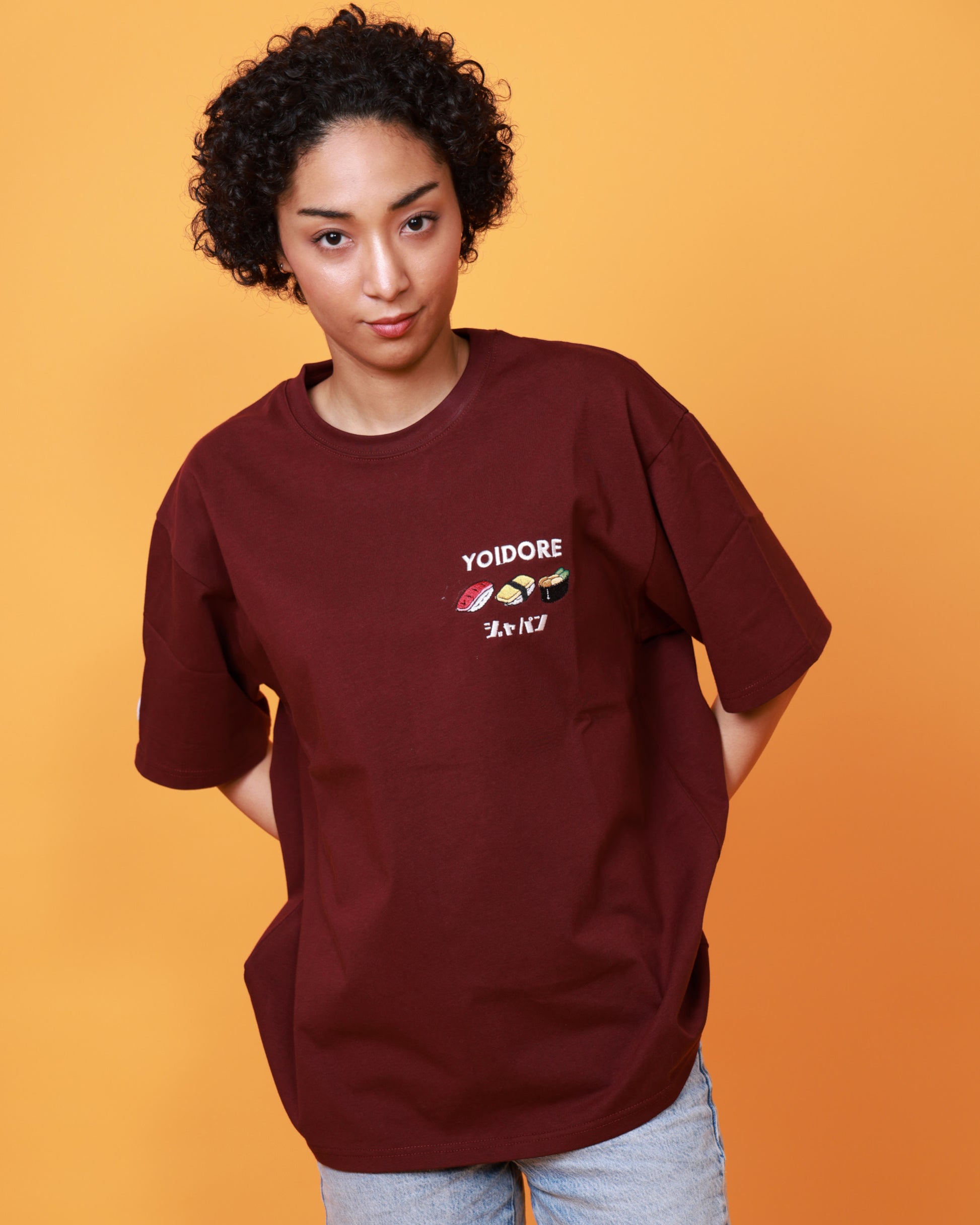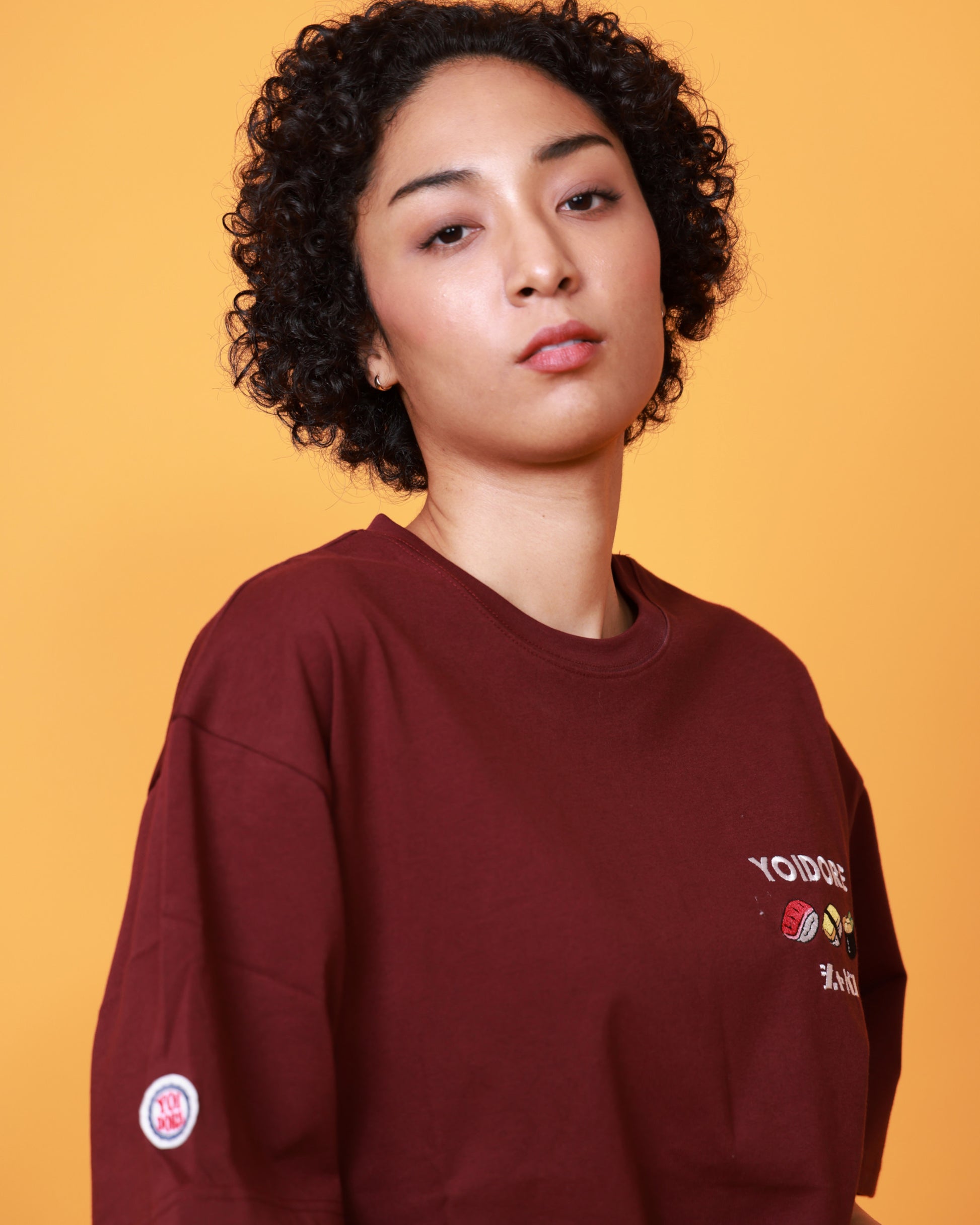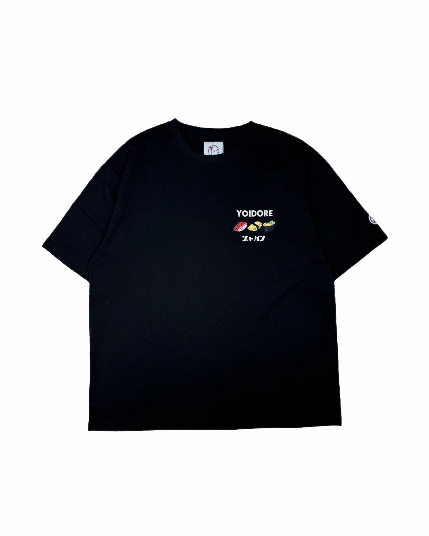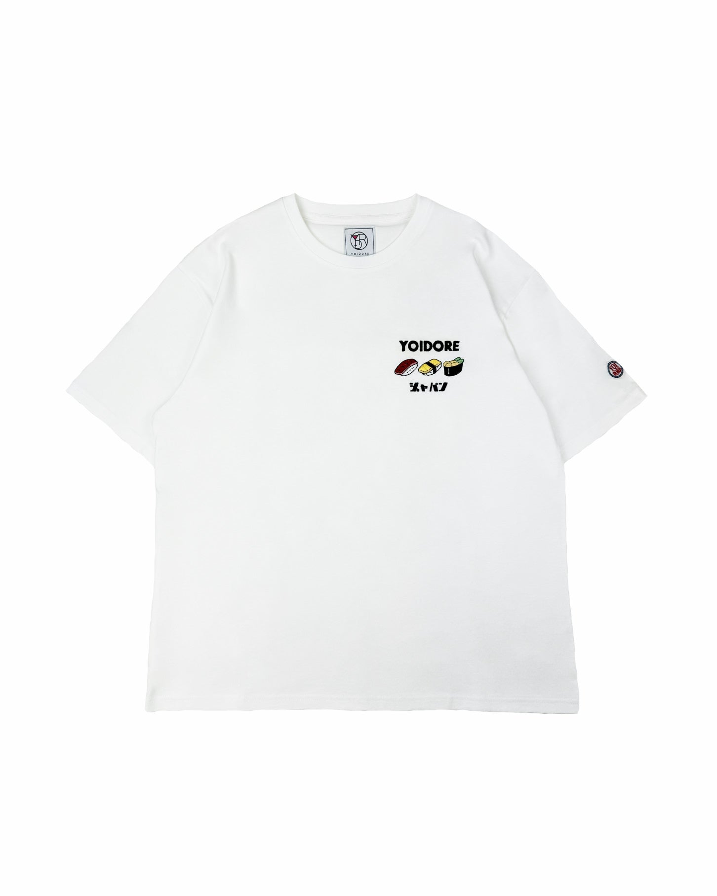 フロントは日本食でも人気ナンバー1、YOIDOREでも人気モチーフの寿司を刺繍でシンプルにあしらったスッキリしたデザインで、小粋な雰囲気を醸し出す至高のアイテムに仕上がりました。
