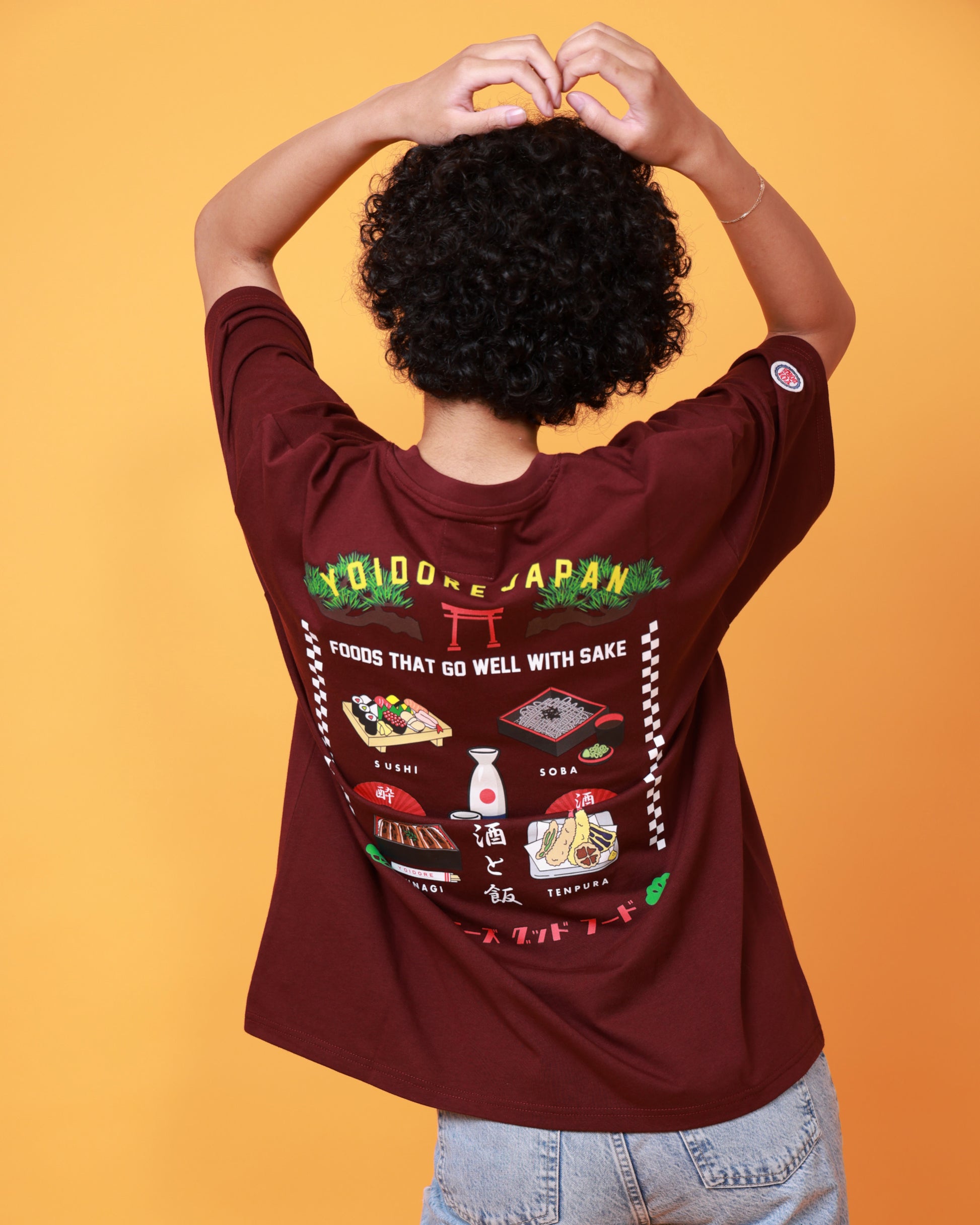 日本を代表する食の数々が一堂に集結したデザインがインパクト抜群のTEEシャツです。