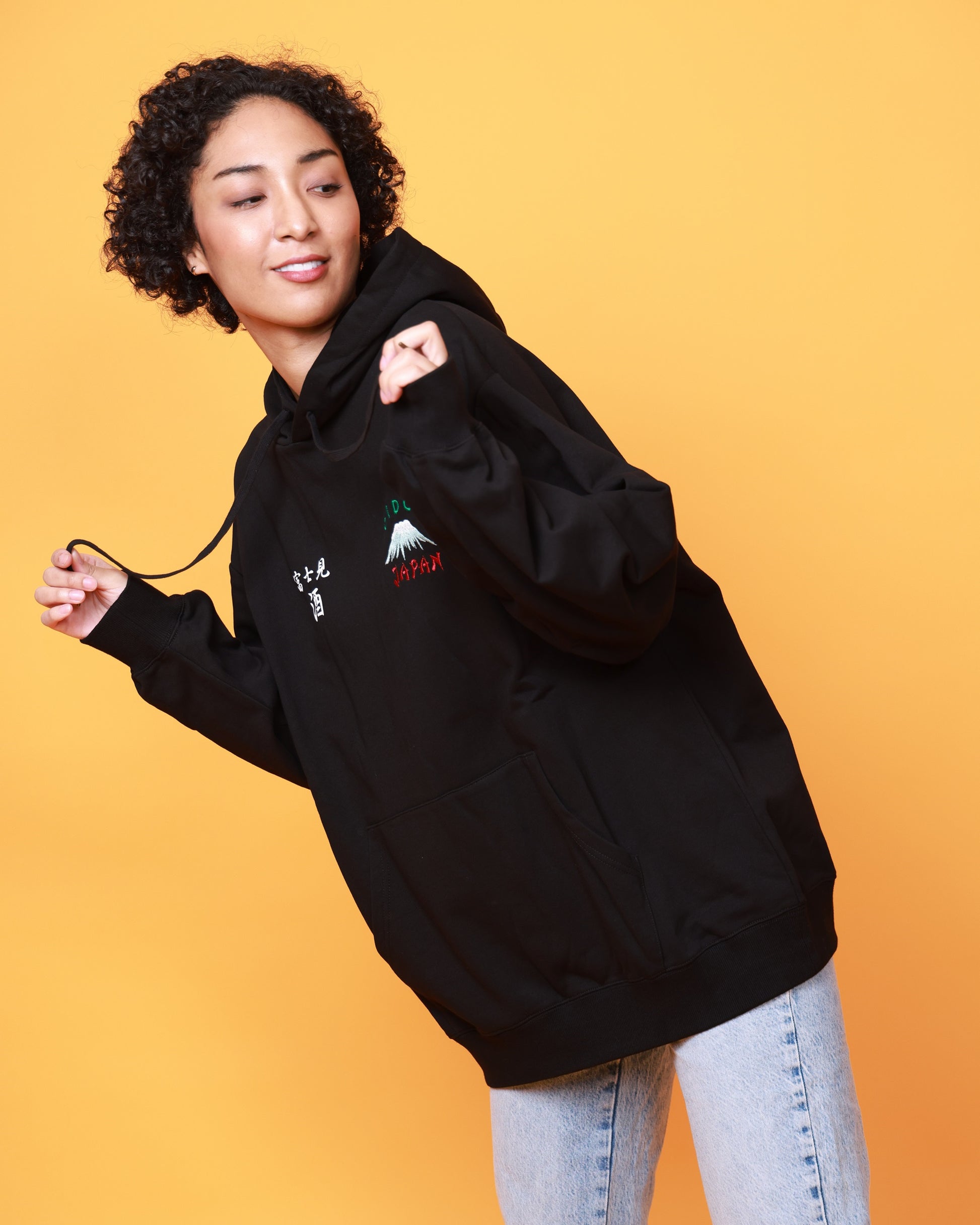 フロントの富士山は刺繍で立体感を出し、冨士見酒の情緒を演出しています。
