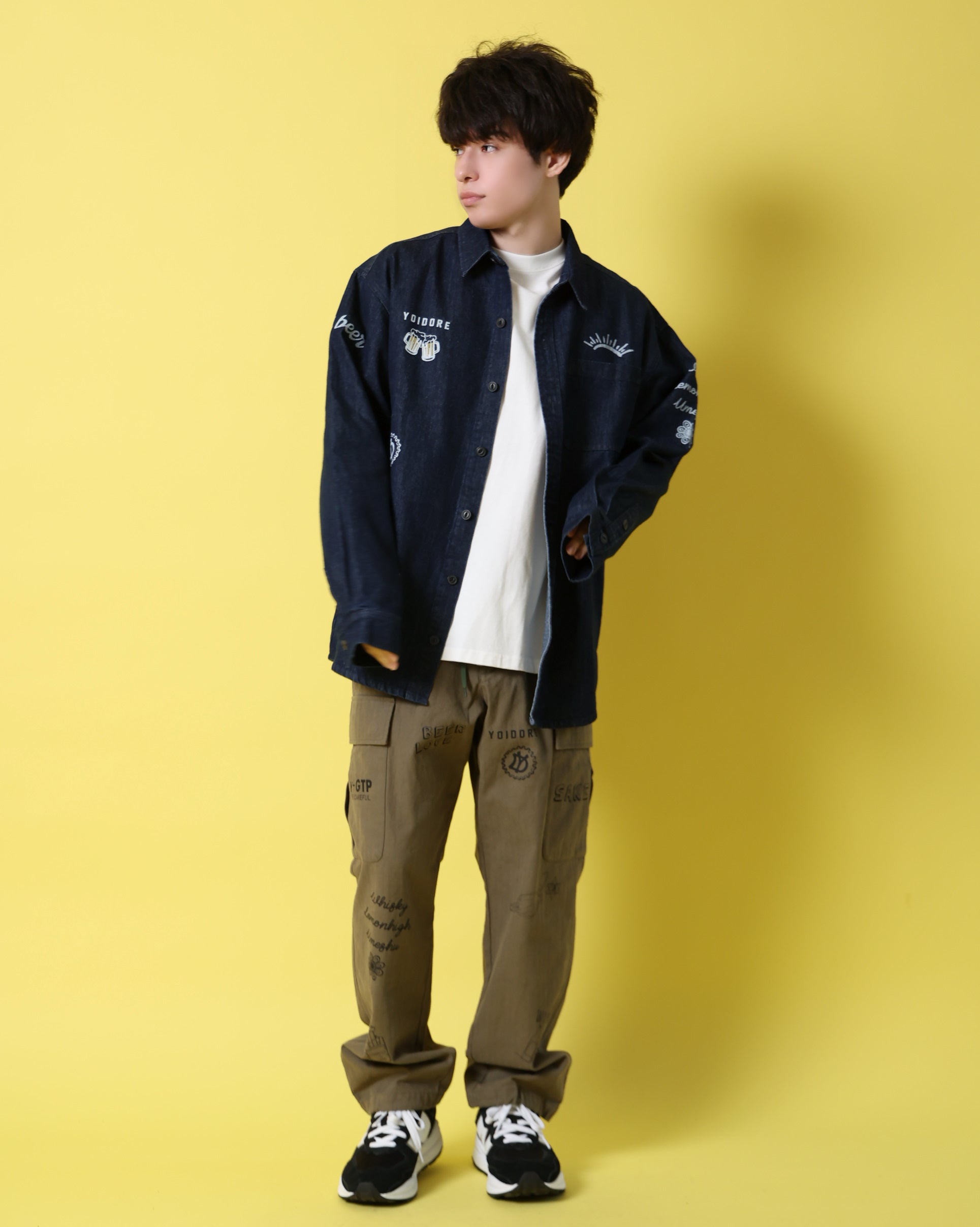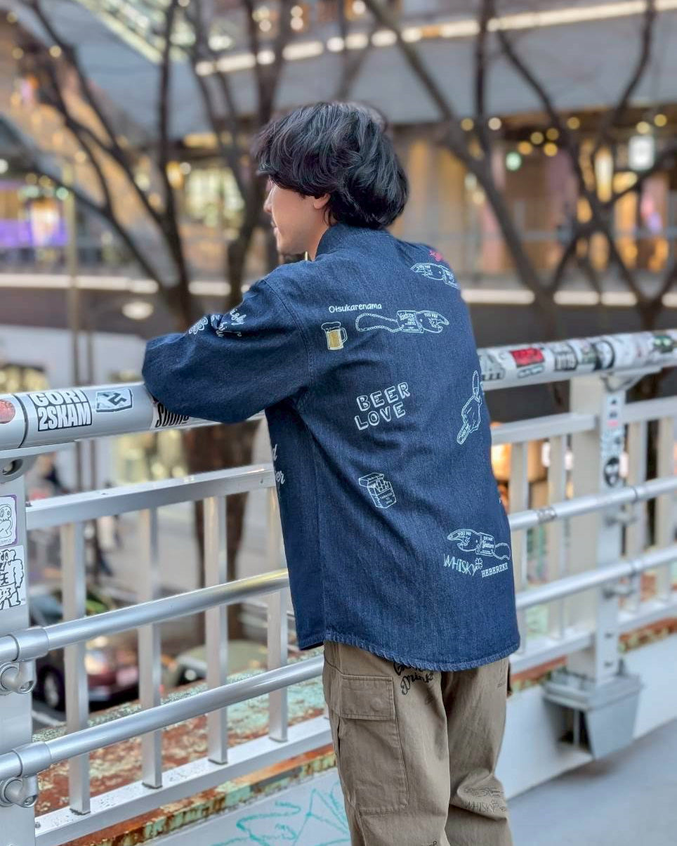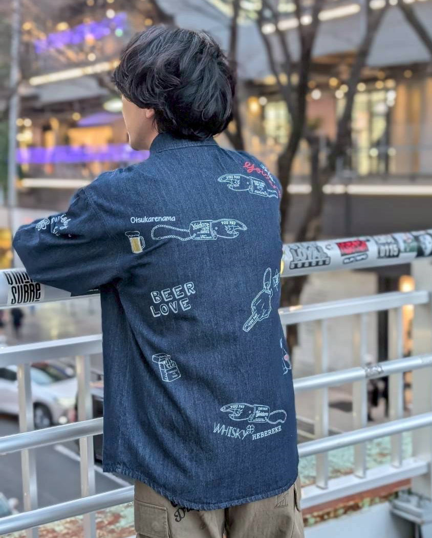 ややゆったりめのルーズなシルエットは適度なリラックス感があり、ラフな呑みシーンでのコーディネートに取り入れたいマストなアイテムです。