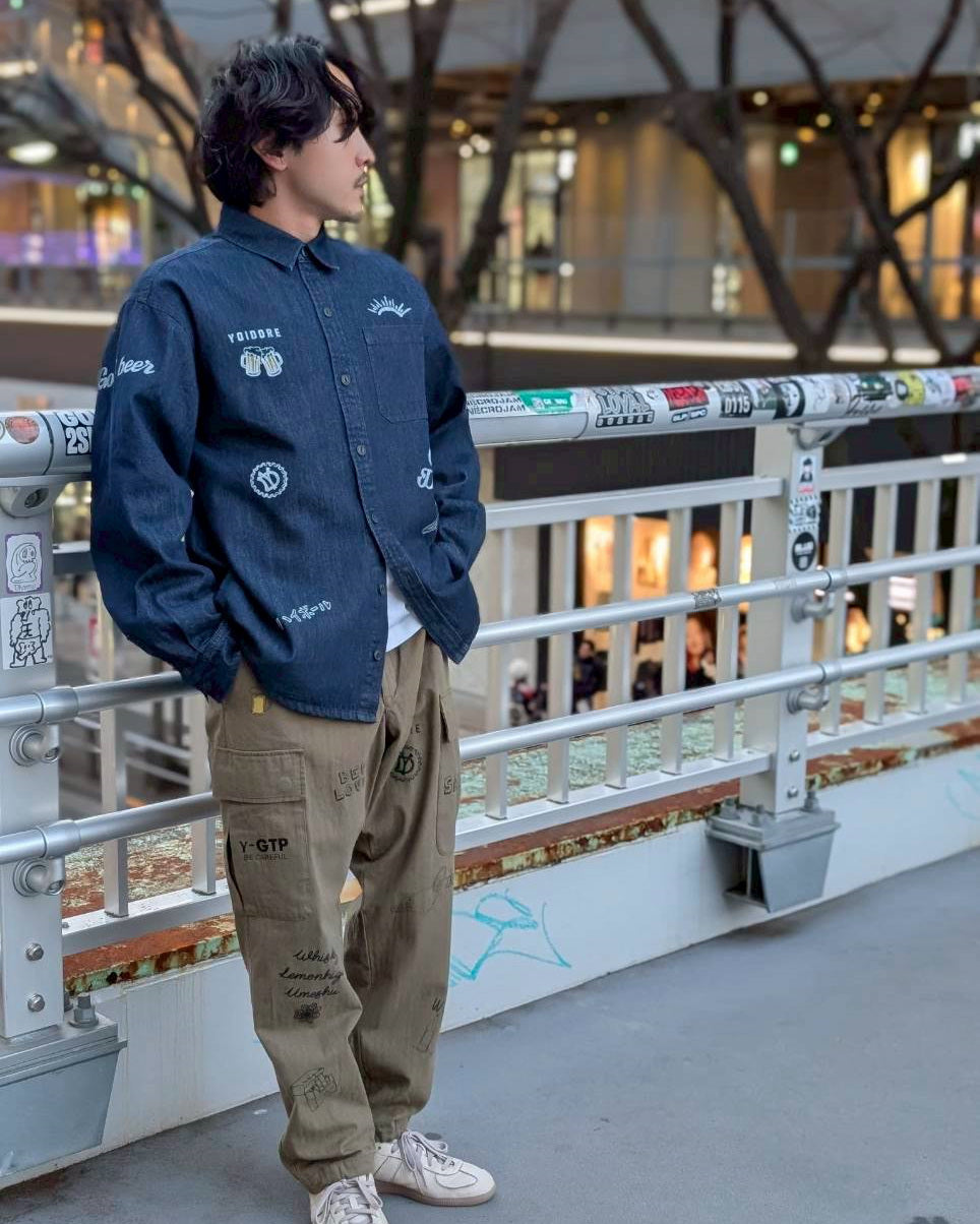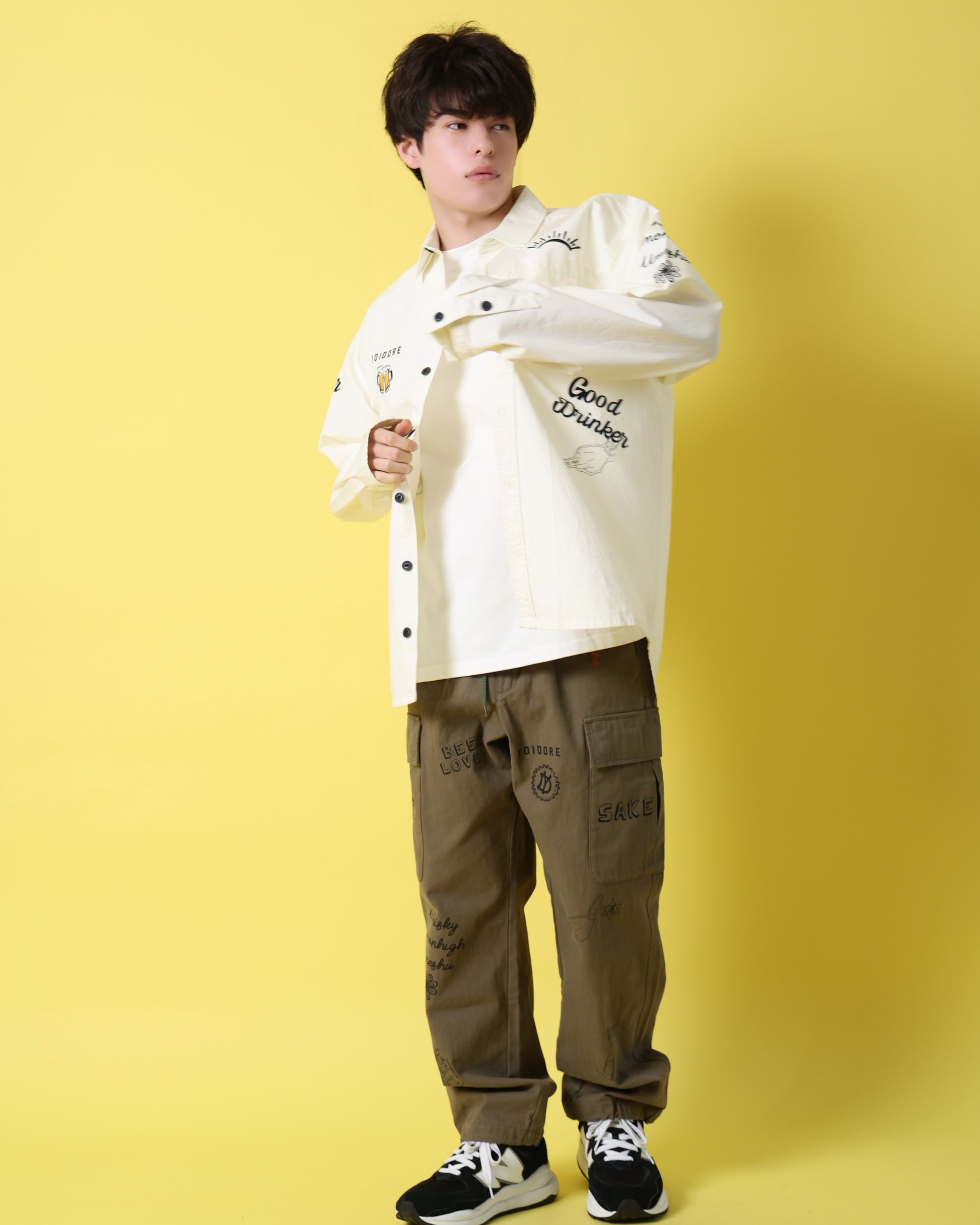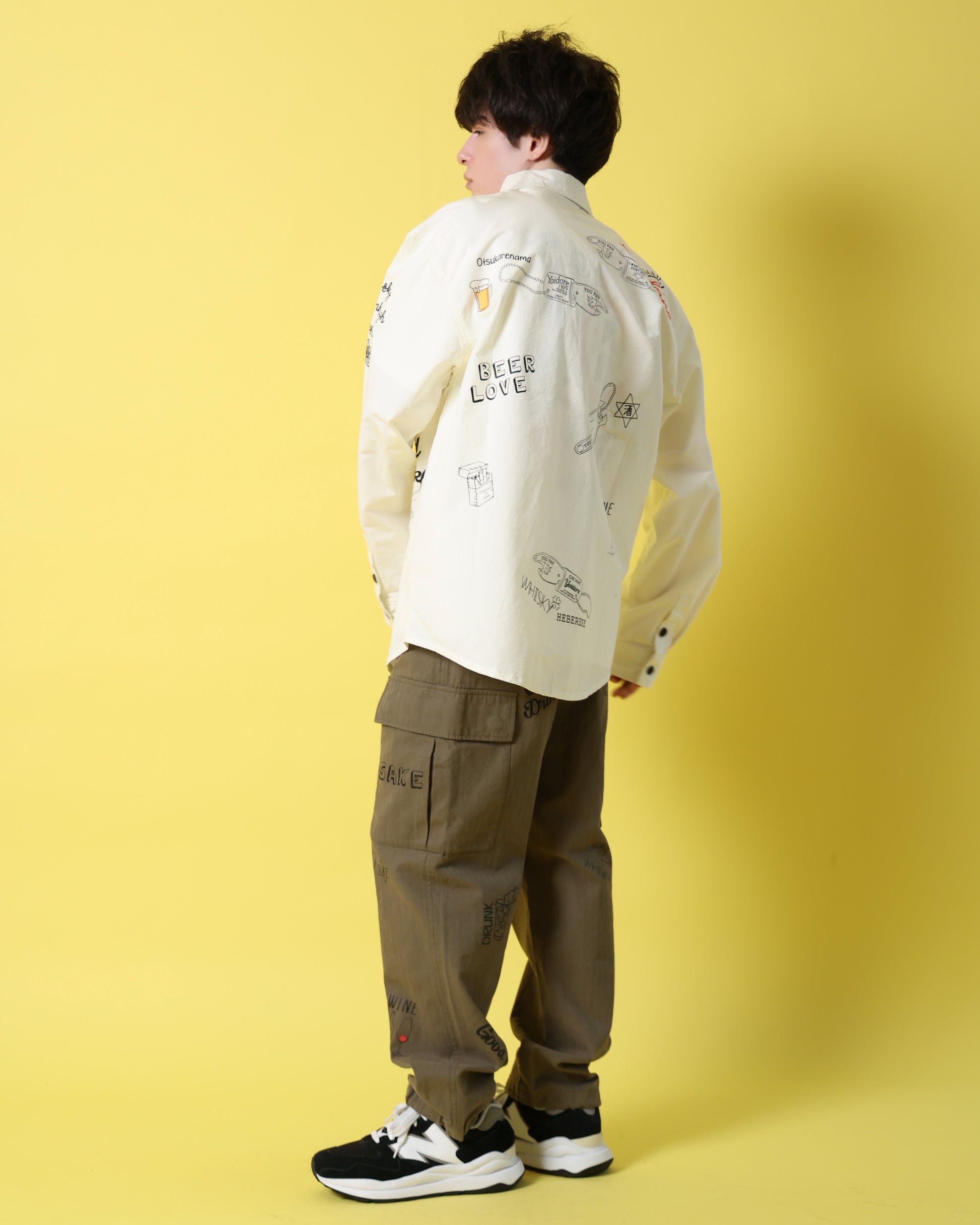 ややゆったりめのルーズなシルエットは適度なリラックス感があり、ラフな呑みシーンでのコーディネートに取り入れたいマストなアイテムです。