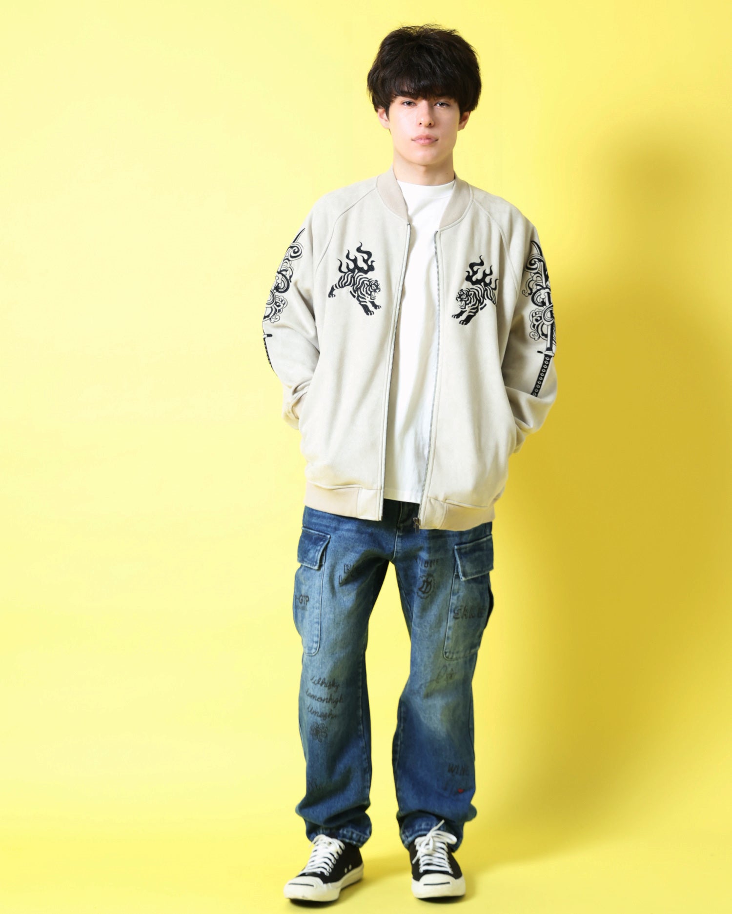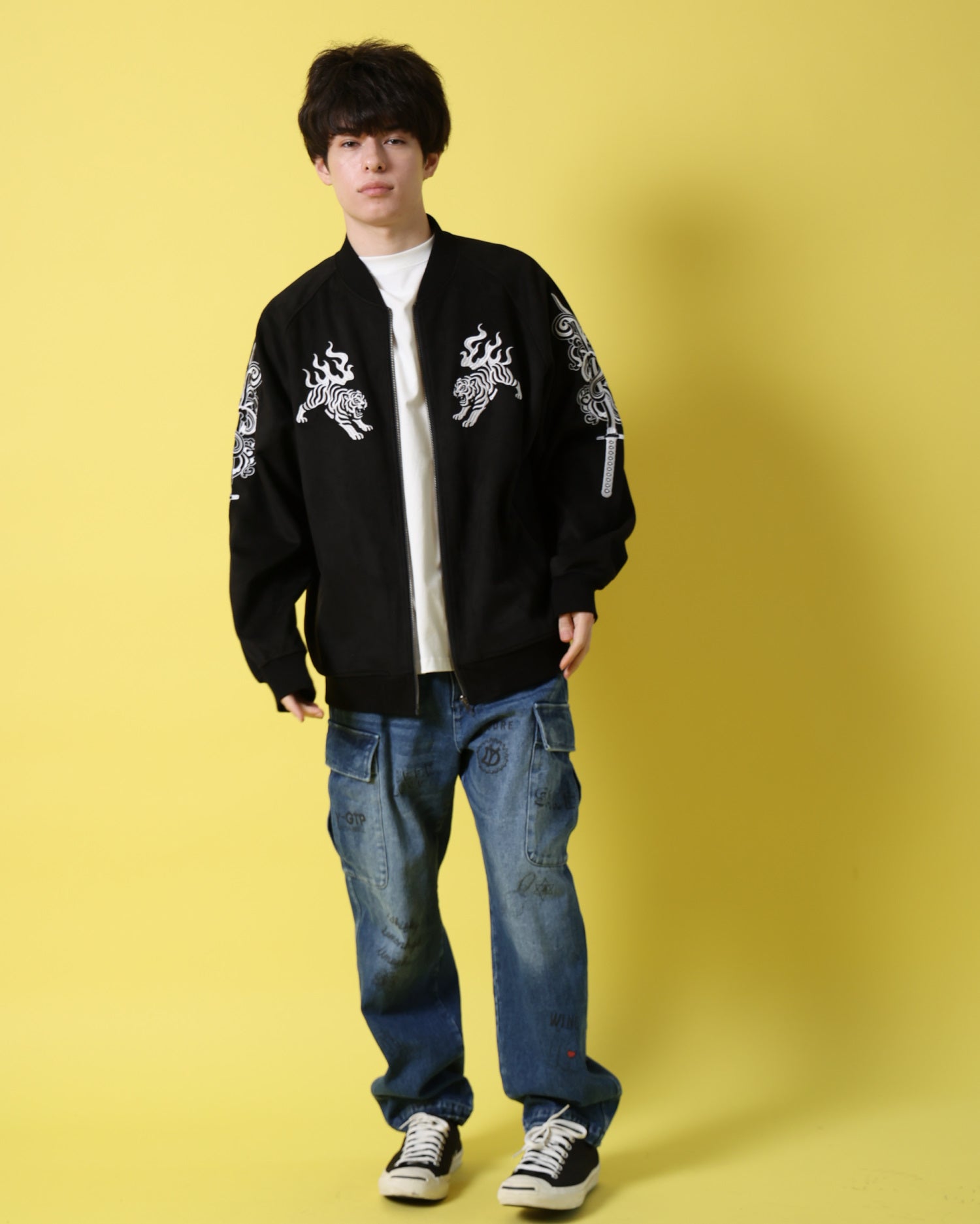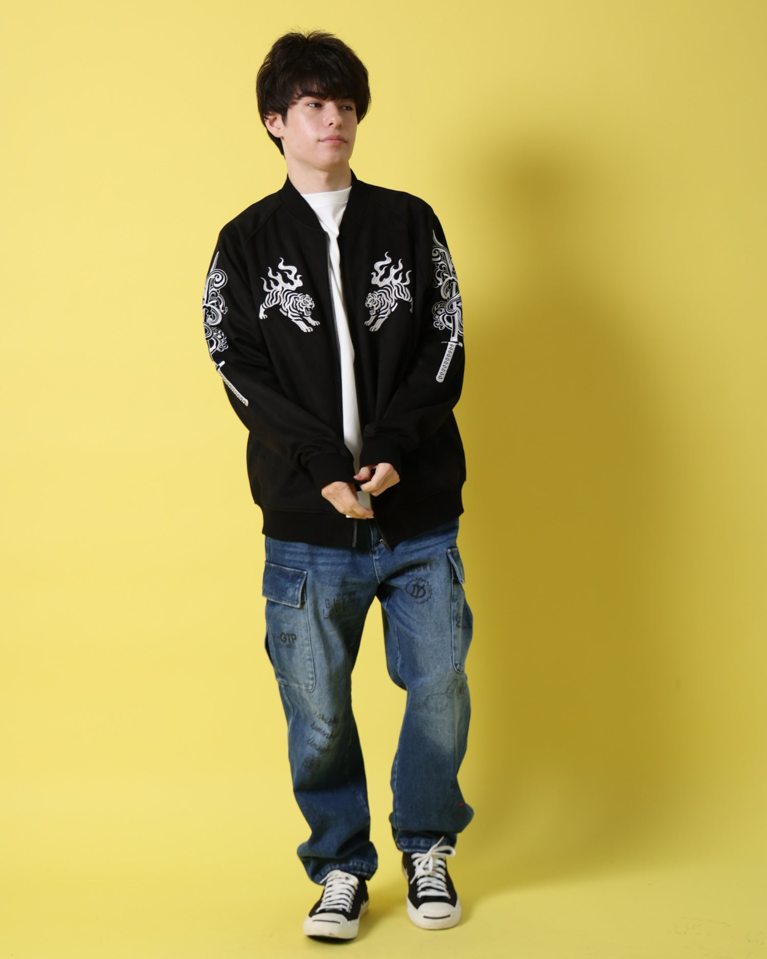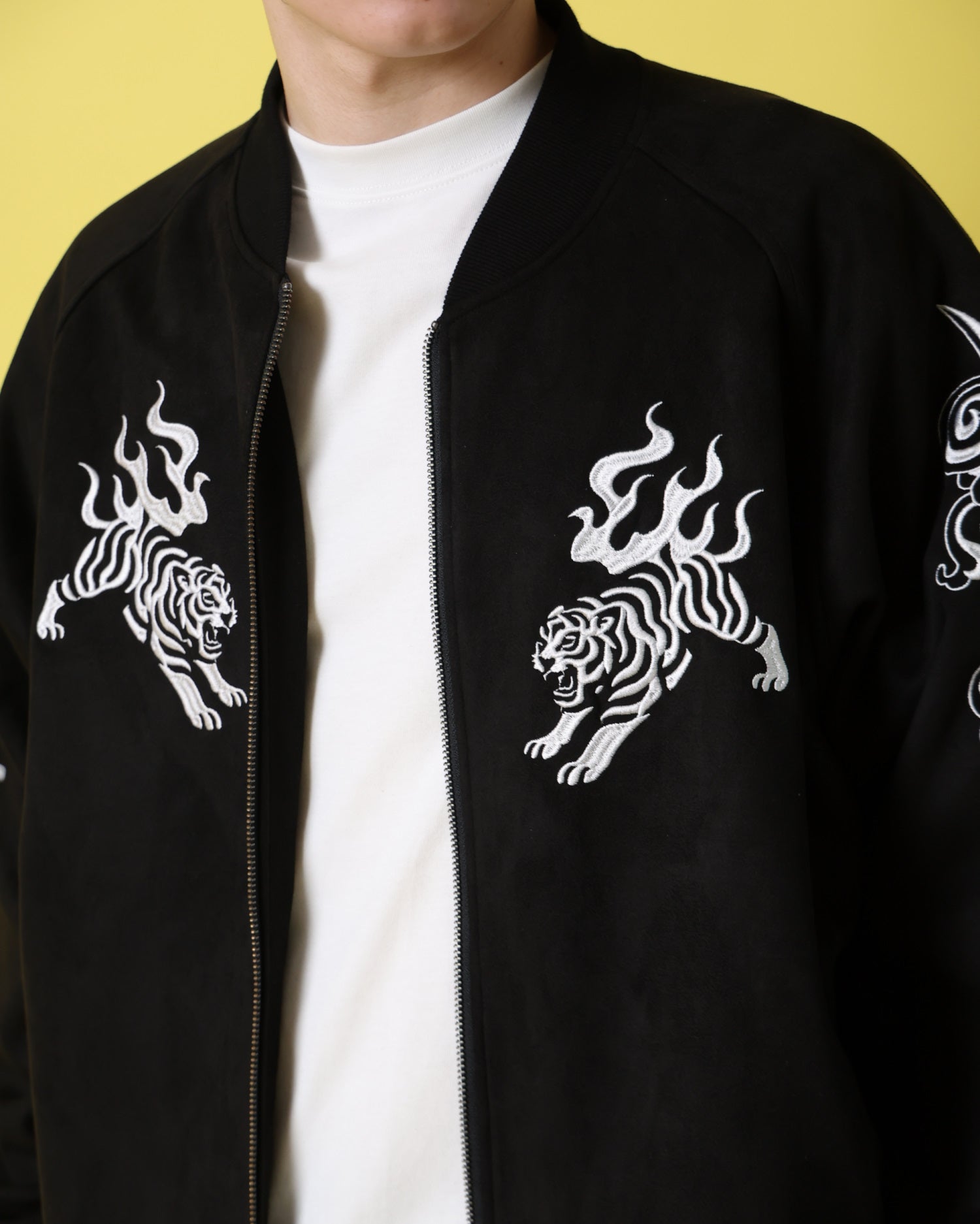 フロントは両胸に酔虎モチーフをのせスカジャン風なデザイン。