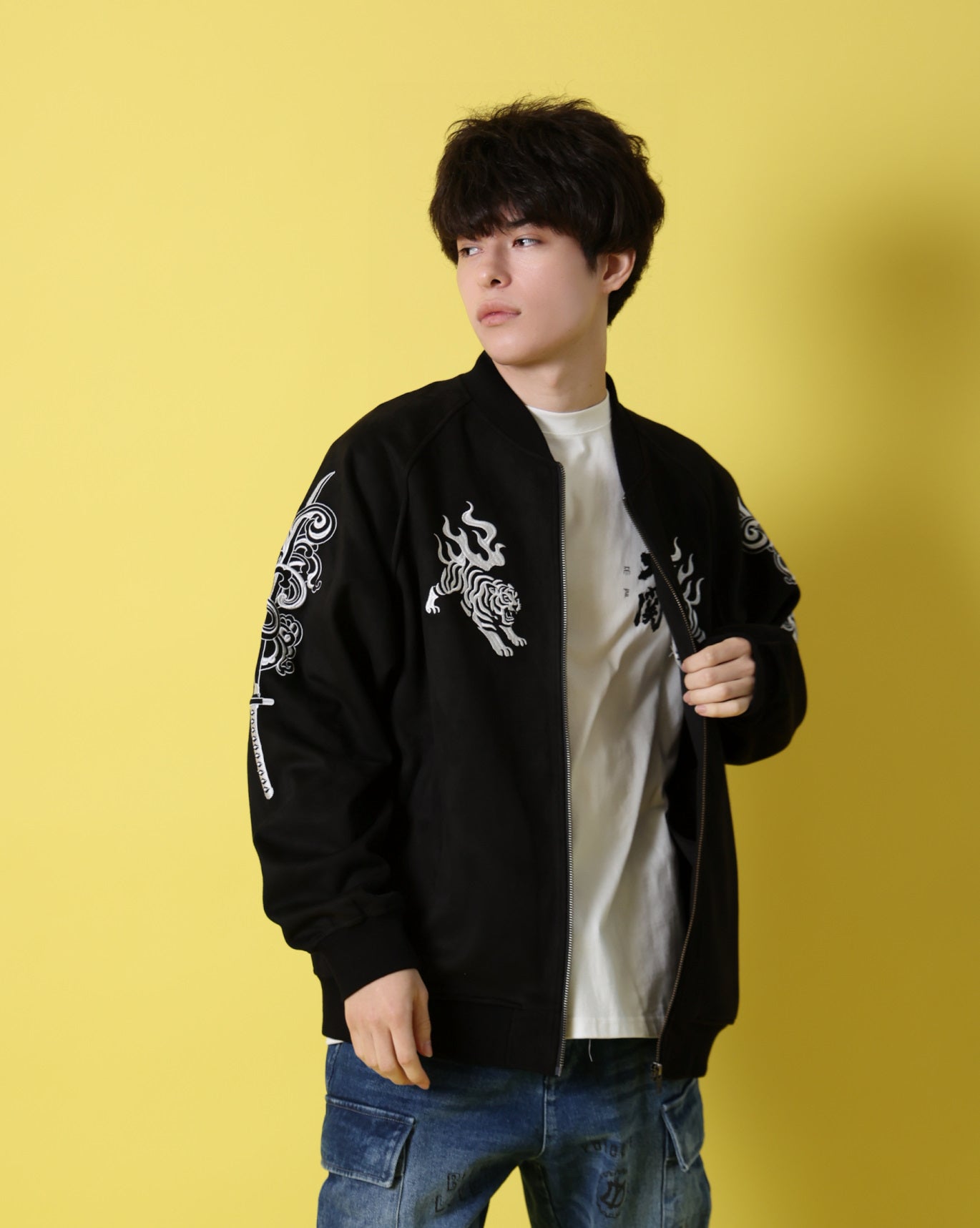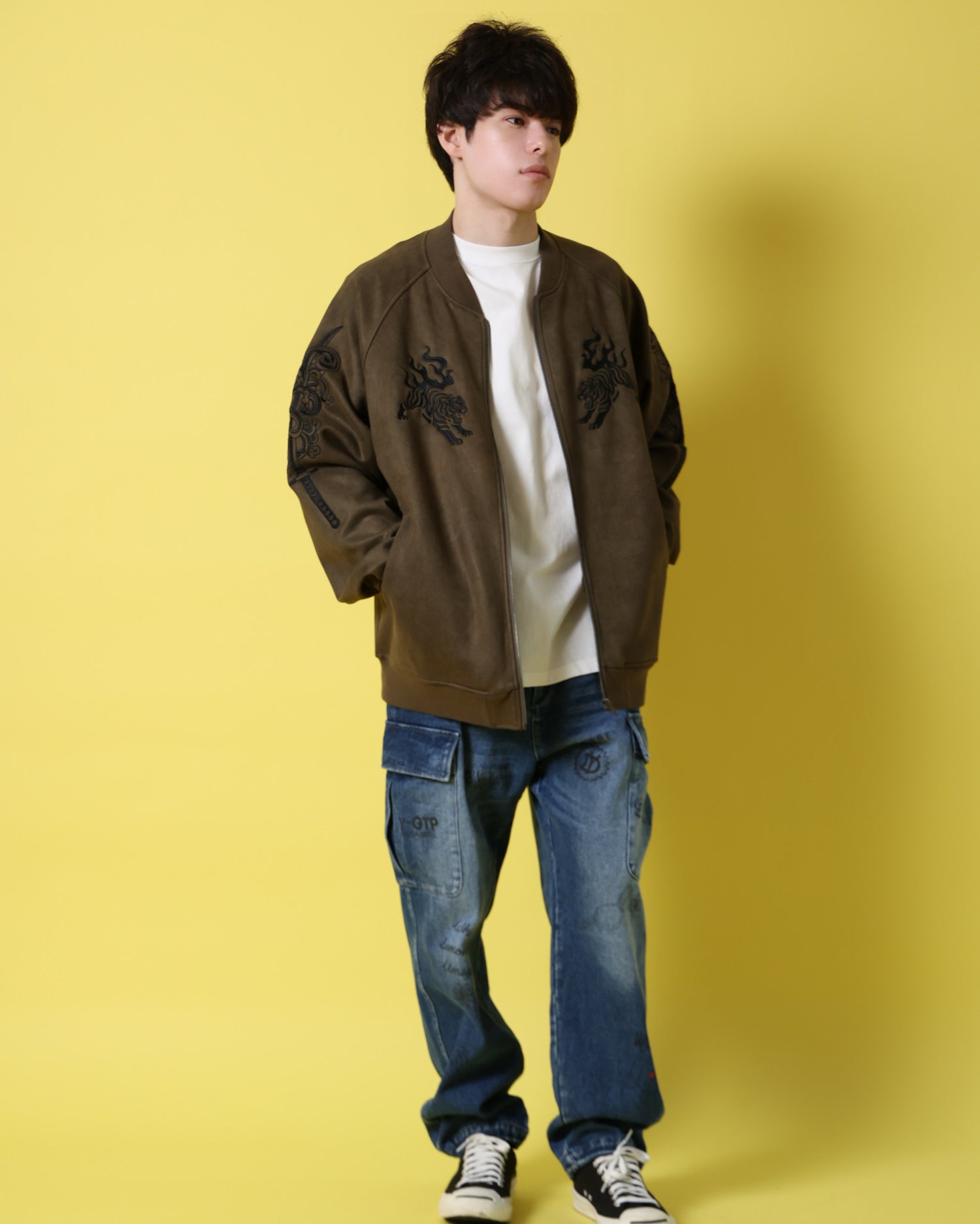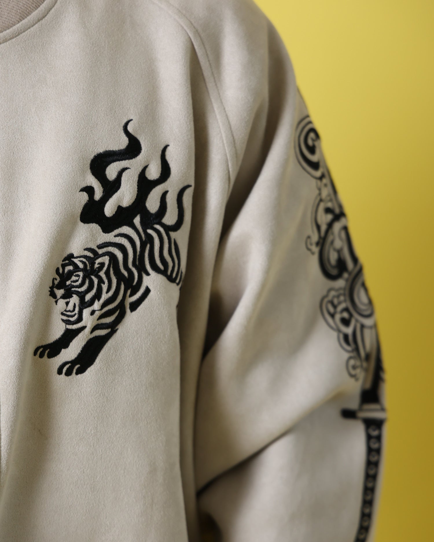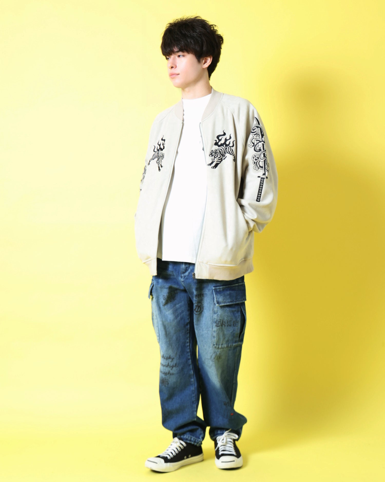 フロントは両胸に酔虎モチーフをのせスカジャン風なデザイン。