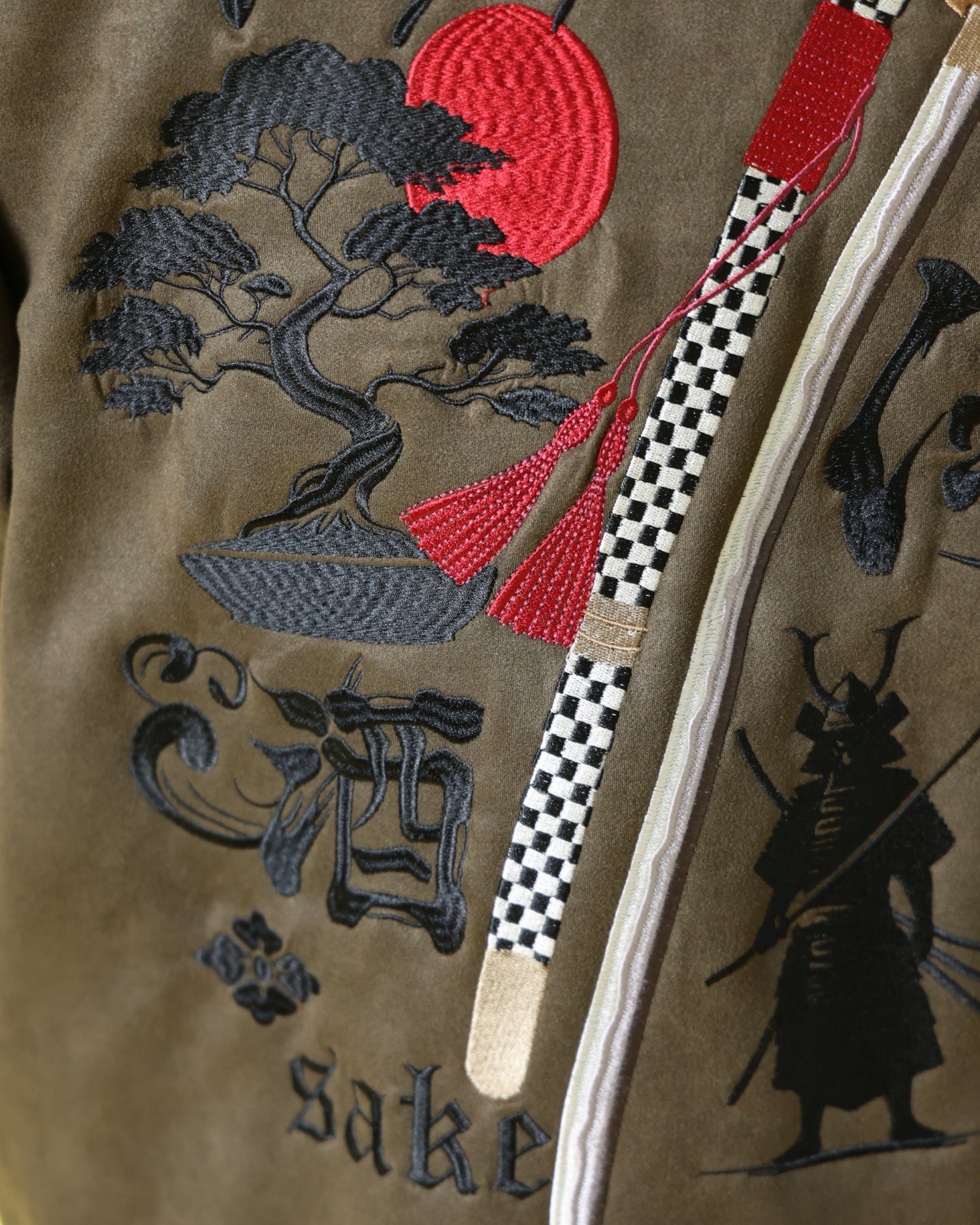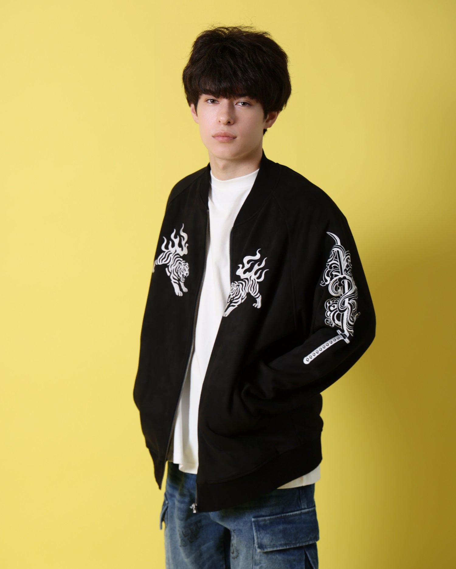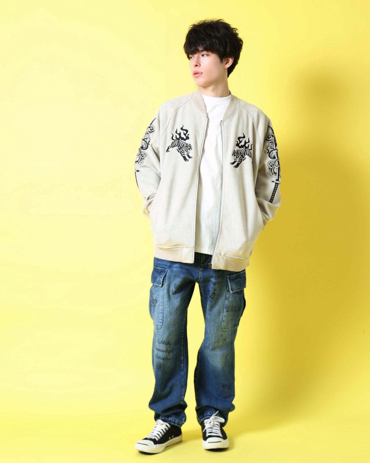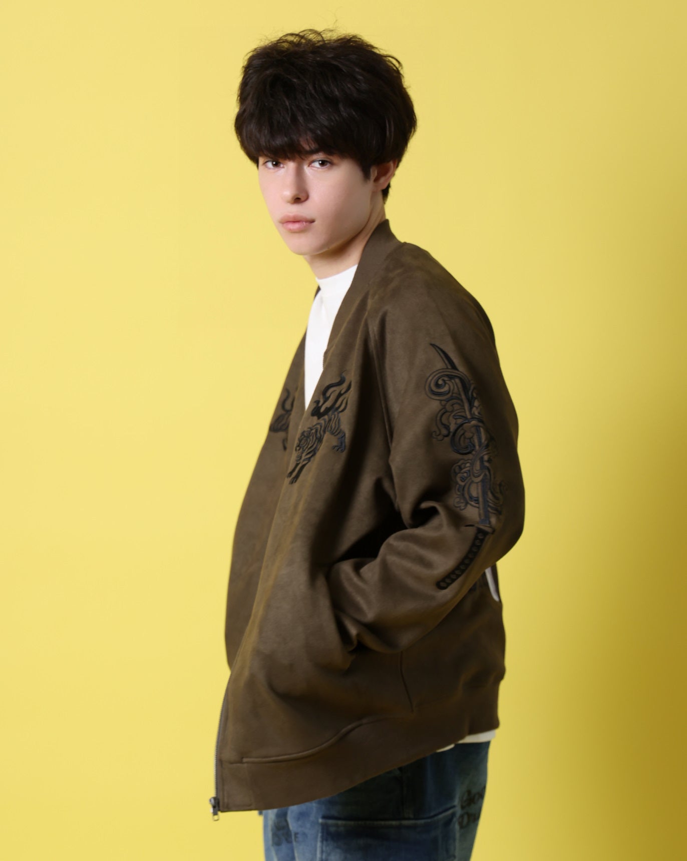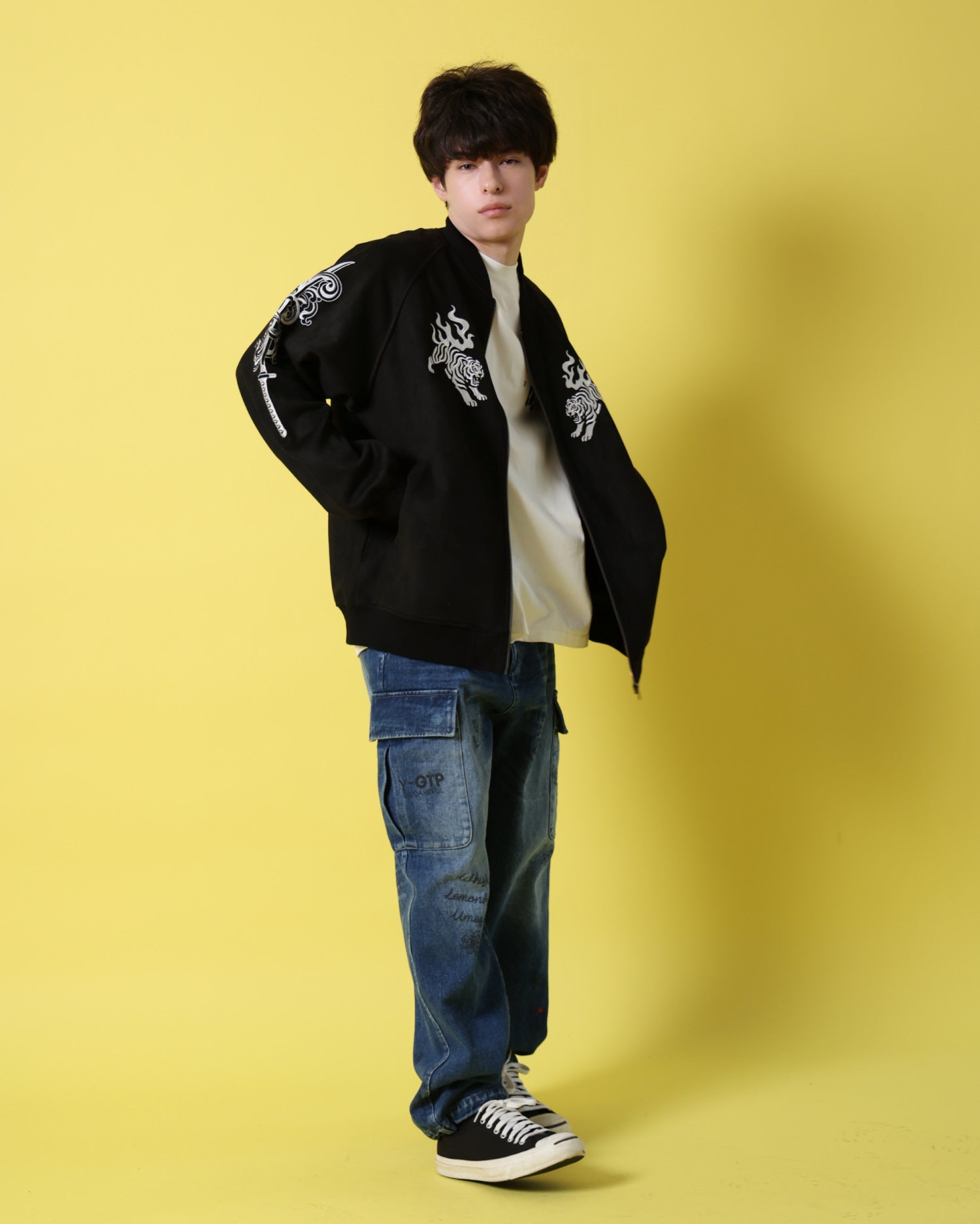 フロントは両胸に酔虎モチーフをのせスカジャン風なデザイン。