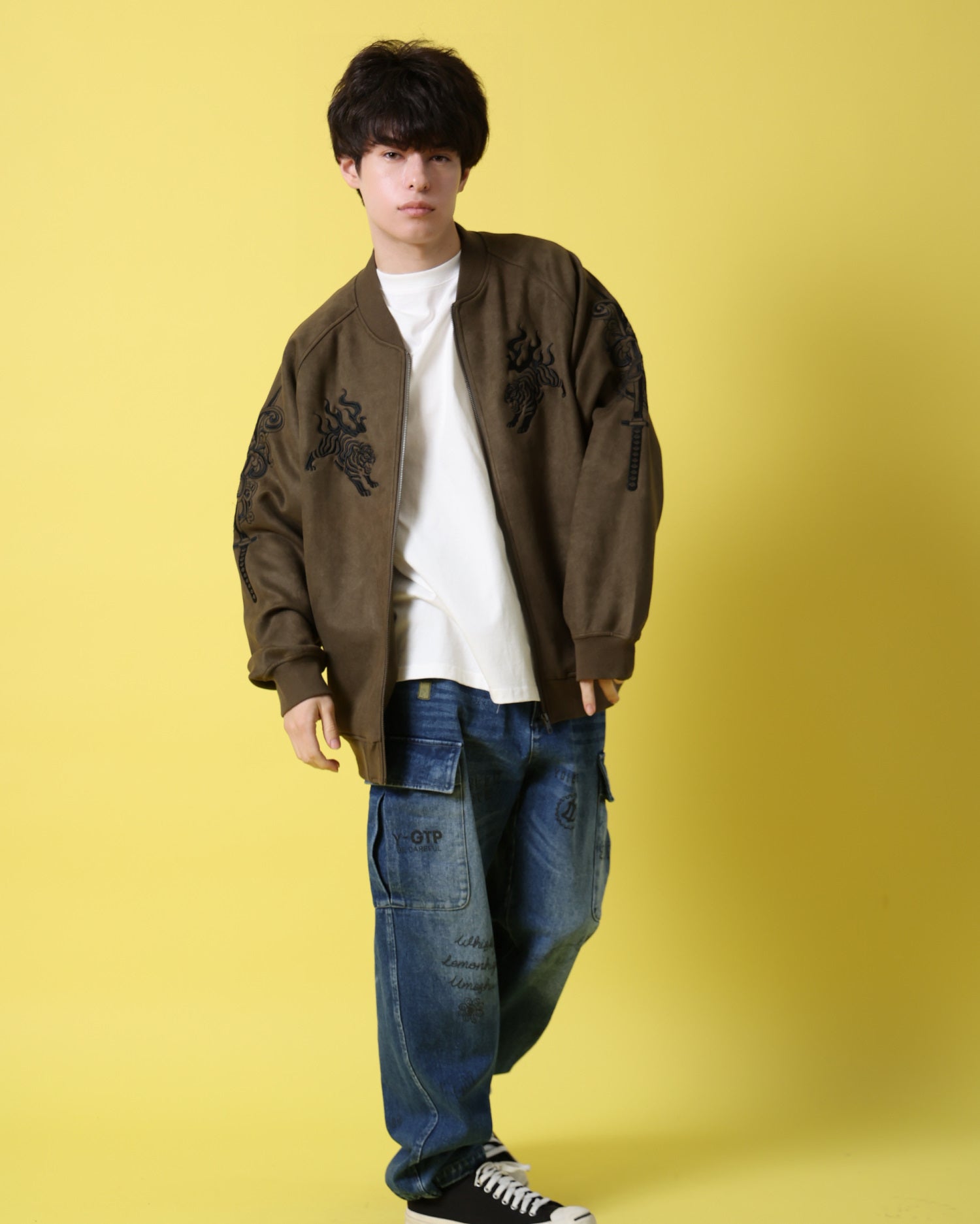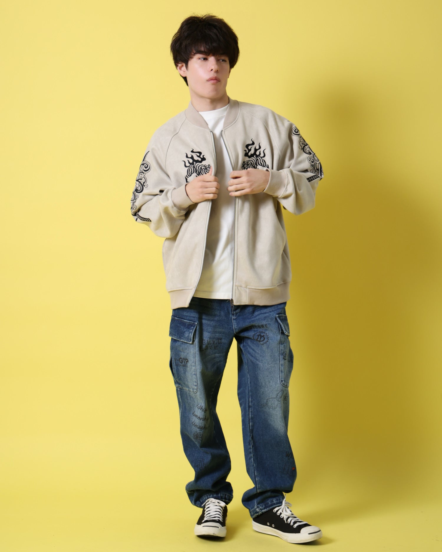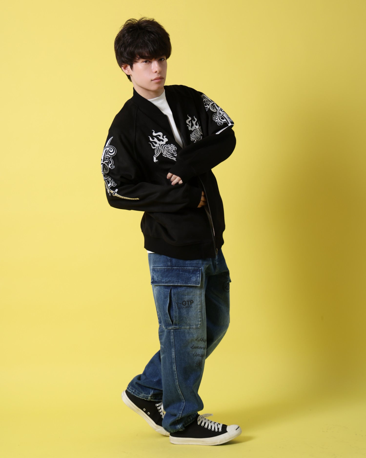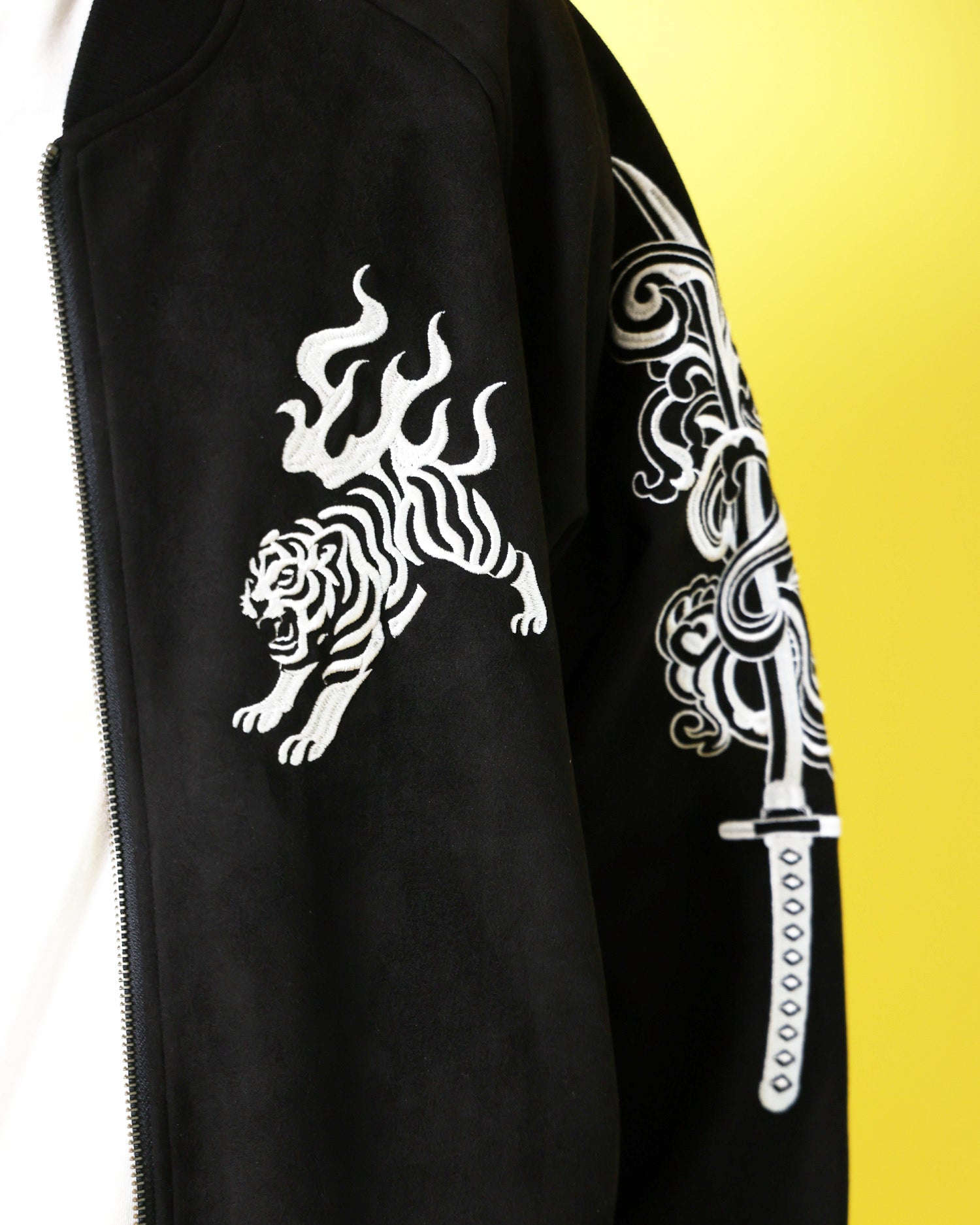 フロントは両胸に酔虎モチーフをのせスカジャン風なデザイン。