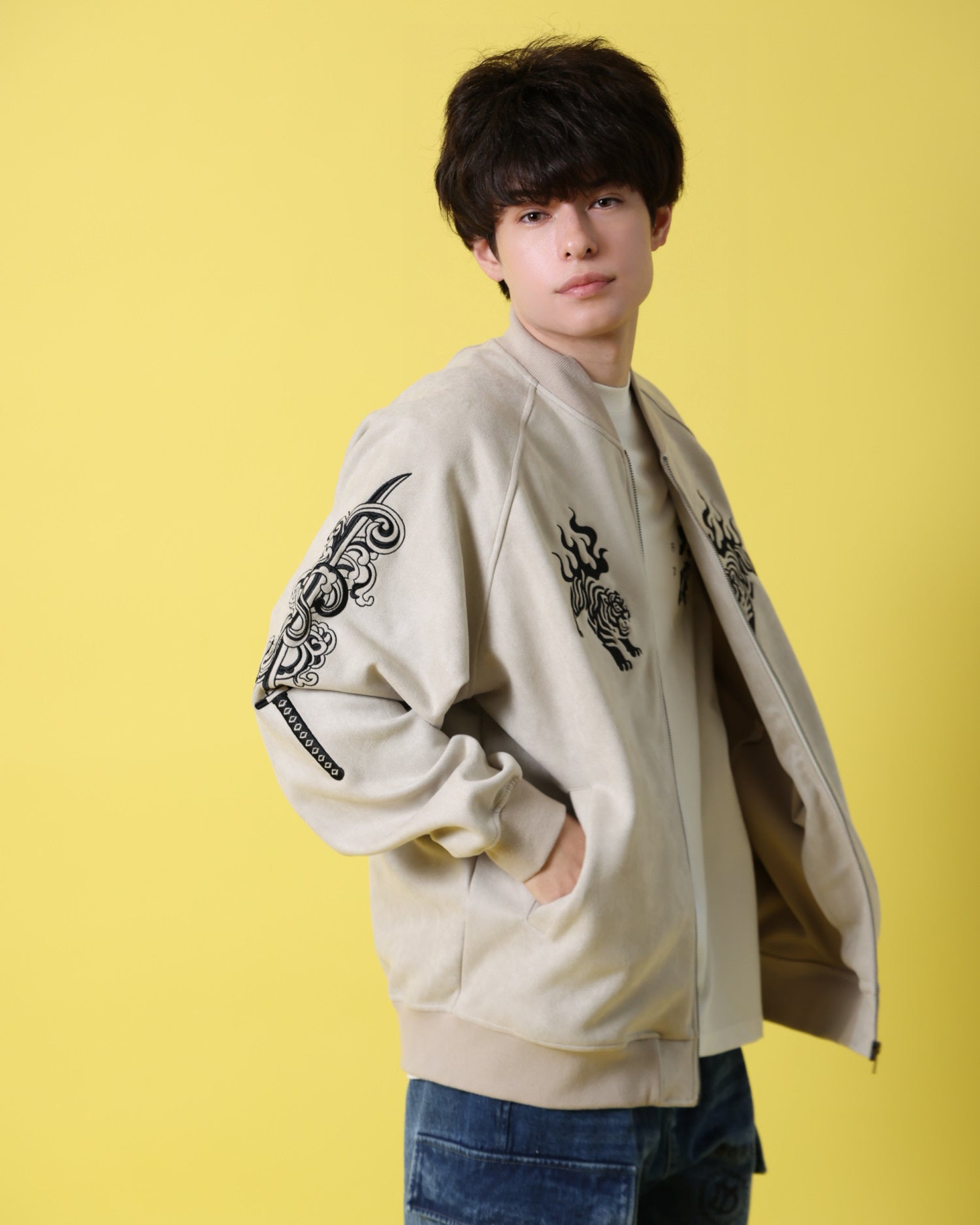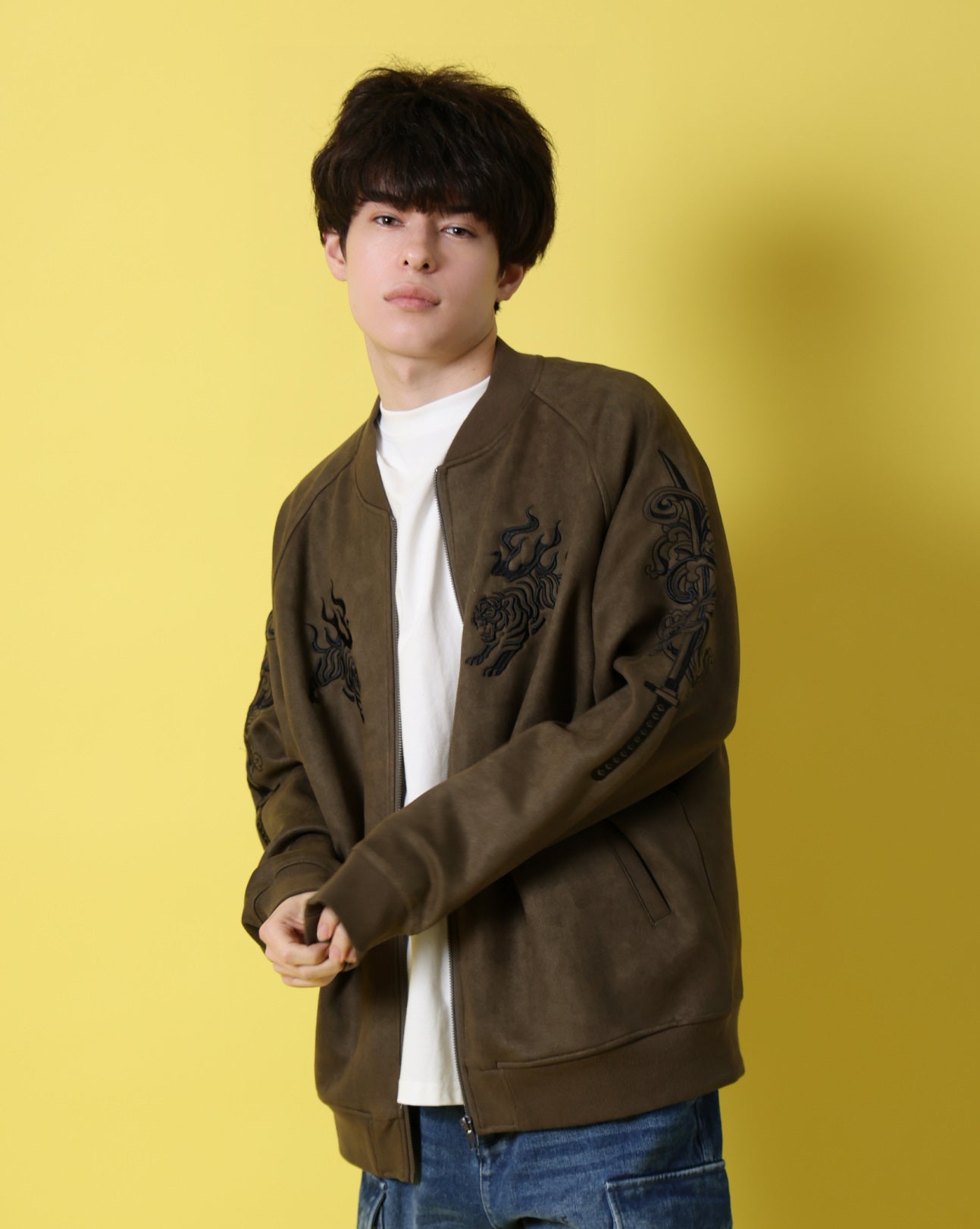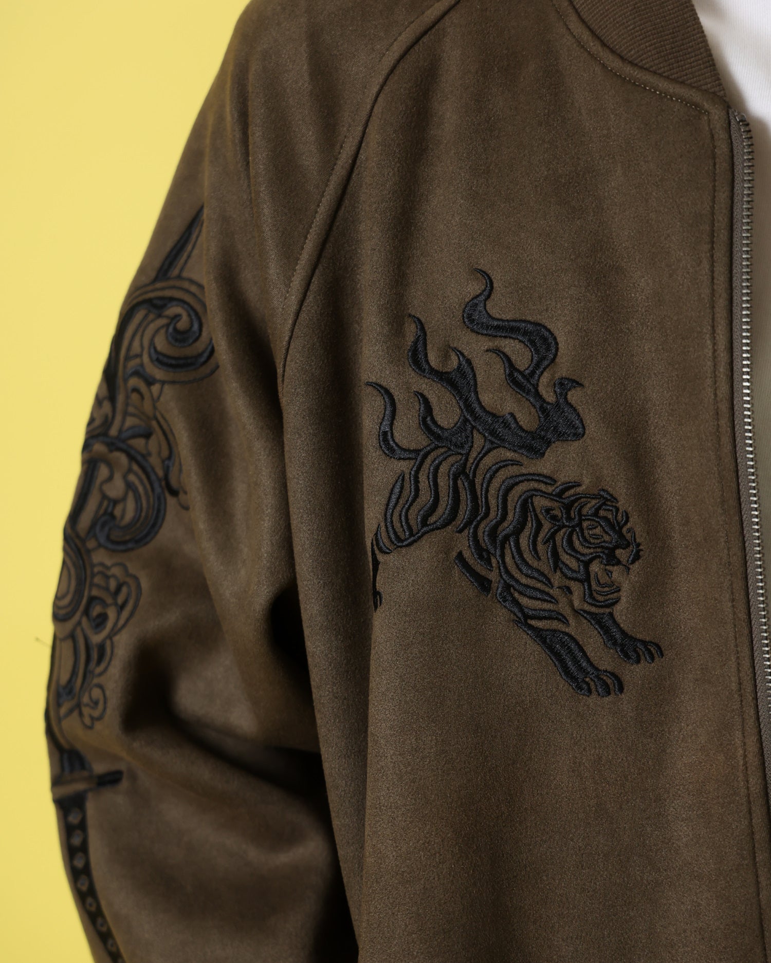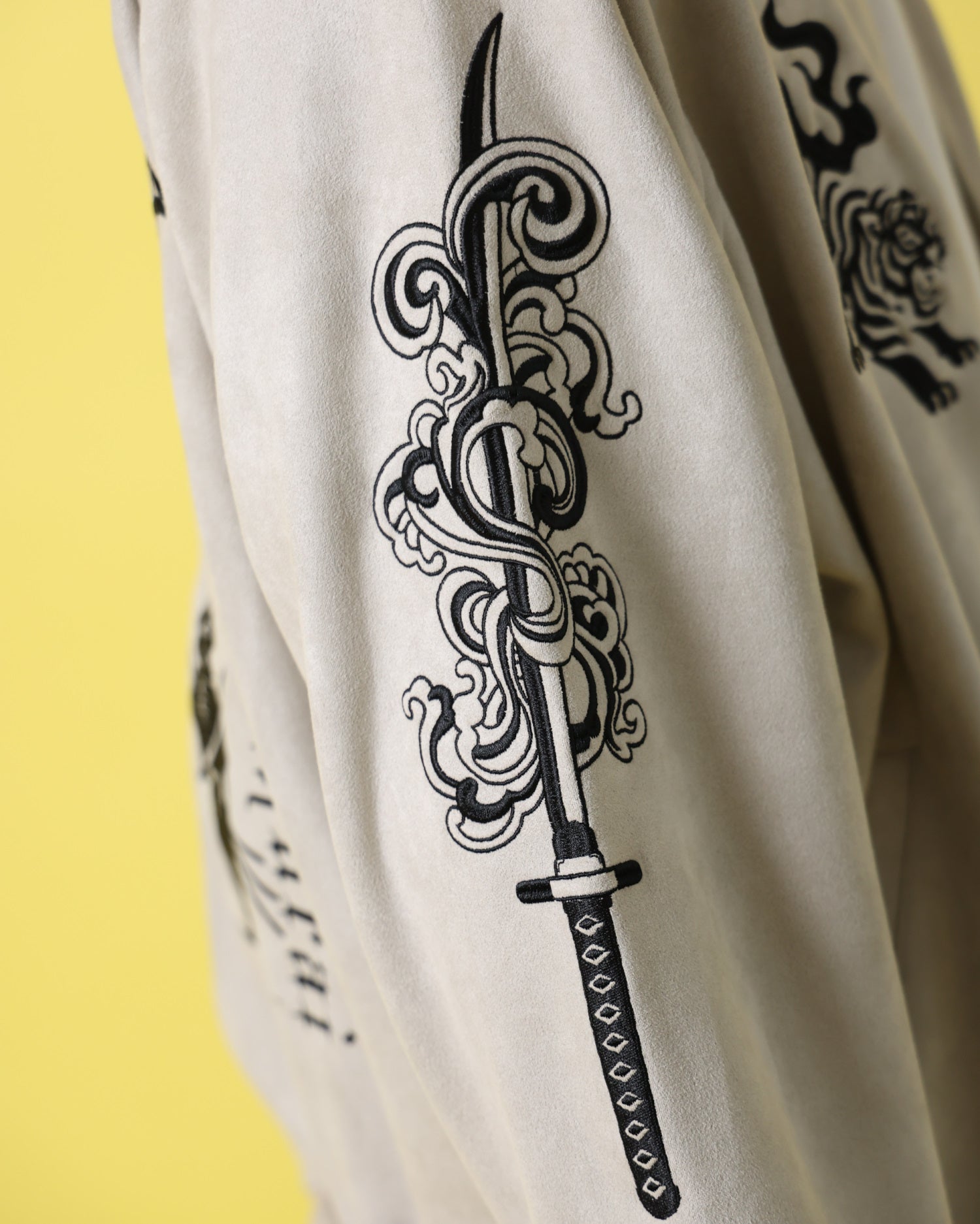 フロントは両胸に酔虎モチーフをのせスカジャン風なデザイン。