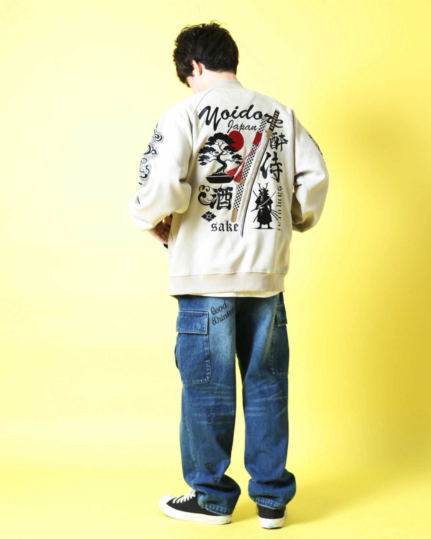 JAPANをフューチャーしたバックデザインはYOIDORE心をくすぐる酔侍の象徴である侍ソードを堂々と刺繍!