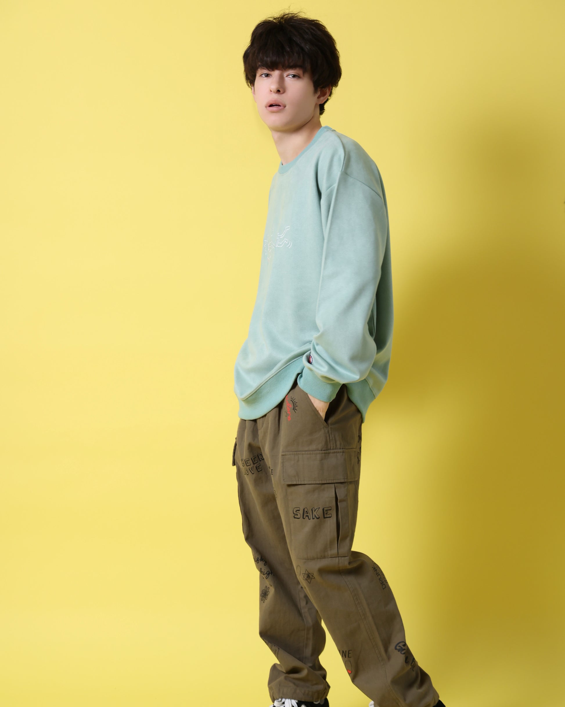 ややゆったりめのルーズなシルエットは適度なリラックス感があり、ラフな呑みシーンでのコーディネートに取り入れたいマストなアイテムです。