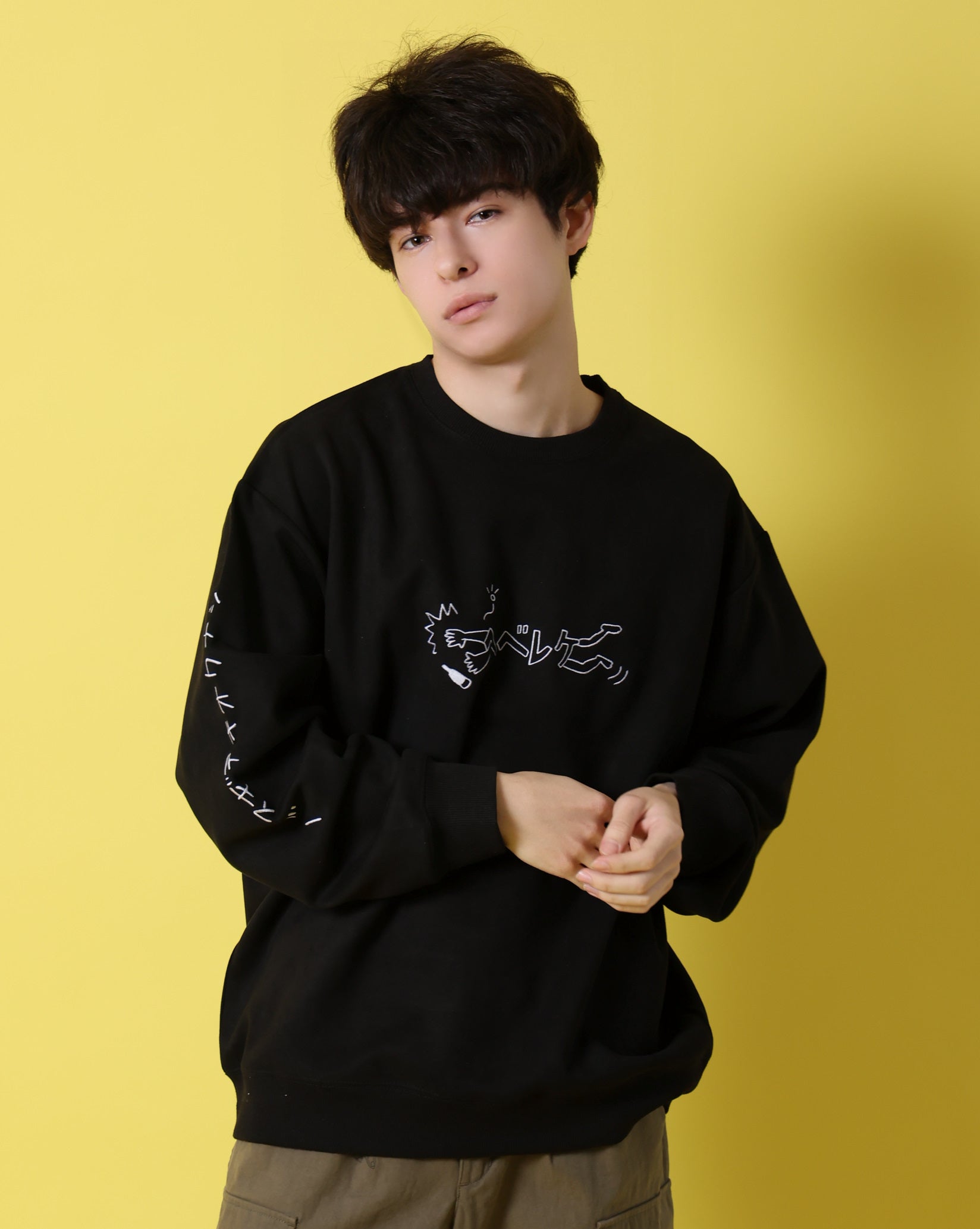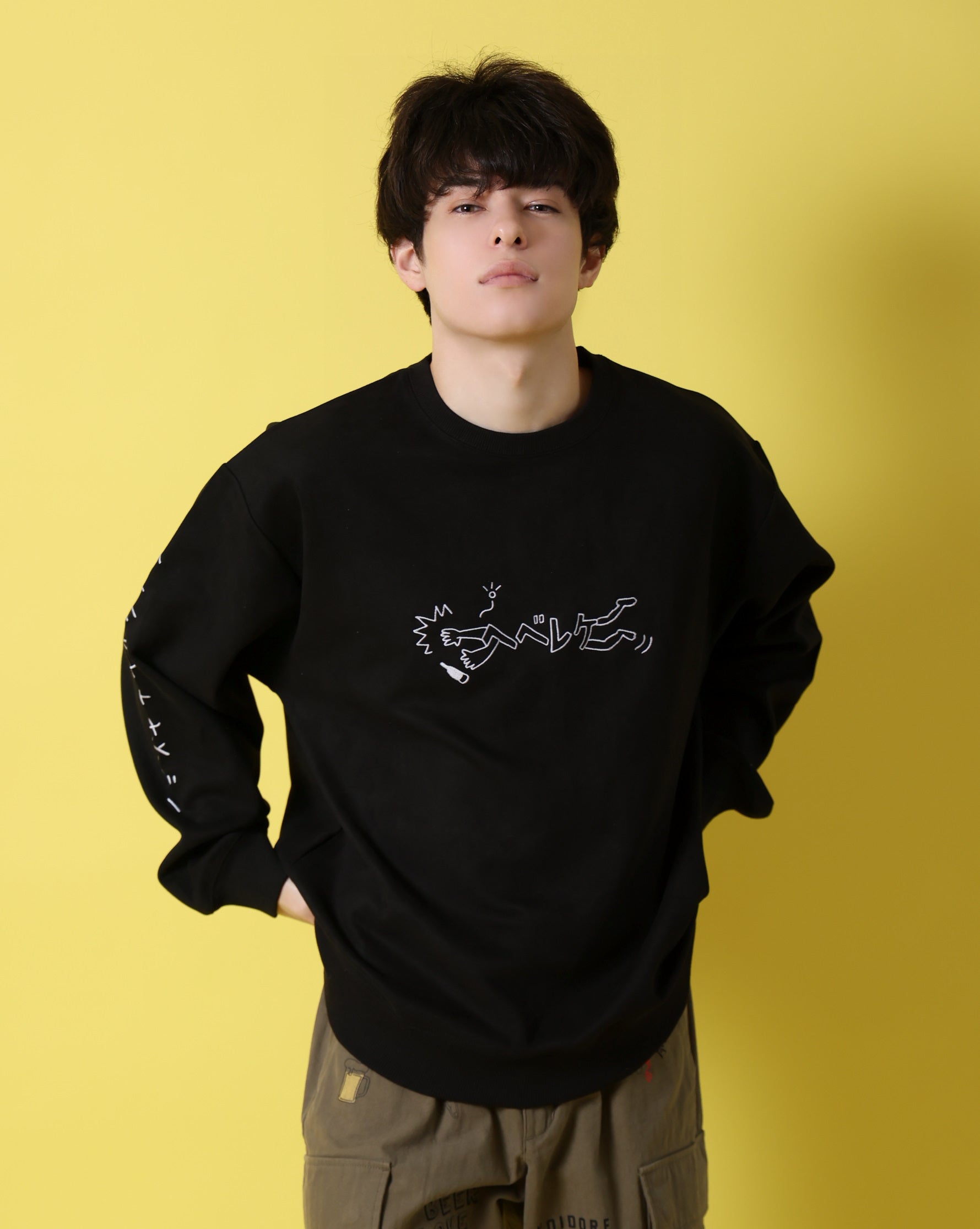 そんなストーリーをポップアート的なグラフィックデザインで表見した、新しいアプローチのクルーネックです。