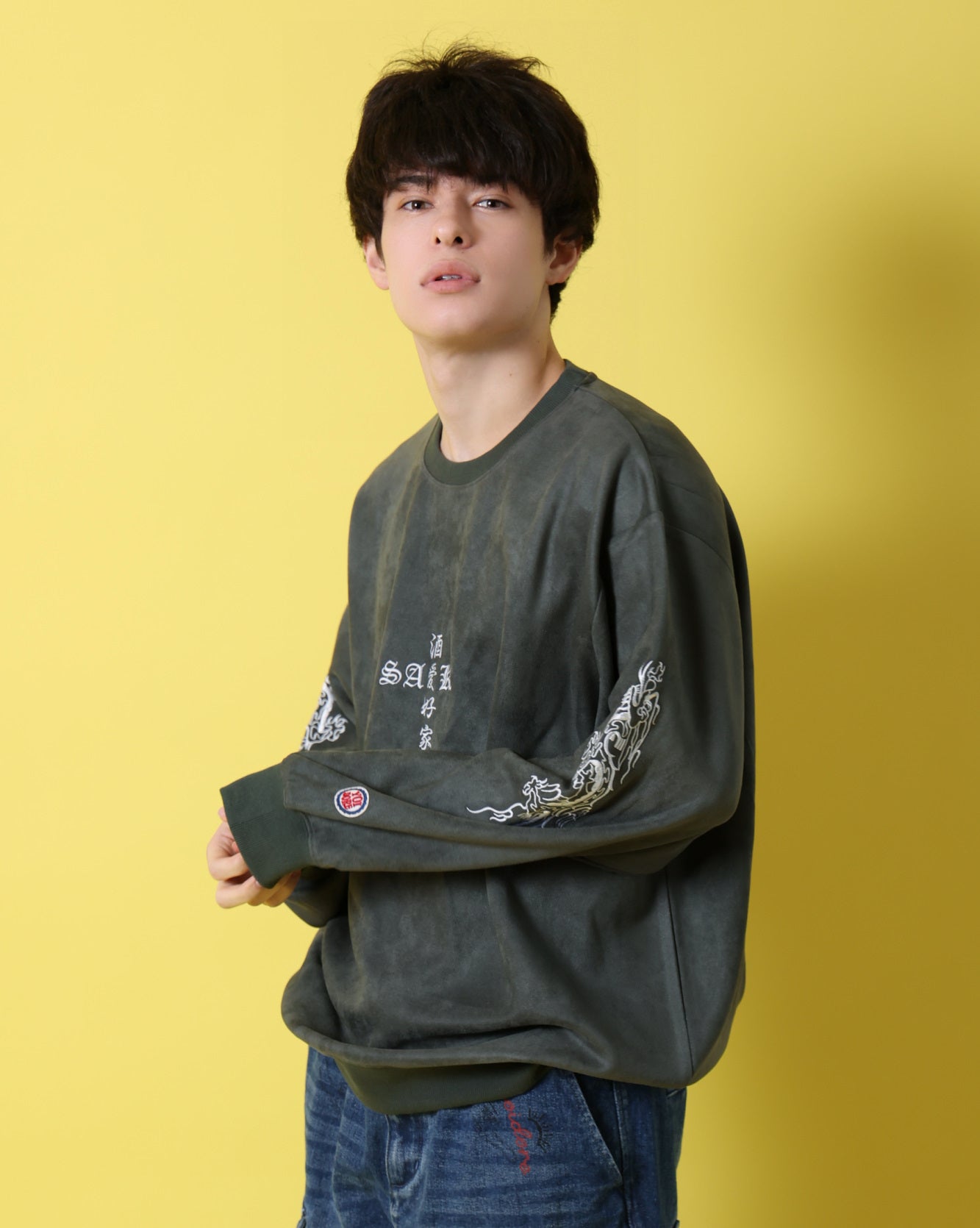 【YOIDORE】酔虎と酔龍 スエードタッチ クルーネック (816608)