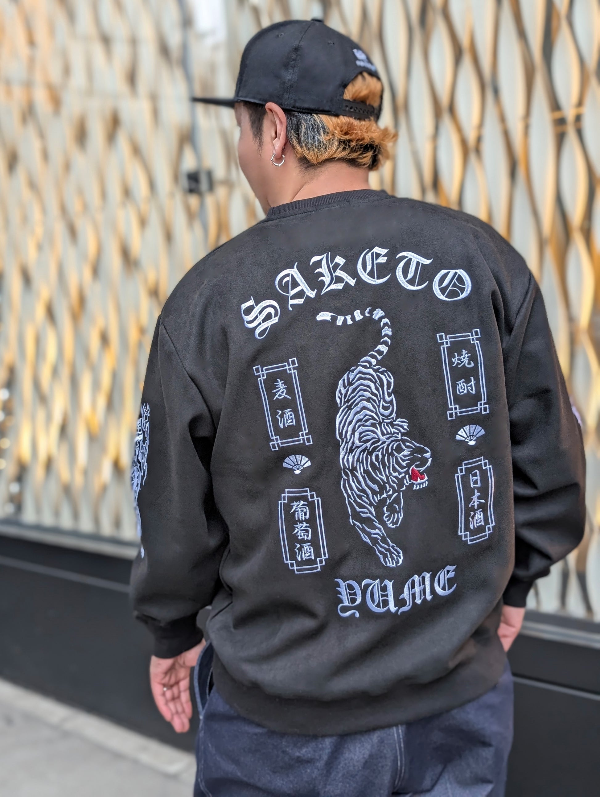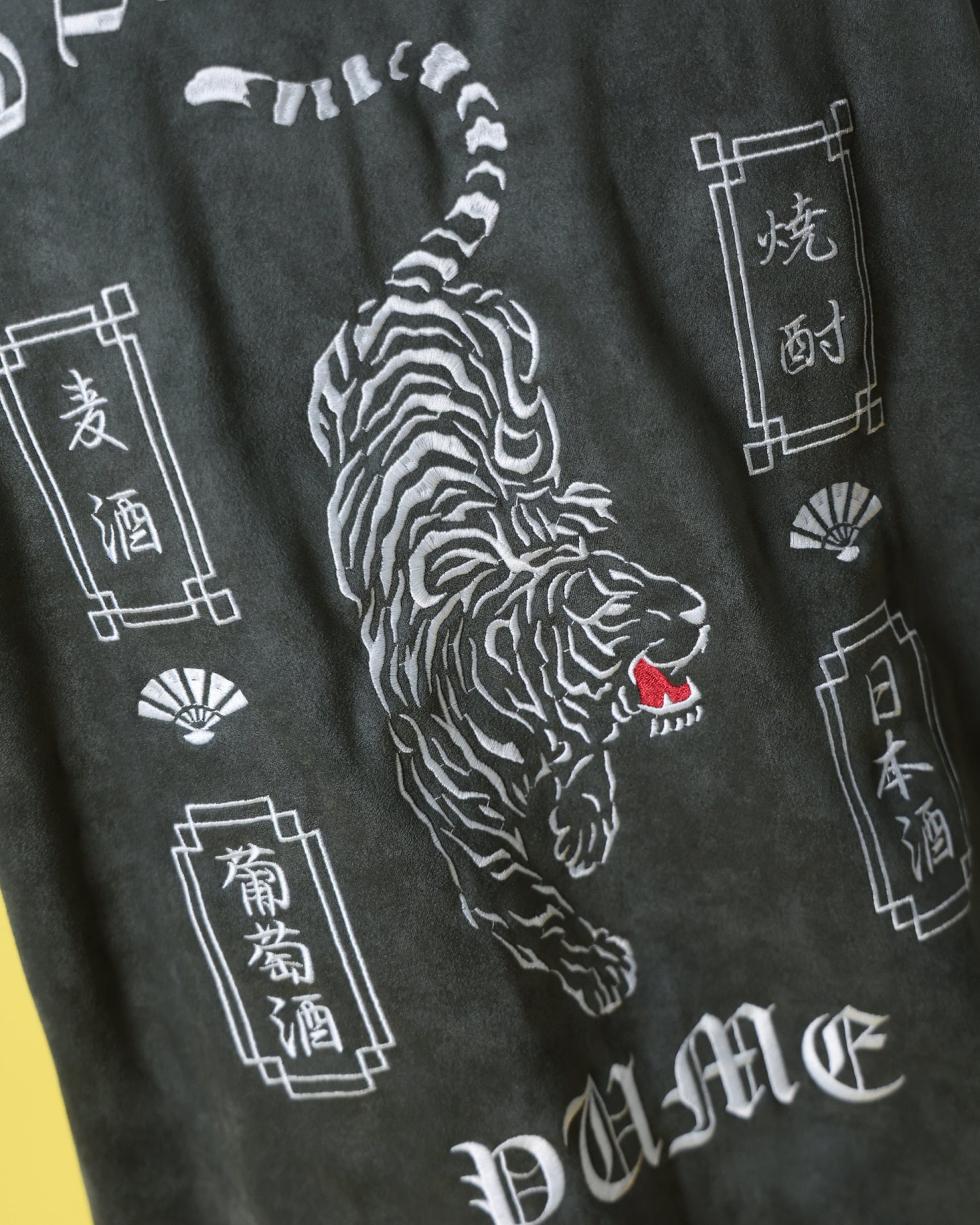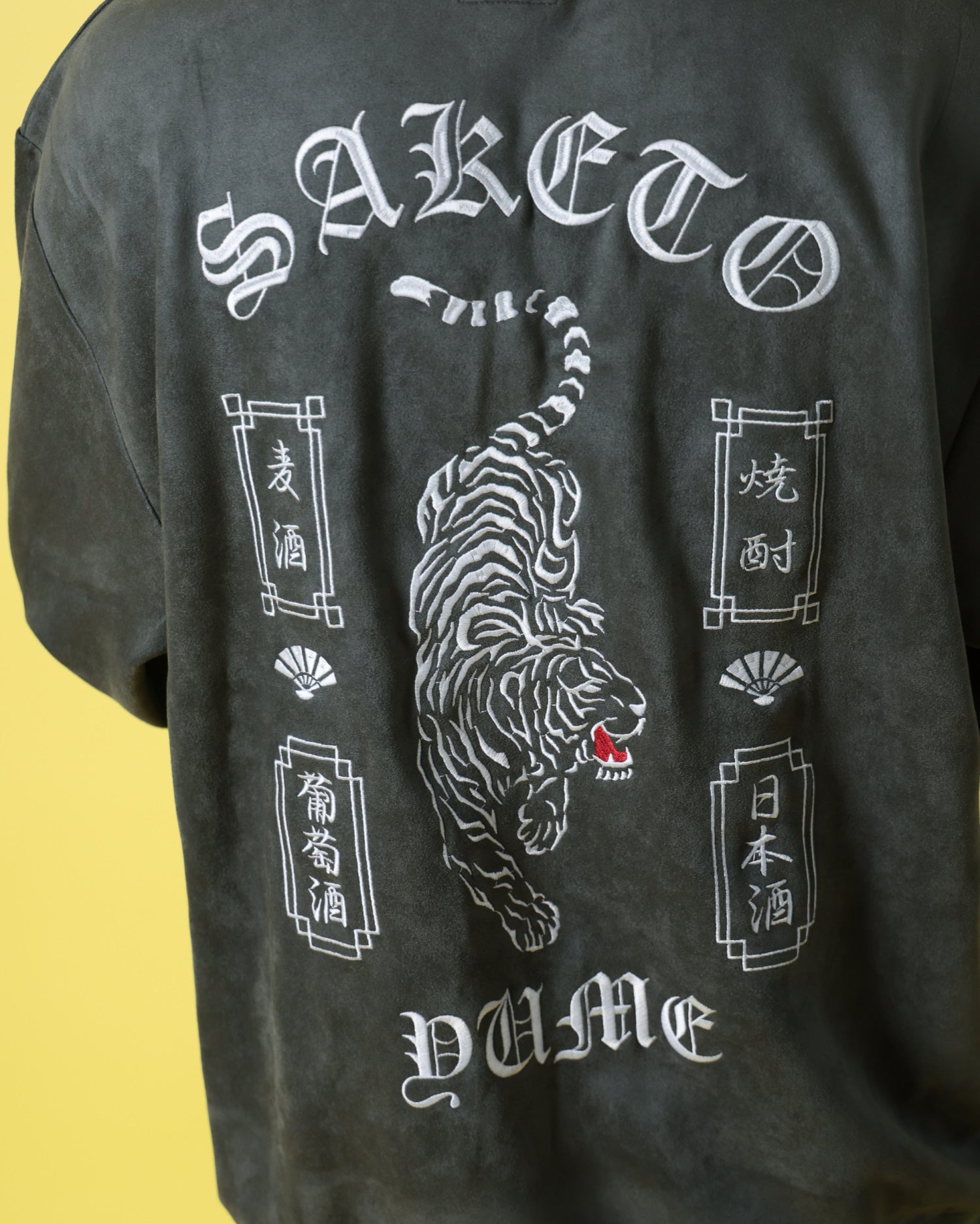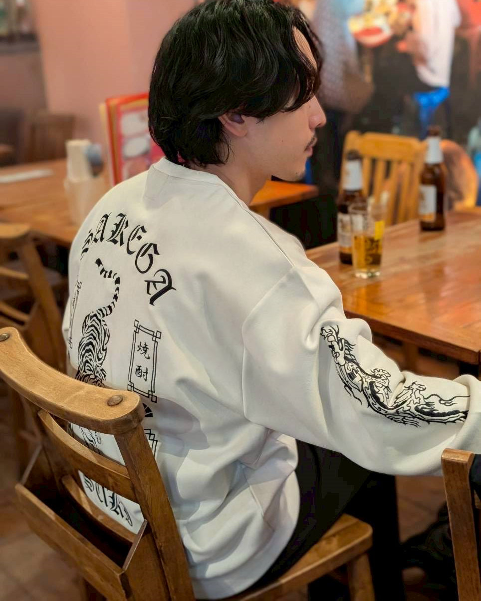 バックにはあらゆる酒を呑み尽くす勢いの荒ぶる酔虎を堂々と刺繍。