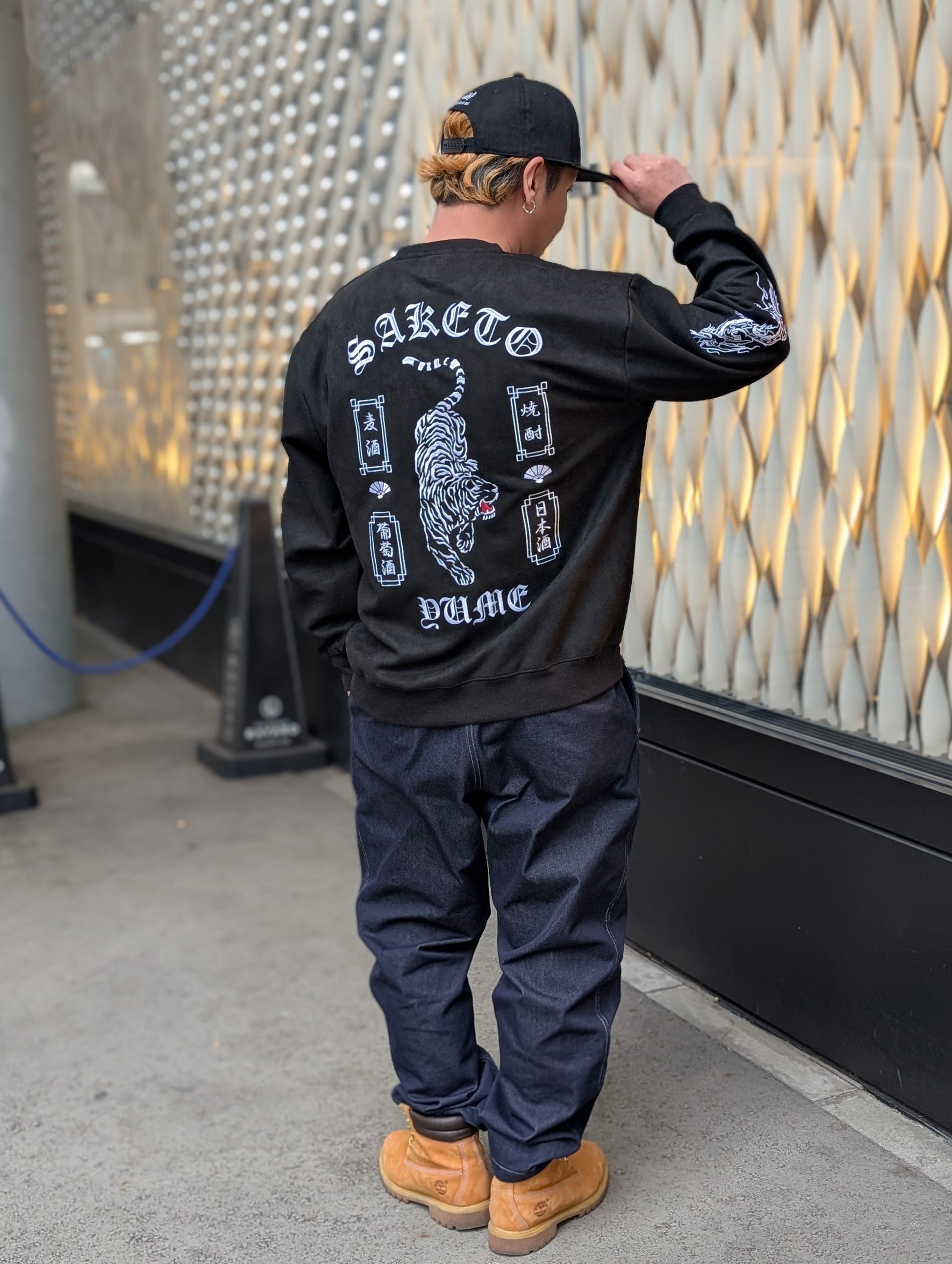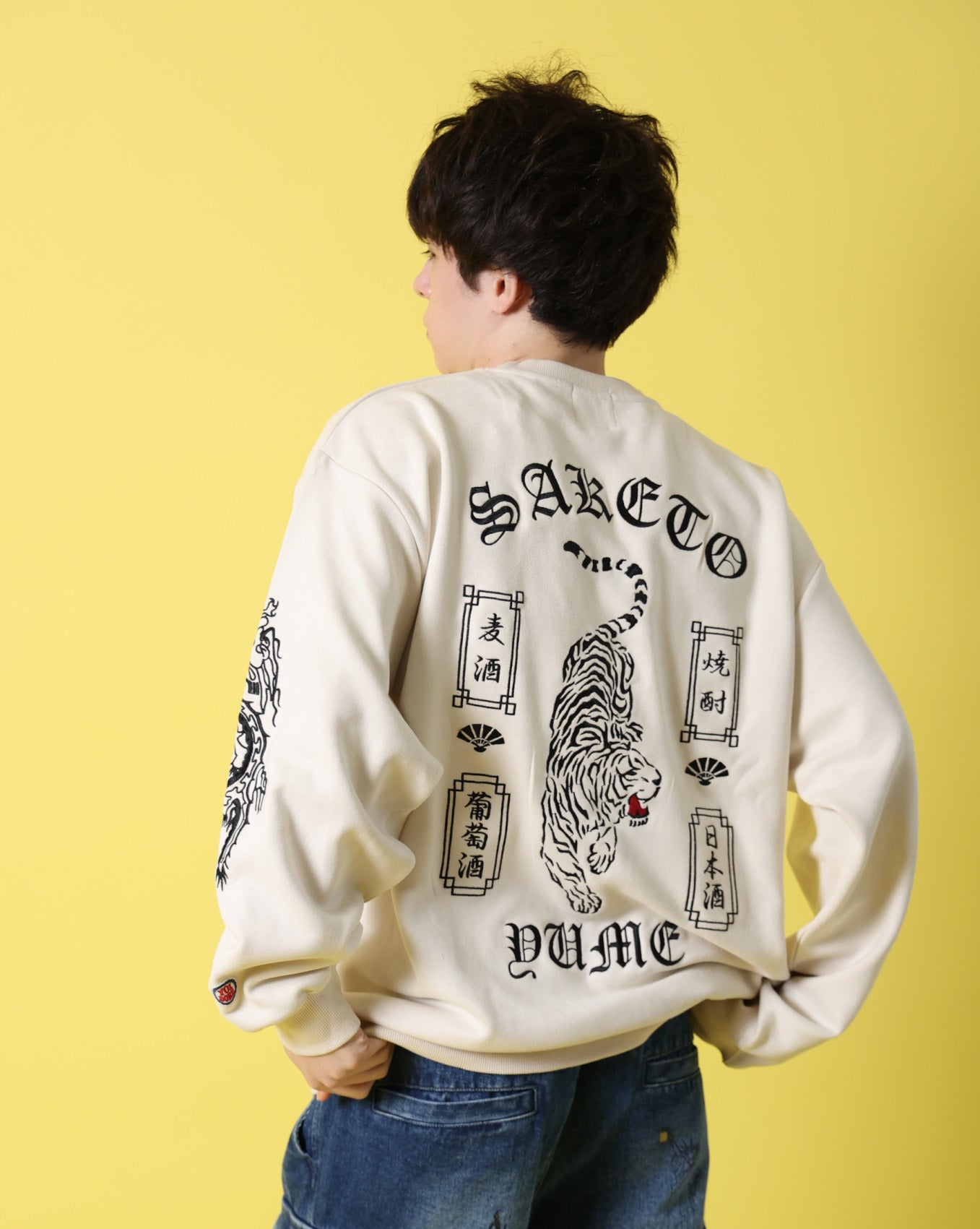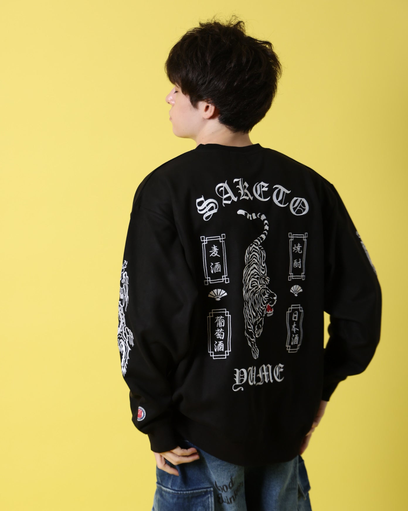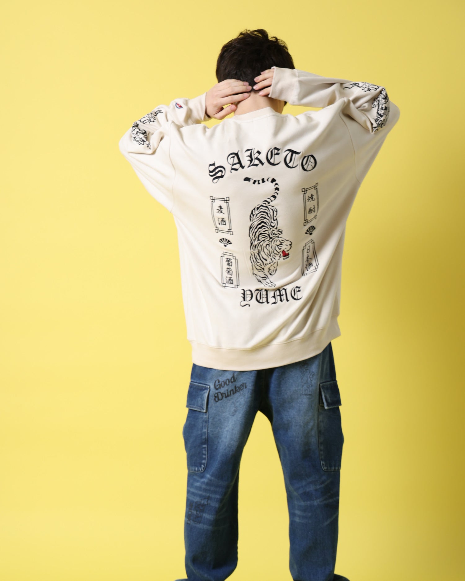 バックにはあらゆる酒を呑み尽くす勢いの荒ぶる酔虎を堂々と刺繍。