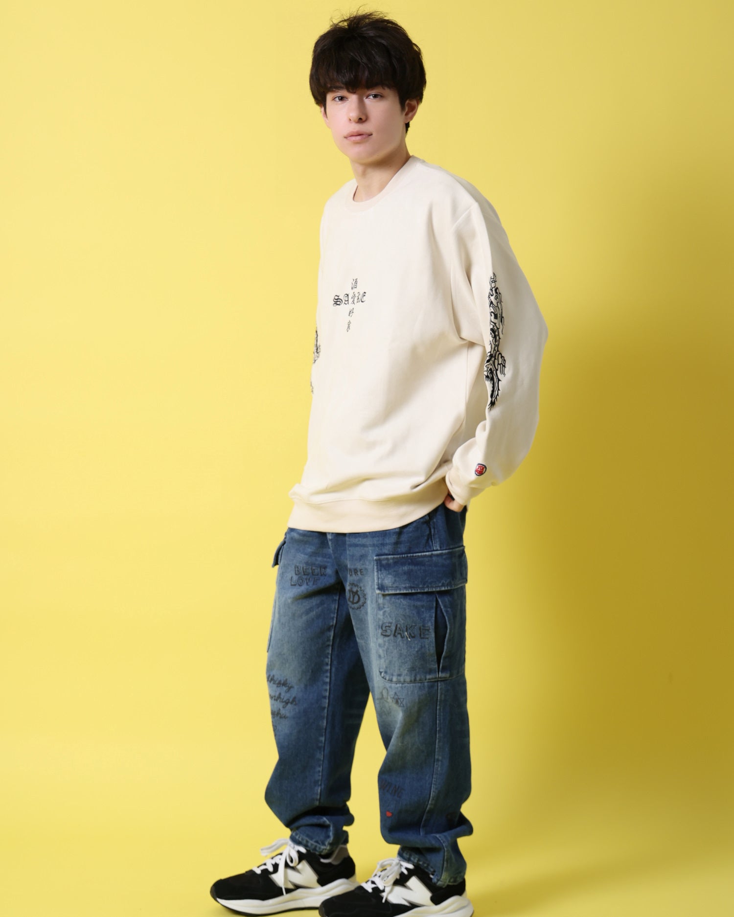 ややゆったりめのルーズなシルエットは適度なリラックス感があり、ラフな呑みシーンでのコーディネートに取り入れたいマストなアイテムです。