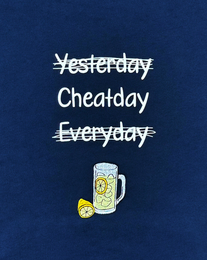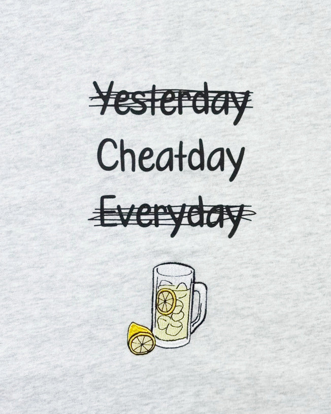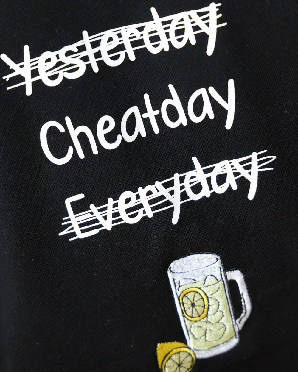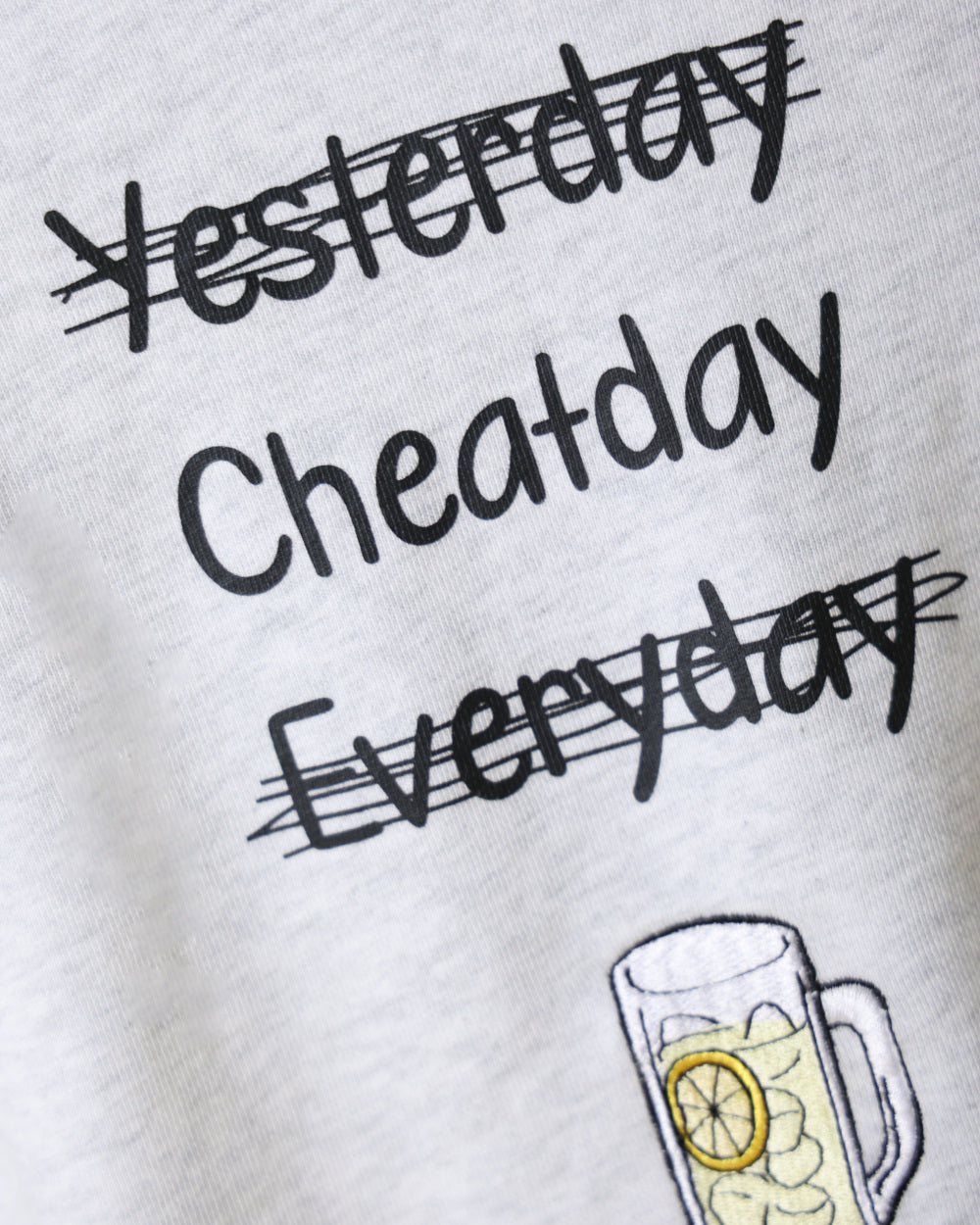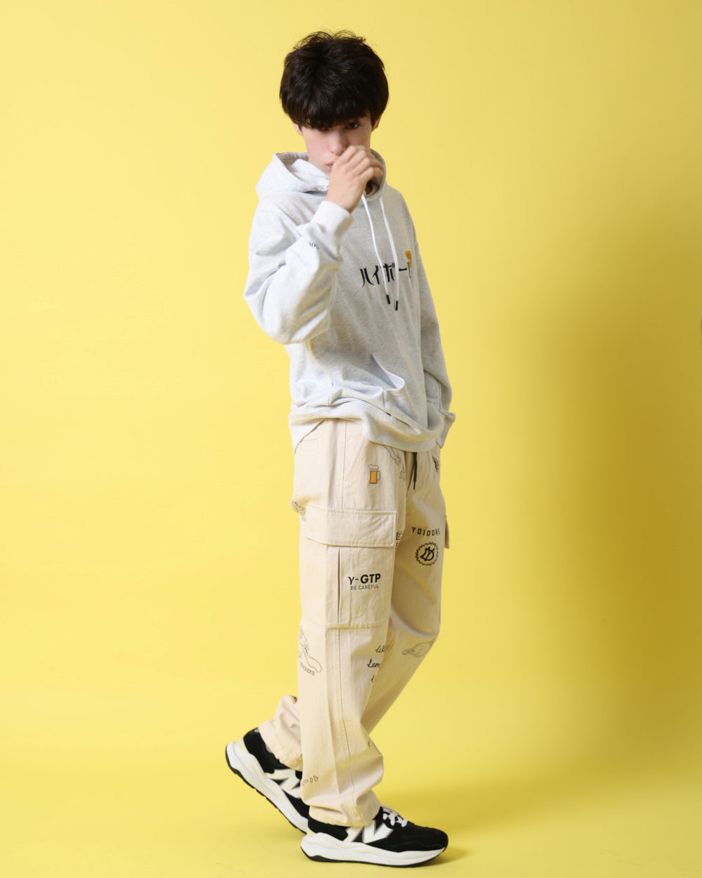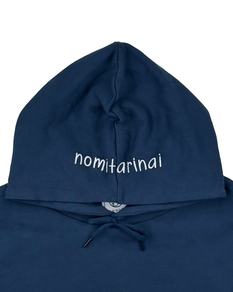 フードには「呑み足りない」ロゴ刺繍、袖にも「ごほうび」ロゴプリントを配置し、さりげないアピールにも余念なし!
