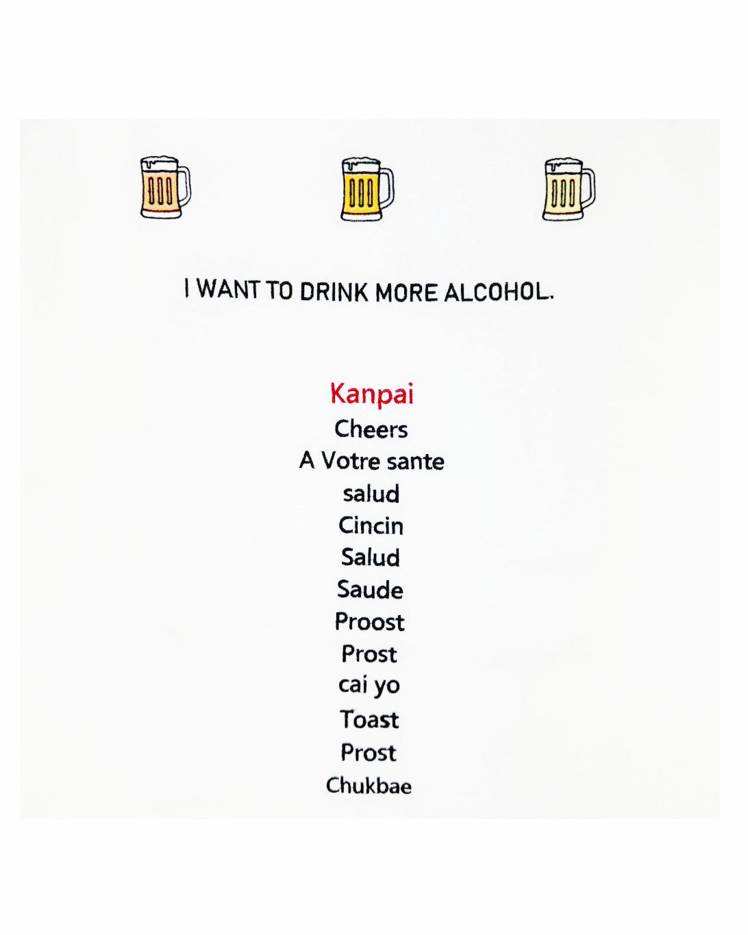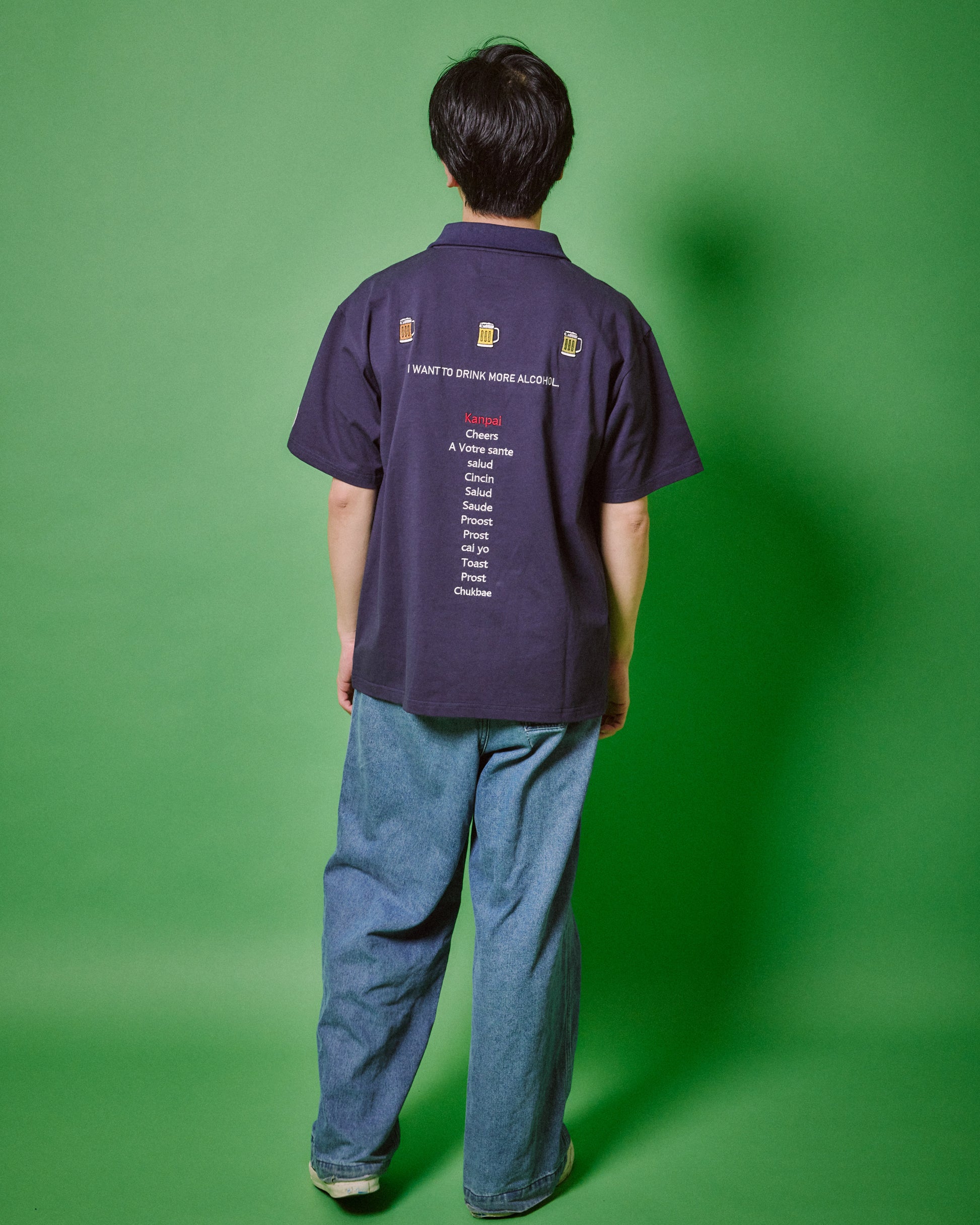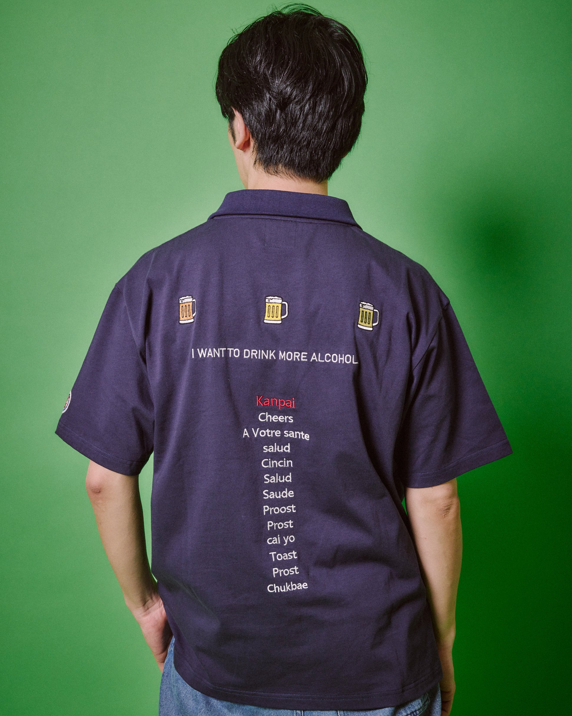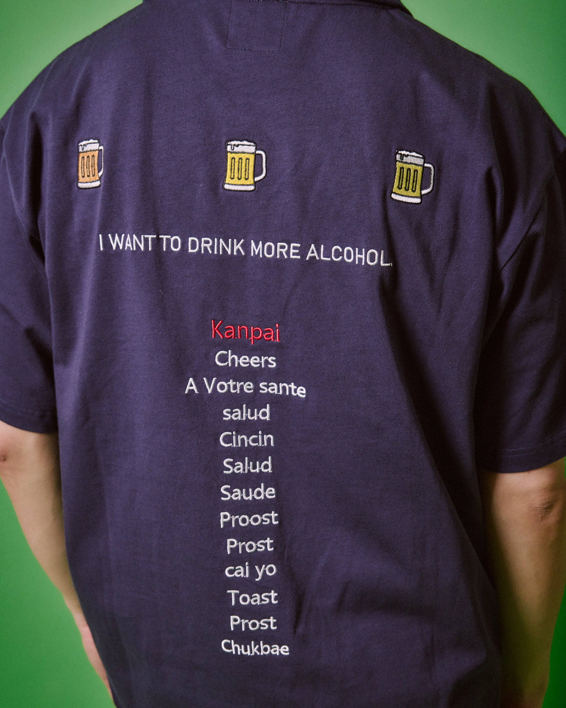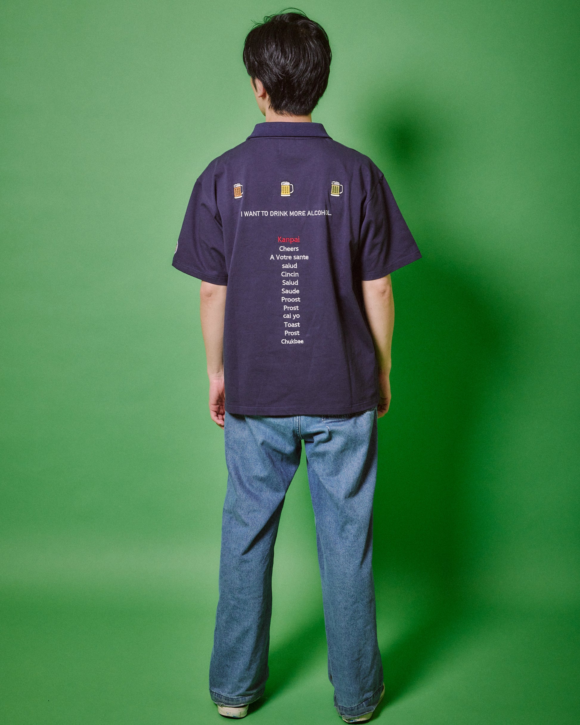 フロントはシンプルなワンポイントBEERジョッキロゴ。そしてバックには世界の乾杯がズラリを並んだワールドワイドなデザイン。YOIDORE的な表現がしっかりと仕込まれたアイテムです。