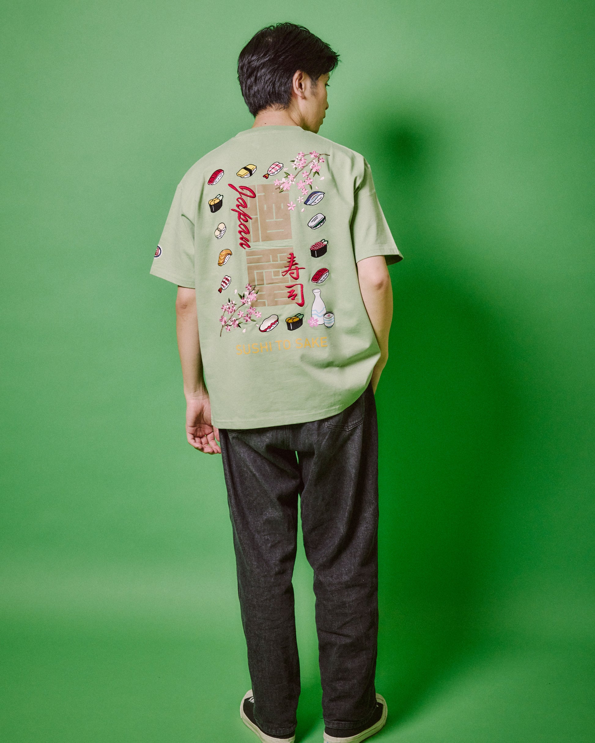 日本の心と文化を幅広く伝えるべく、インパクトも抜群な「お寿TEE」。お寿司モチーフは実はYOIDOREの超人気シリーズです。