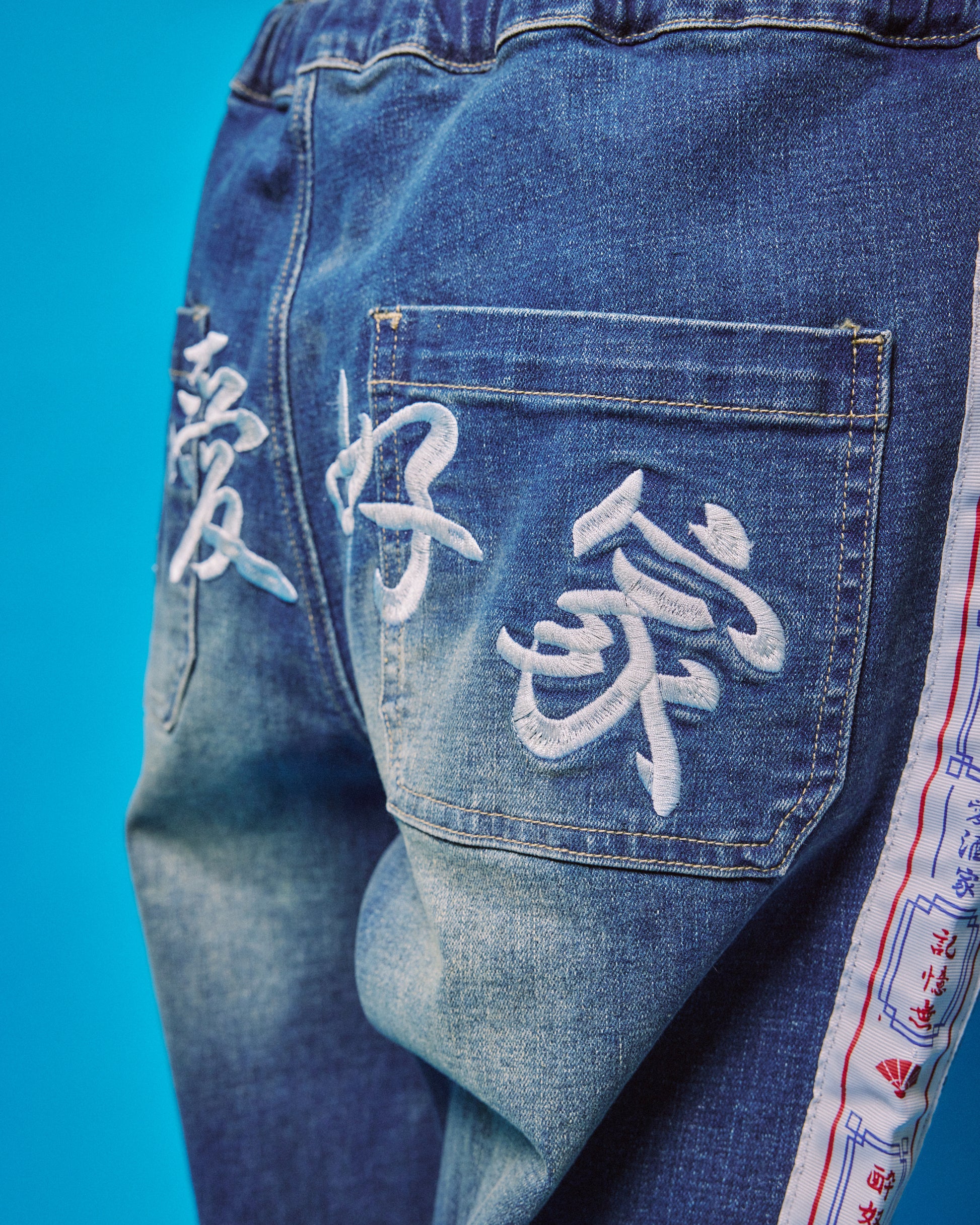12オンスの化繊デニムは重厚感がありながらもストレッチ入りでYOIDORERたちのトリッキーな動きにも対応し、リラックス感と履き心地もGOOD。