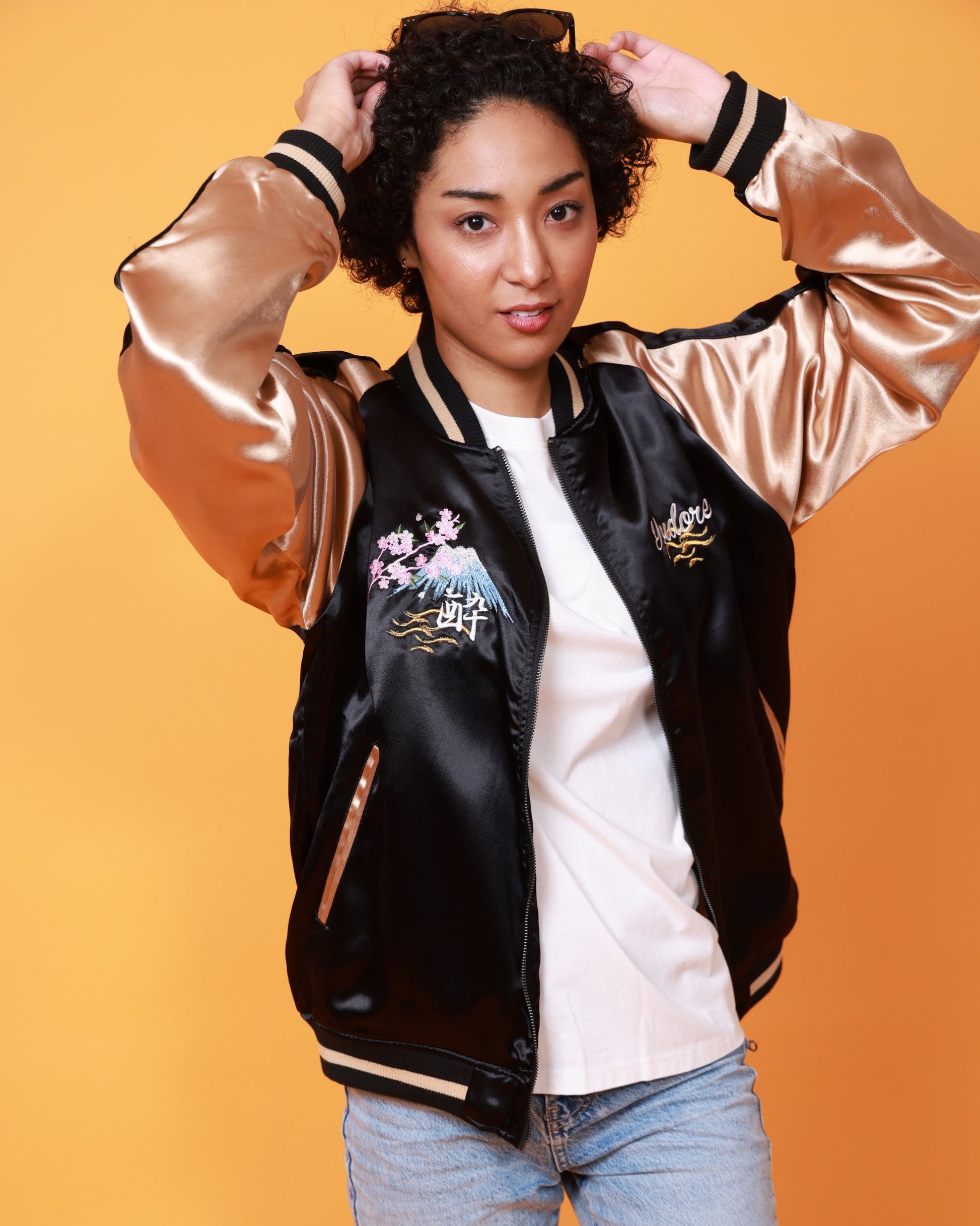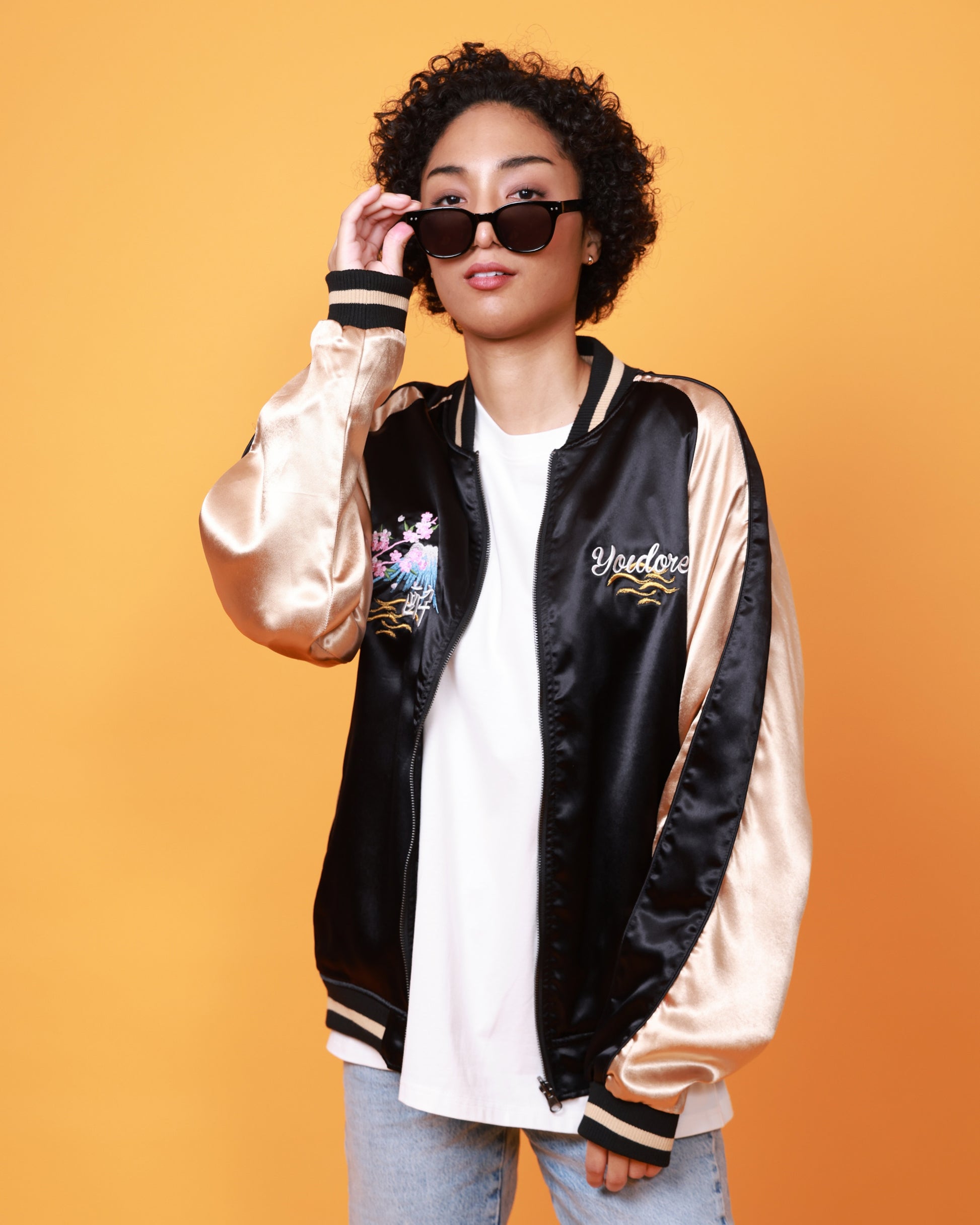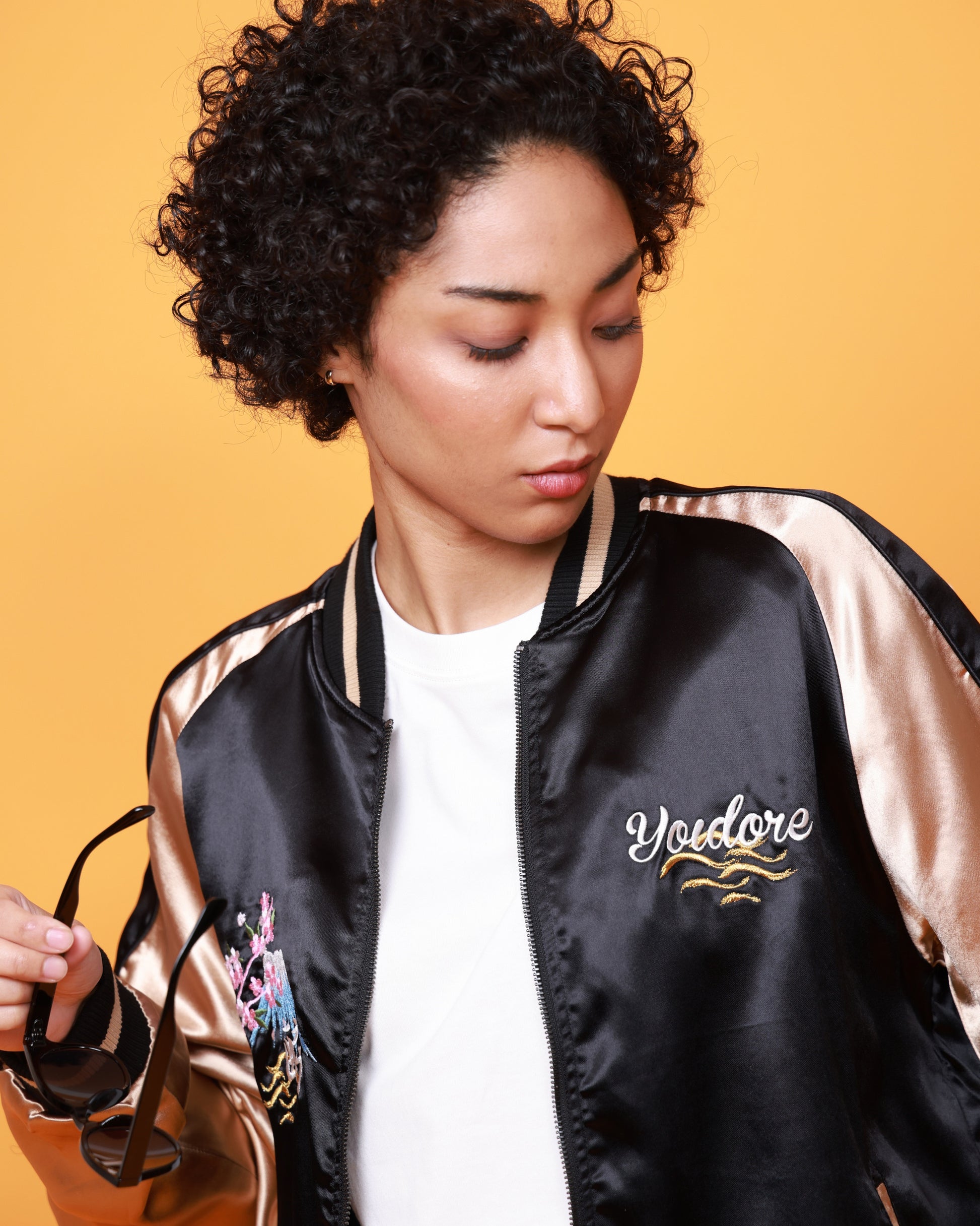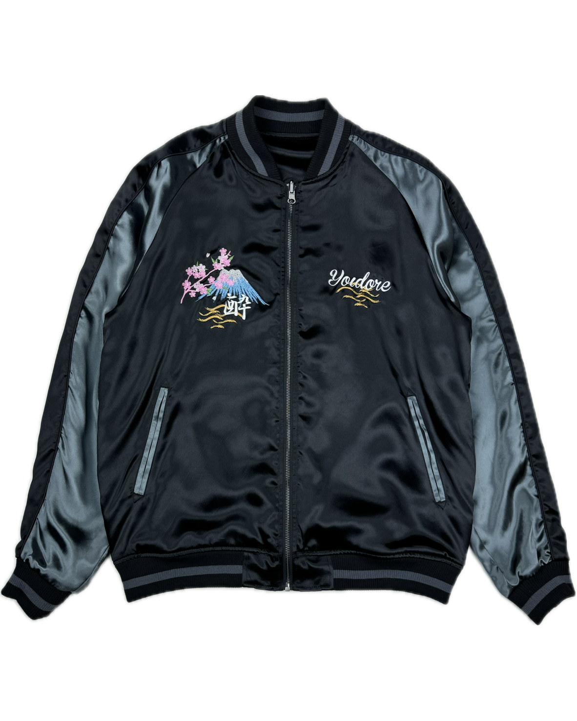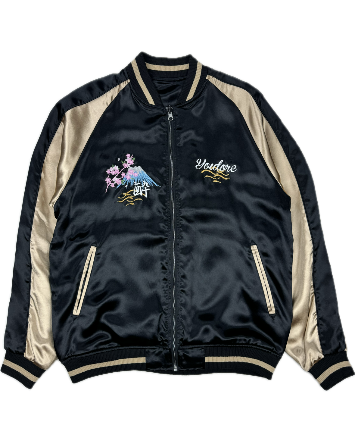 桜と牡丹と朧月、フロントには桜富士とYOIDOREのワンポイント刺繍浮世絵デザインが酔いどれ心をくすぐる、渾身のパワーアイテムです。
