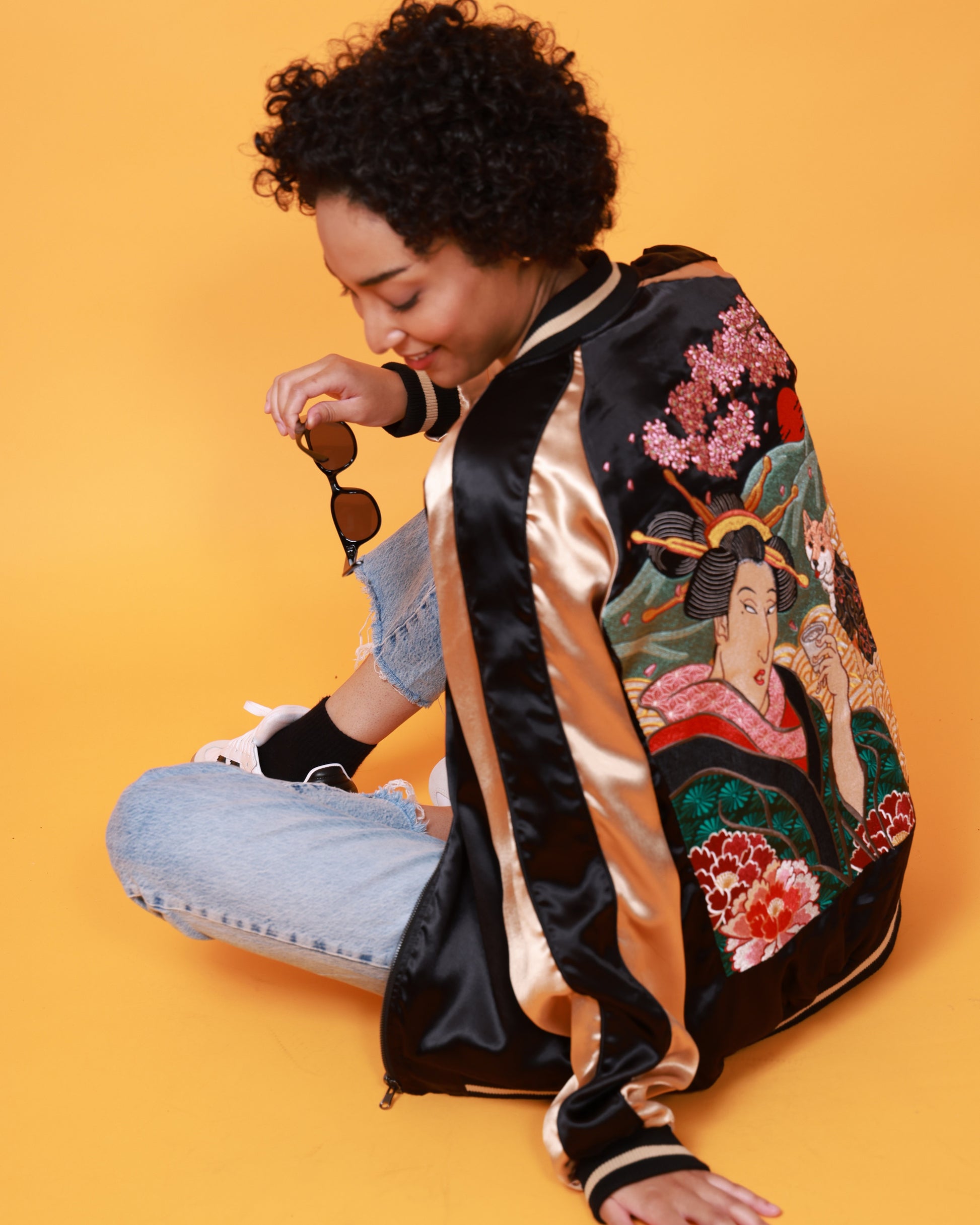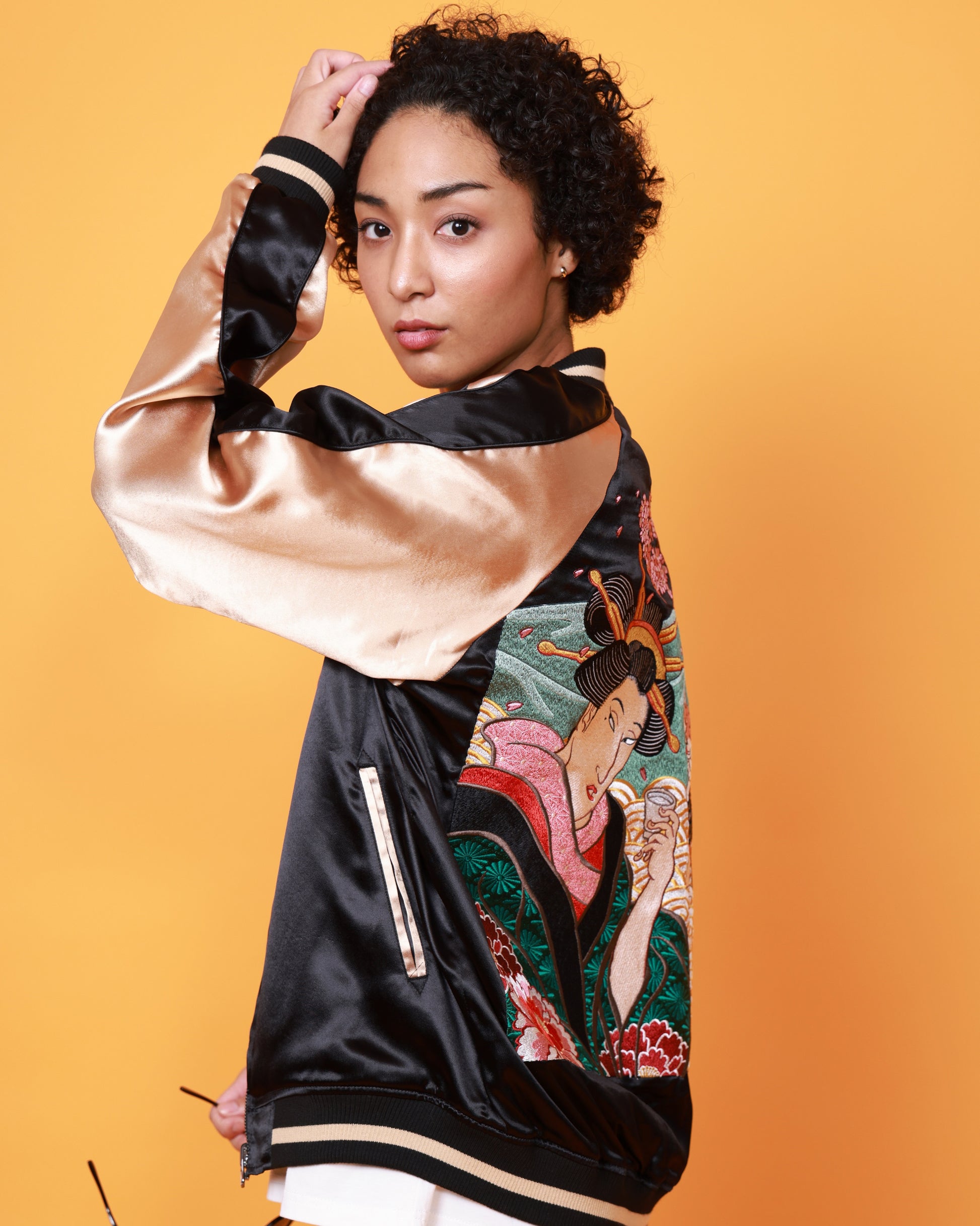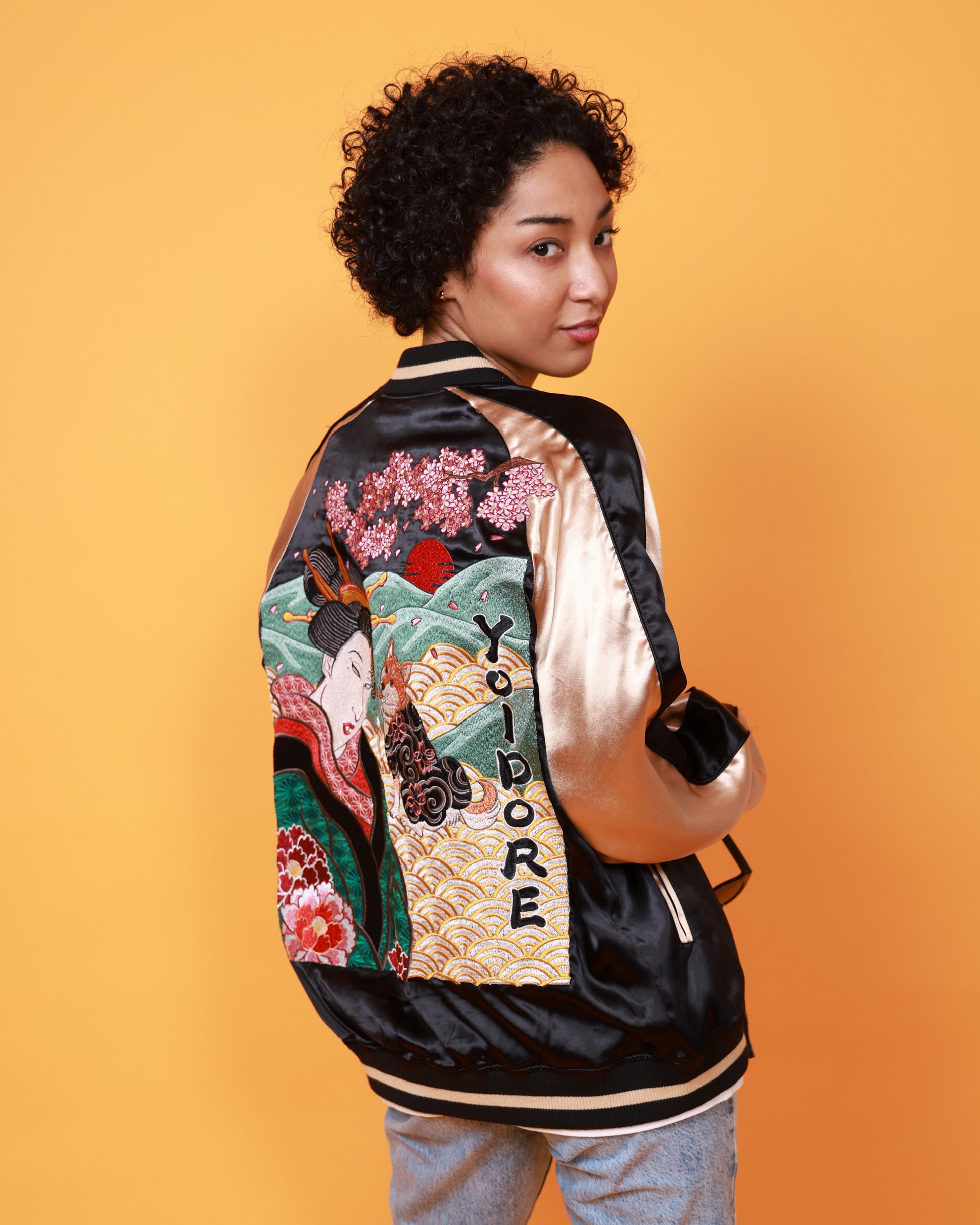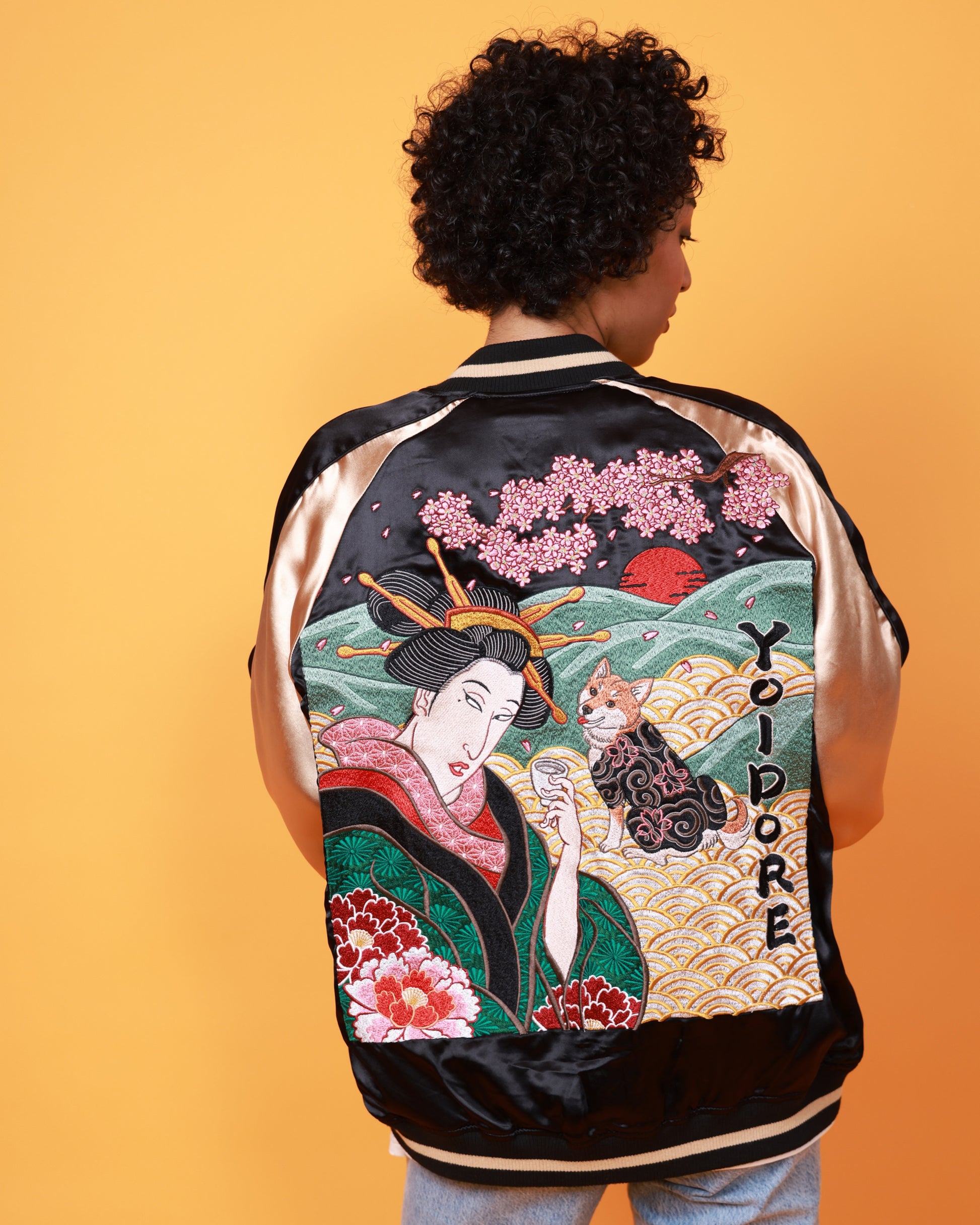 【YOIDORE】浮世絵 舞妓と犬スカジャン (834101)