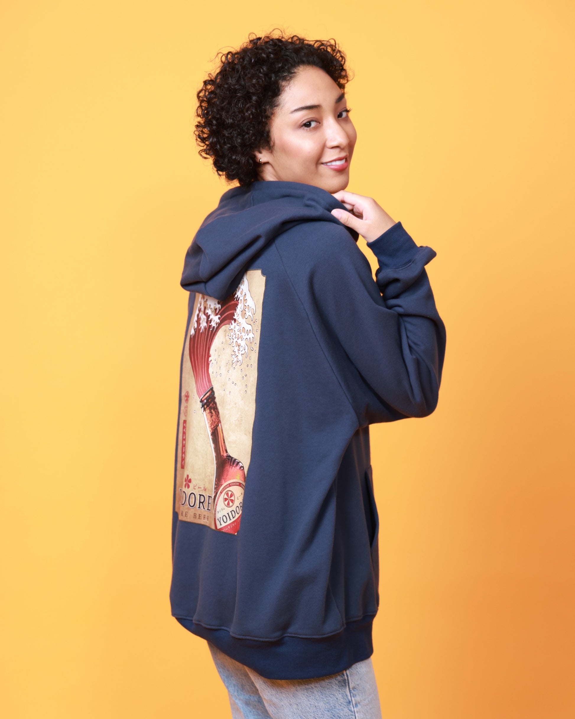 昭和の良き時代のポスターを感じさせるレトロなグラフィックがノスタルジーを誘うパーカーです。