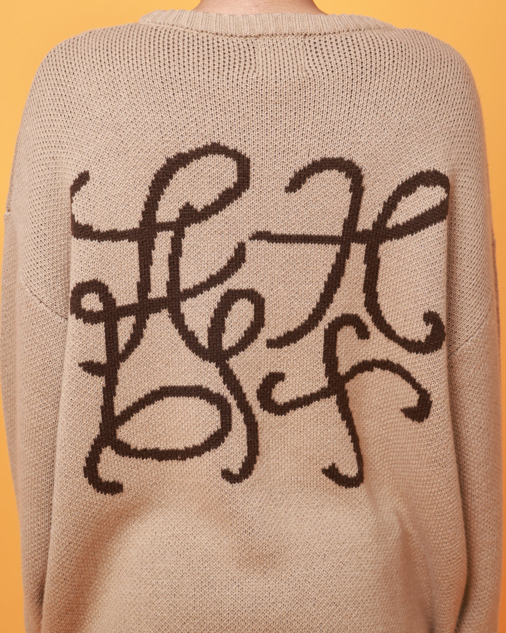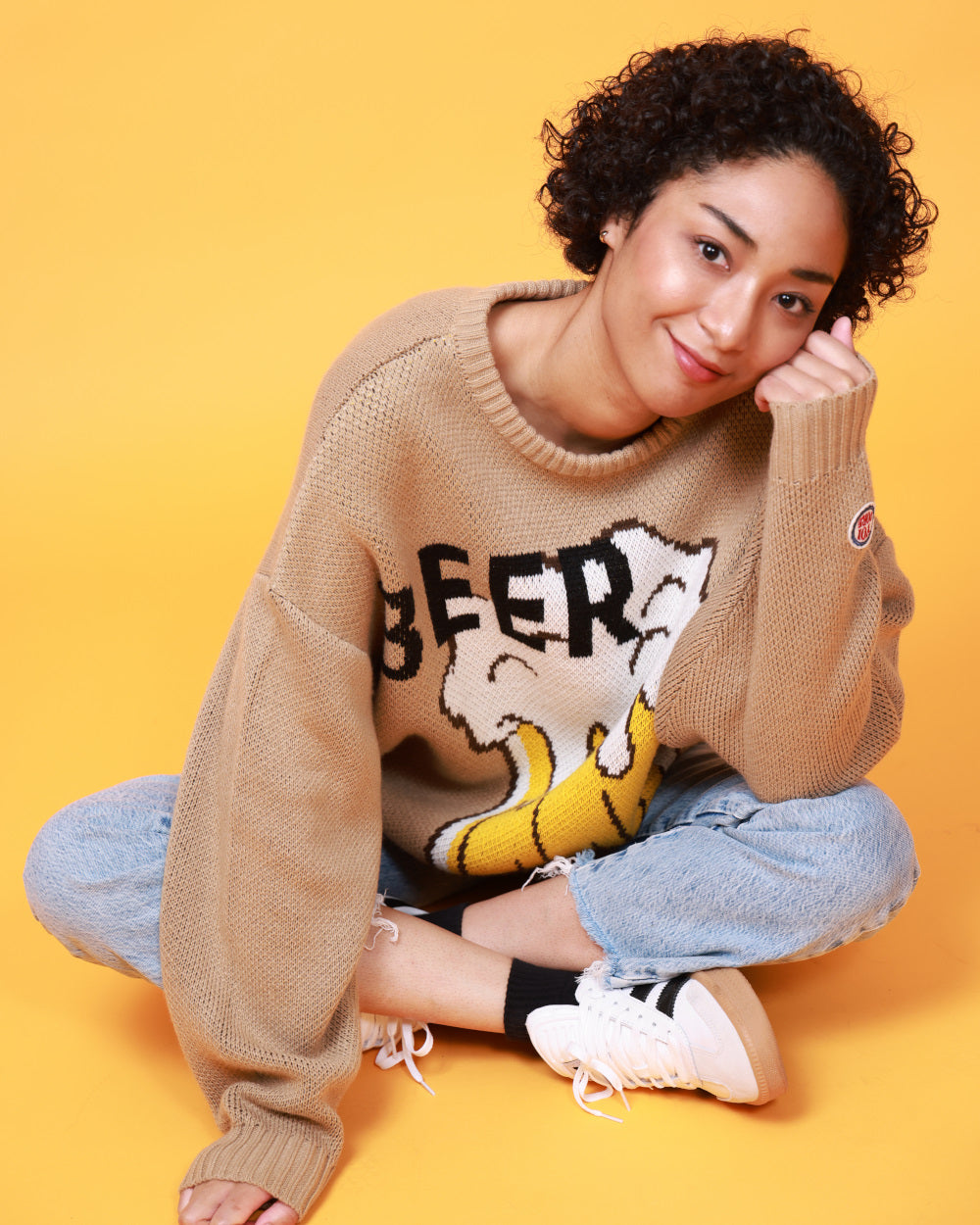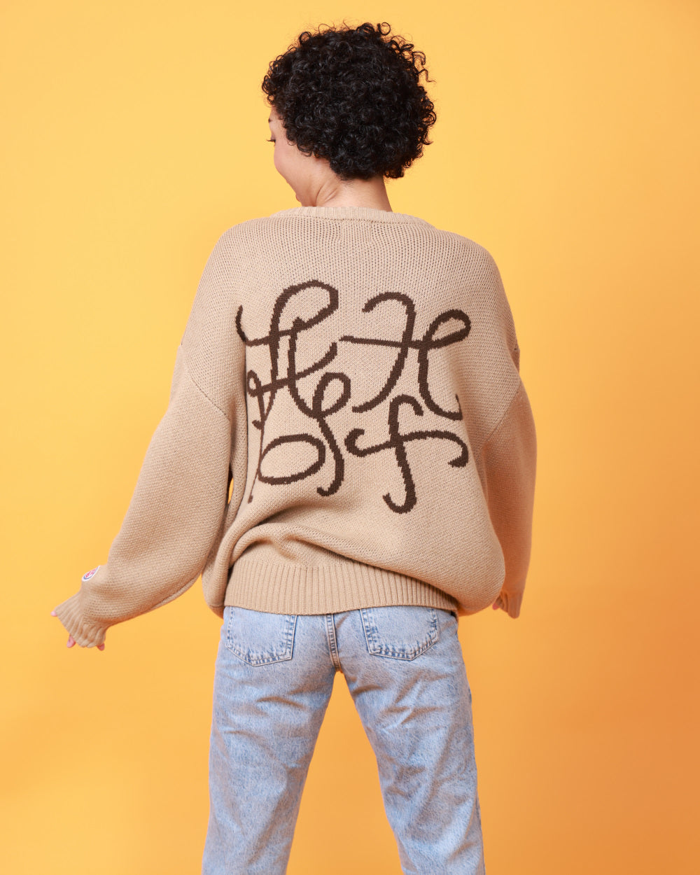 しっかり厚みのある手のアクリルニットなのでお手入れも楽々でスウェット感覚で着れちゃいますよ。