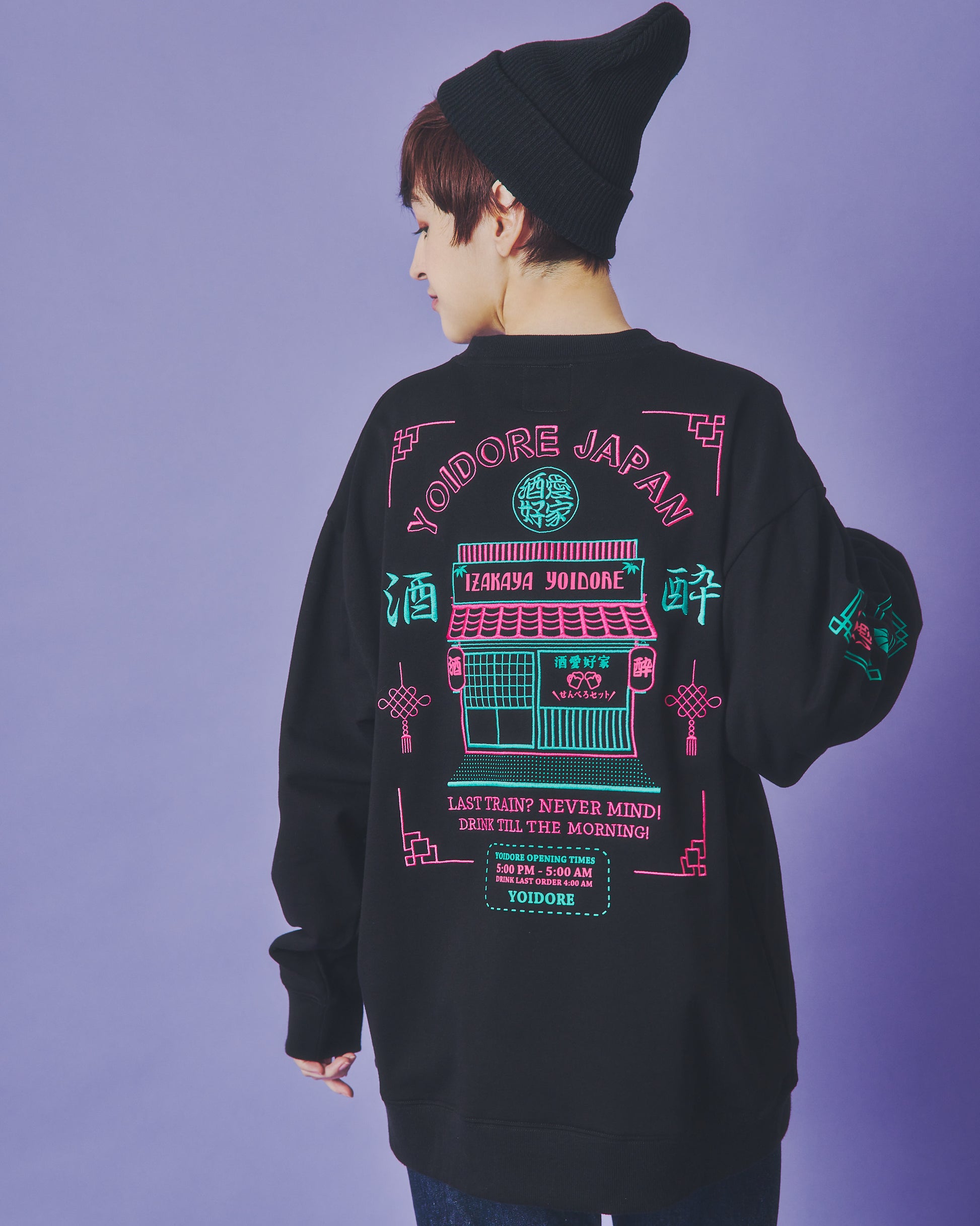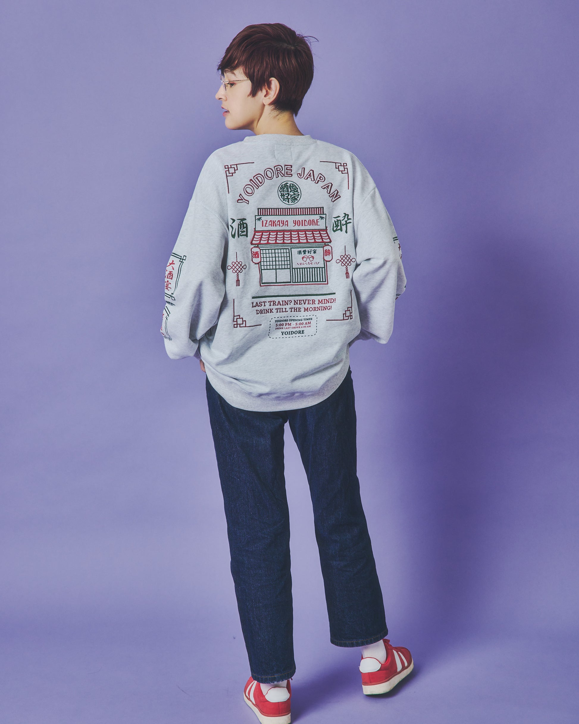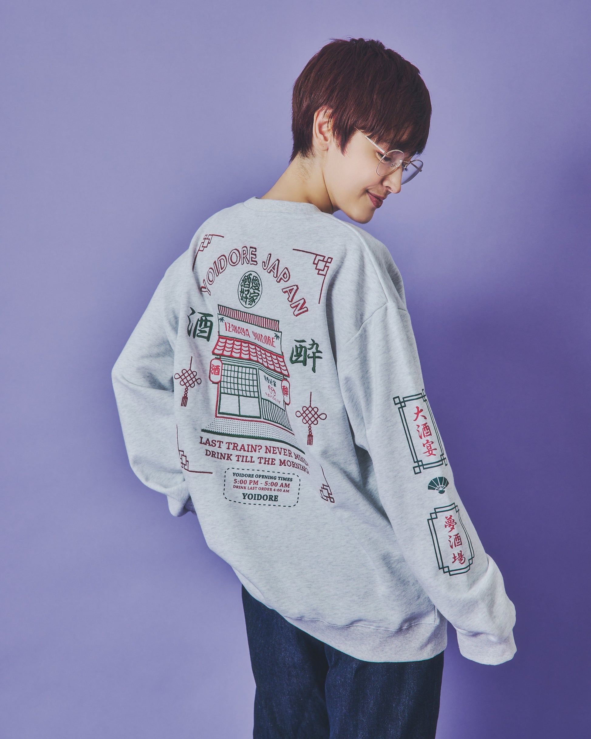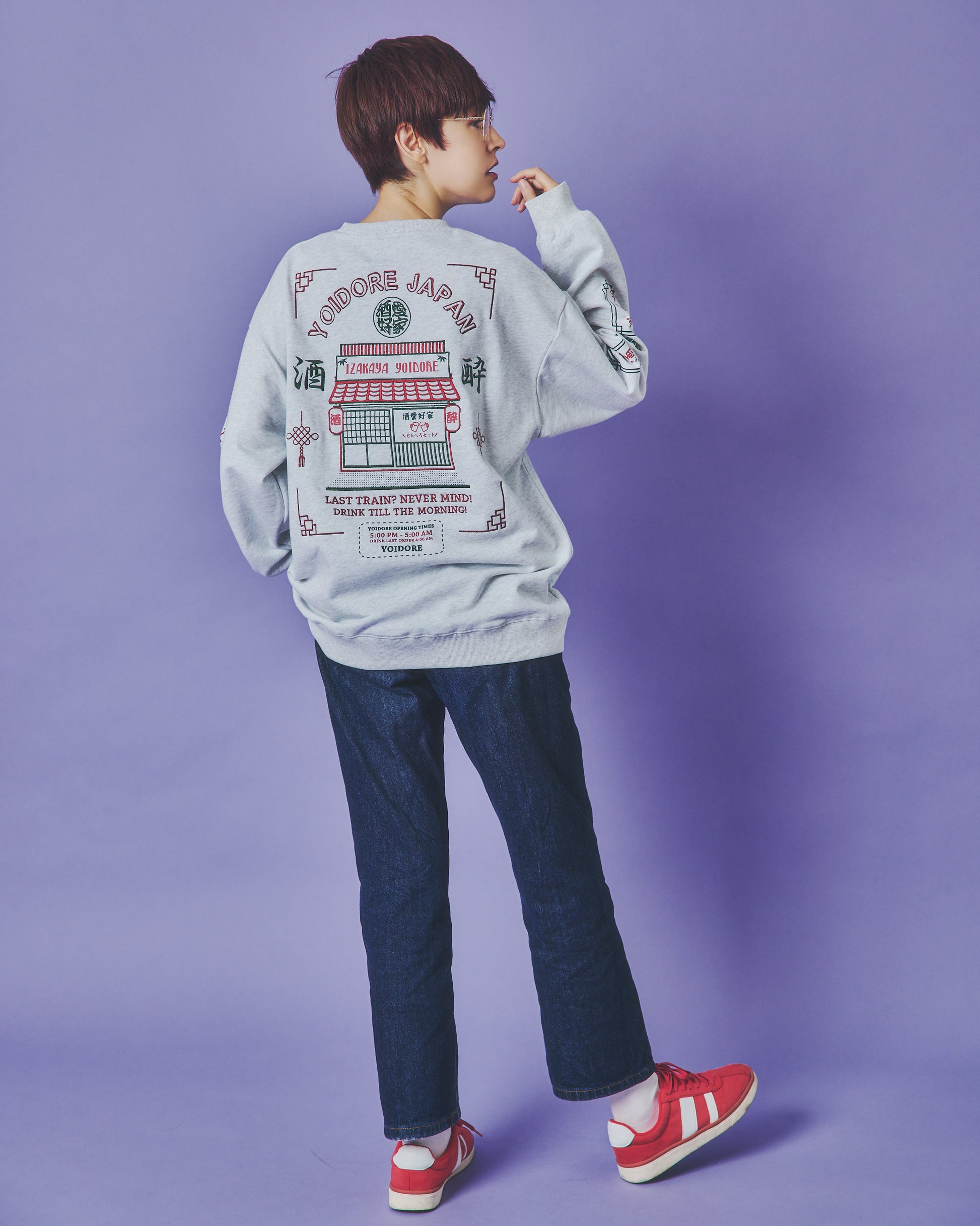 こんな居酒屋あったらいいなをデザインに落とし込んだ、YOIDOREらしいグラフィックが特徴のスウェットです。
