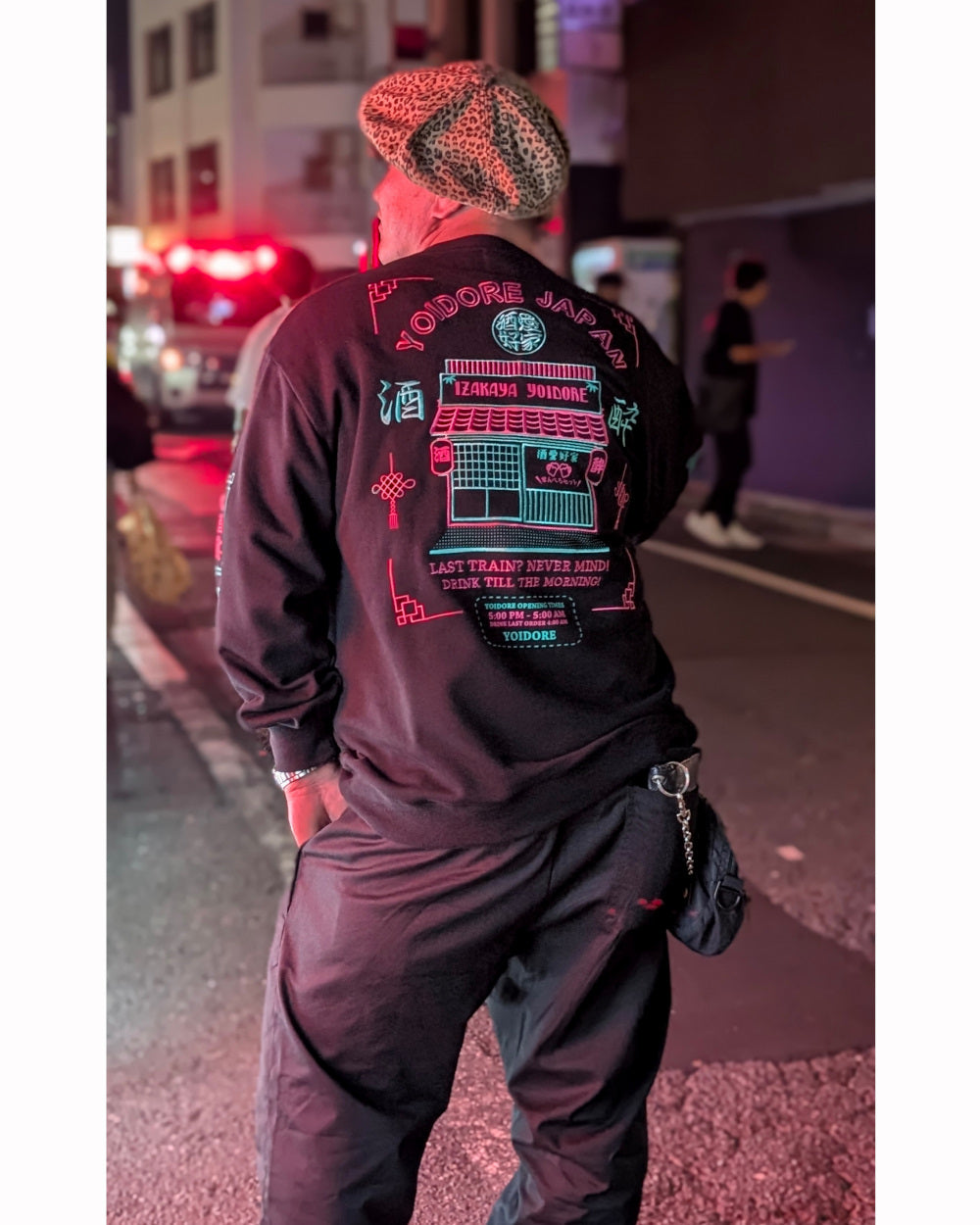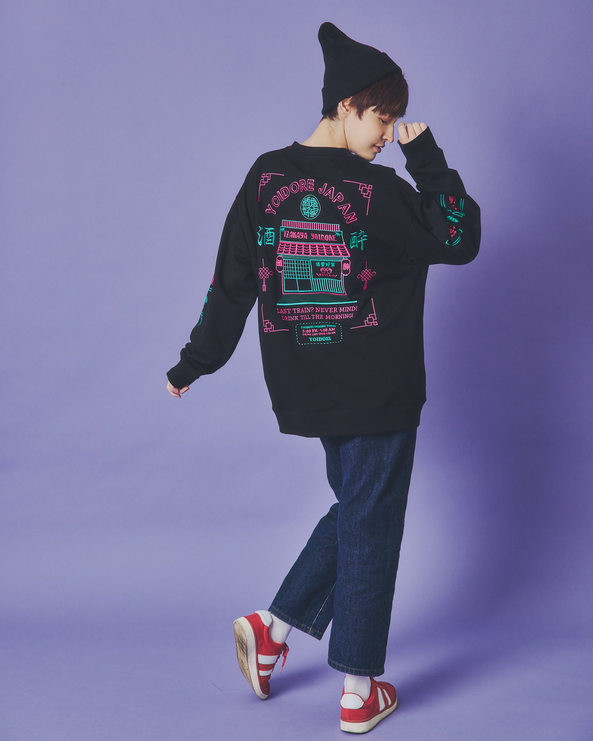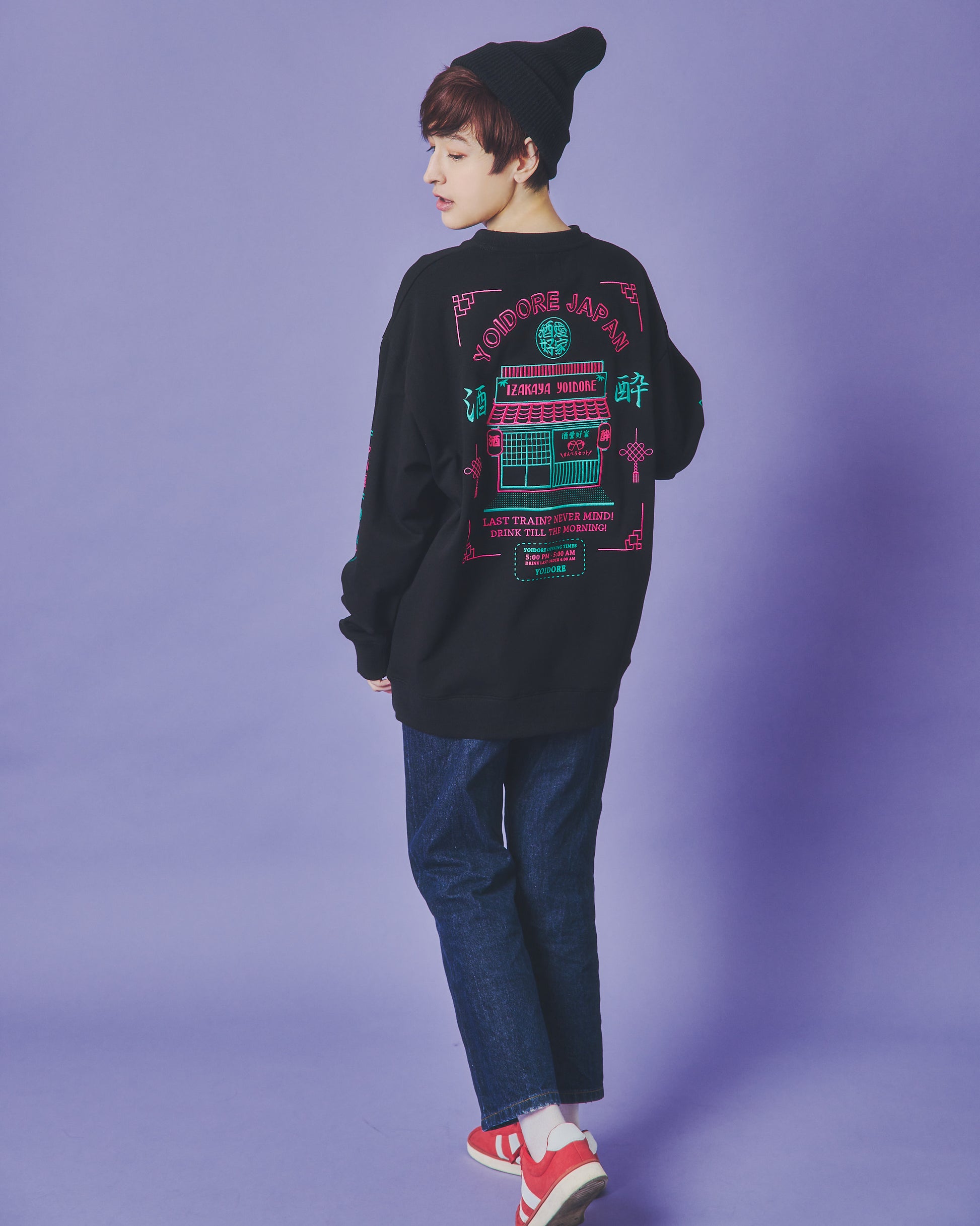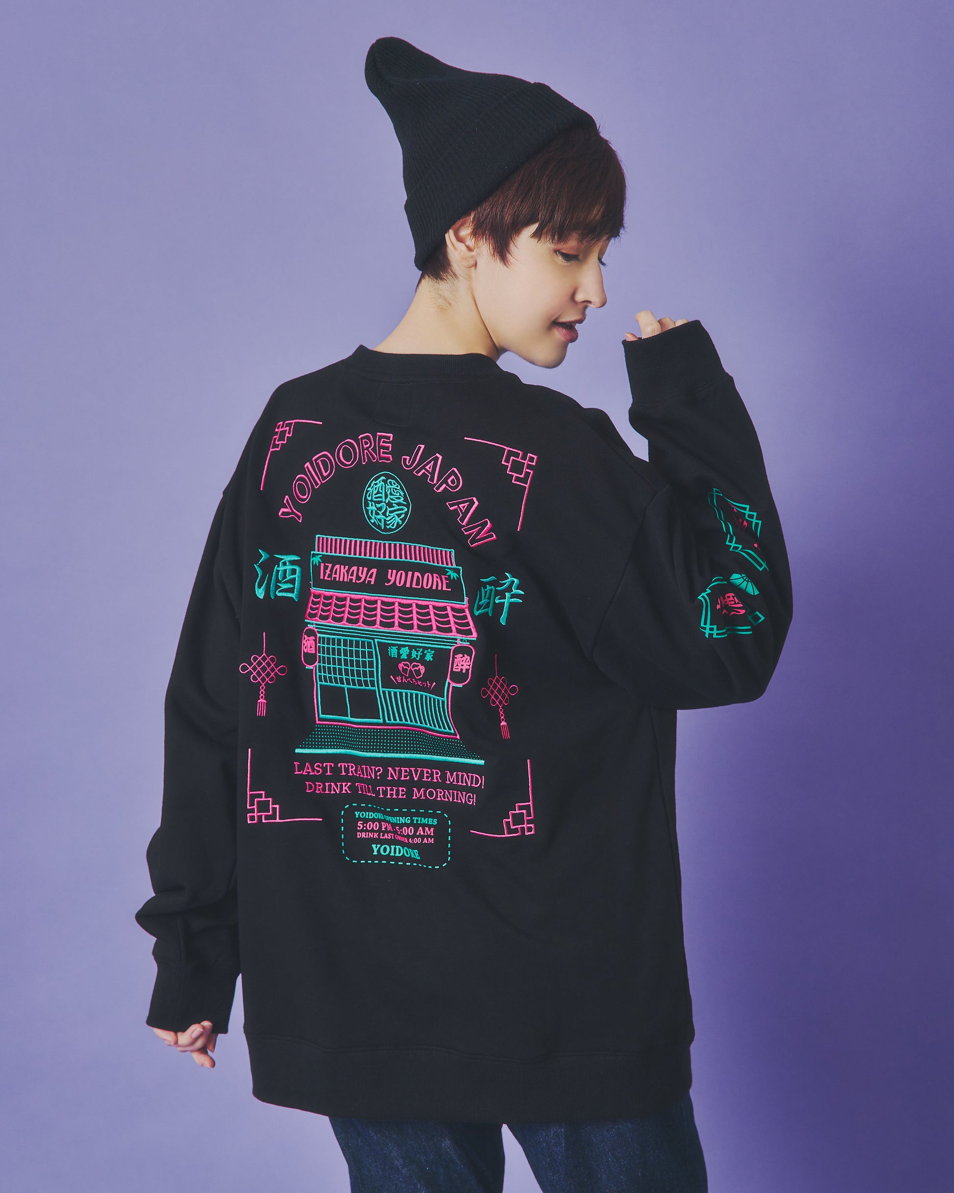 こんな居酒屋あったらいいなをデザインに落とし込んだ、YOIDOREらしいグラフィックが特徴のスウェットです。