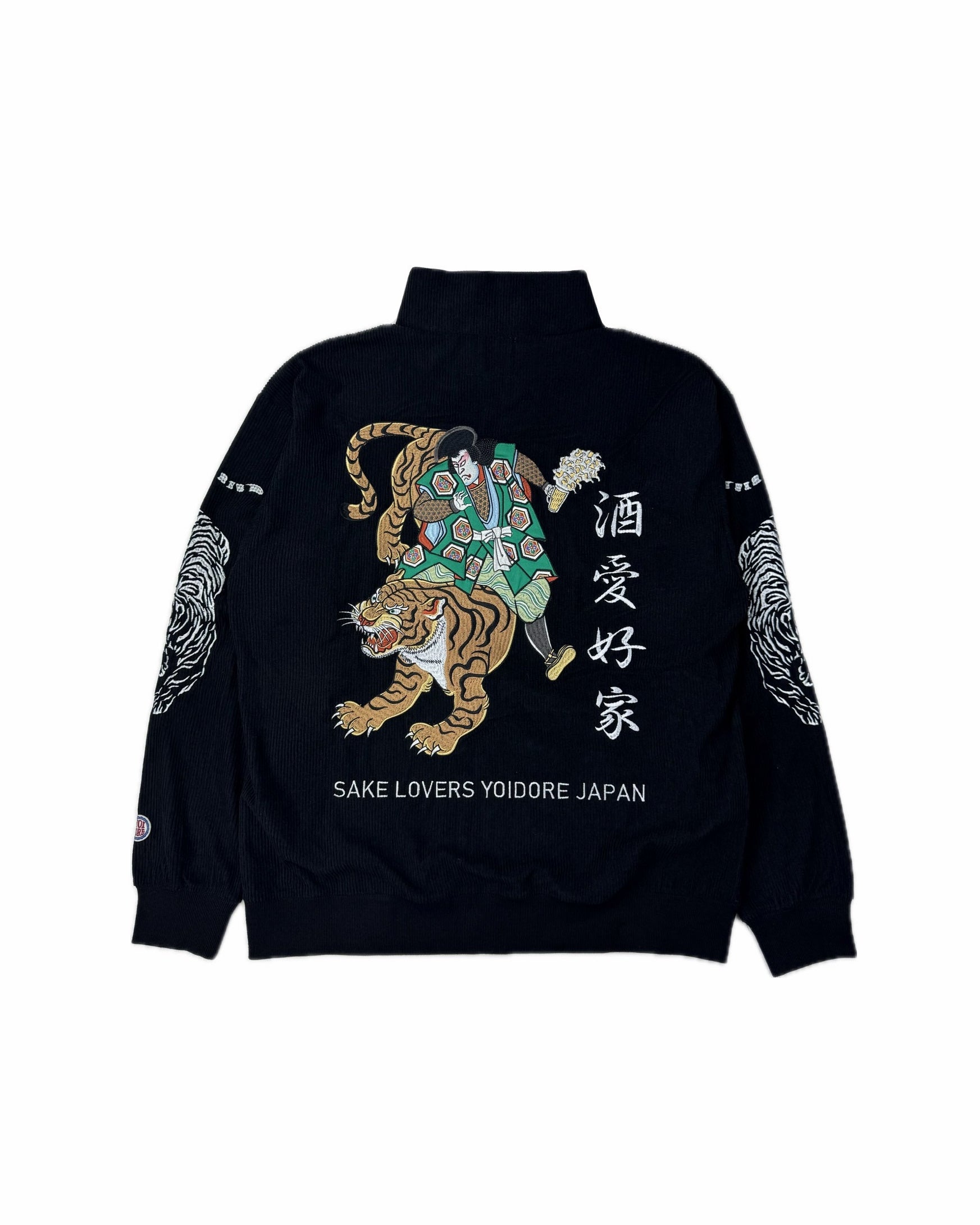 両袖の「酔虎」刺繍、バックの酔虎にまたがる歌舞伎刺繍がYOIDORE心を刺激する激渋アウターです。