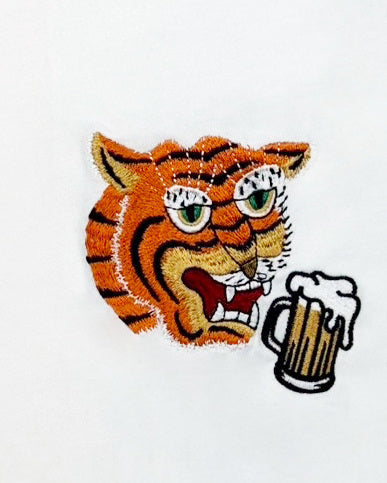 フロントは夏っぽくビールをあおる酔虎刺繍と酔いロゴプリントでさりげなくYOIDOREをアピール!