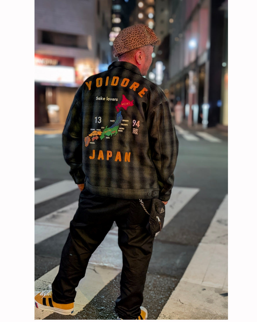 YOIDOREの定番デザイン「JAPAN スーベニア」モチーフをオール刺繍で配置した激シブなアウターが登場です。
