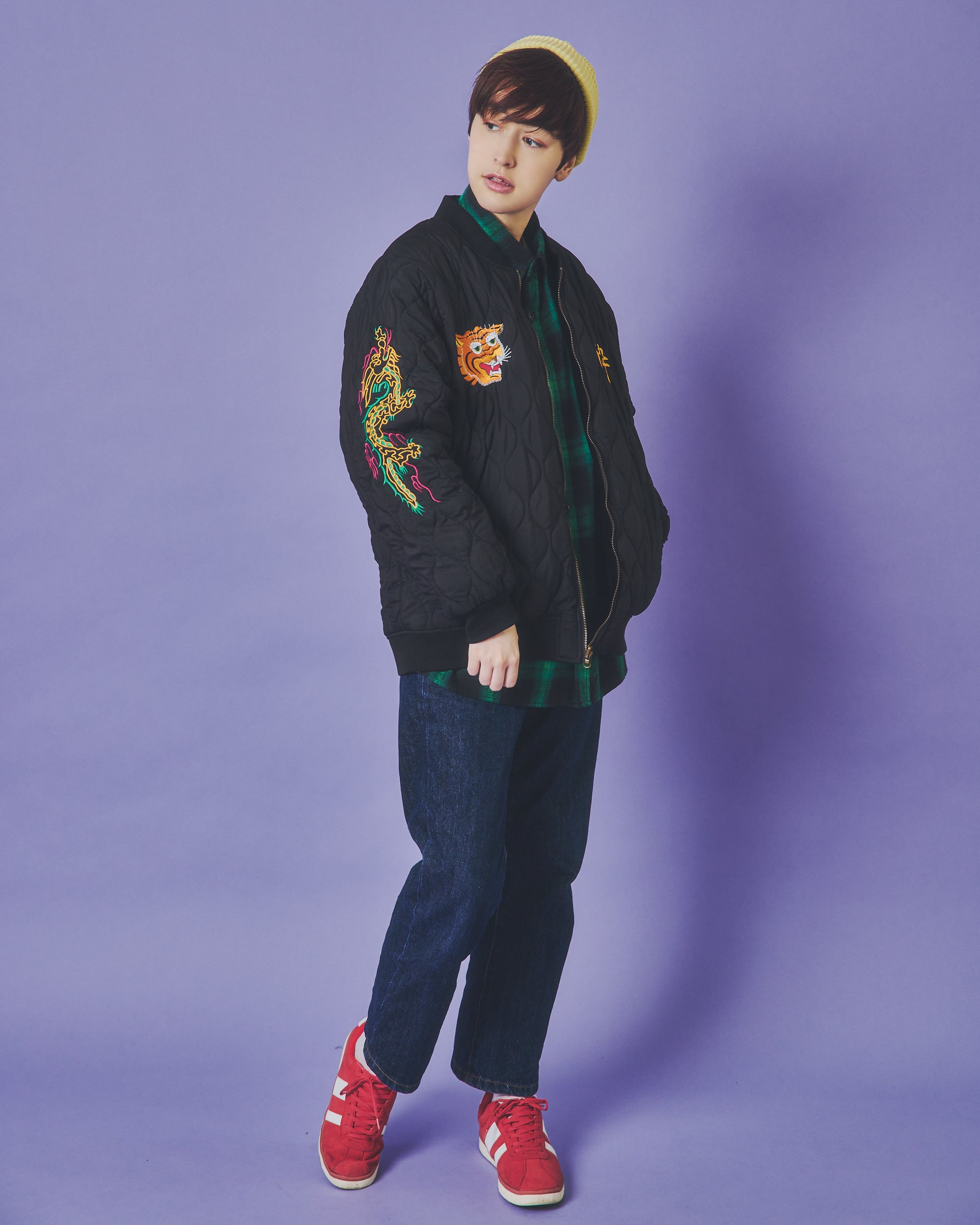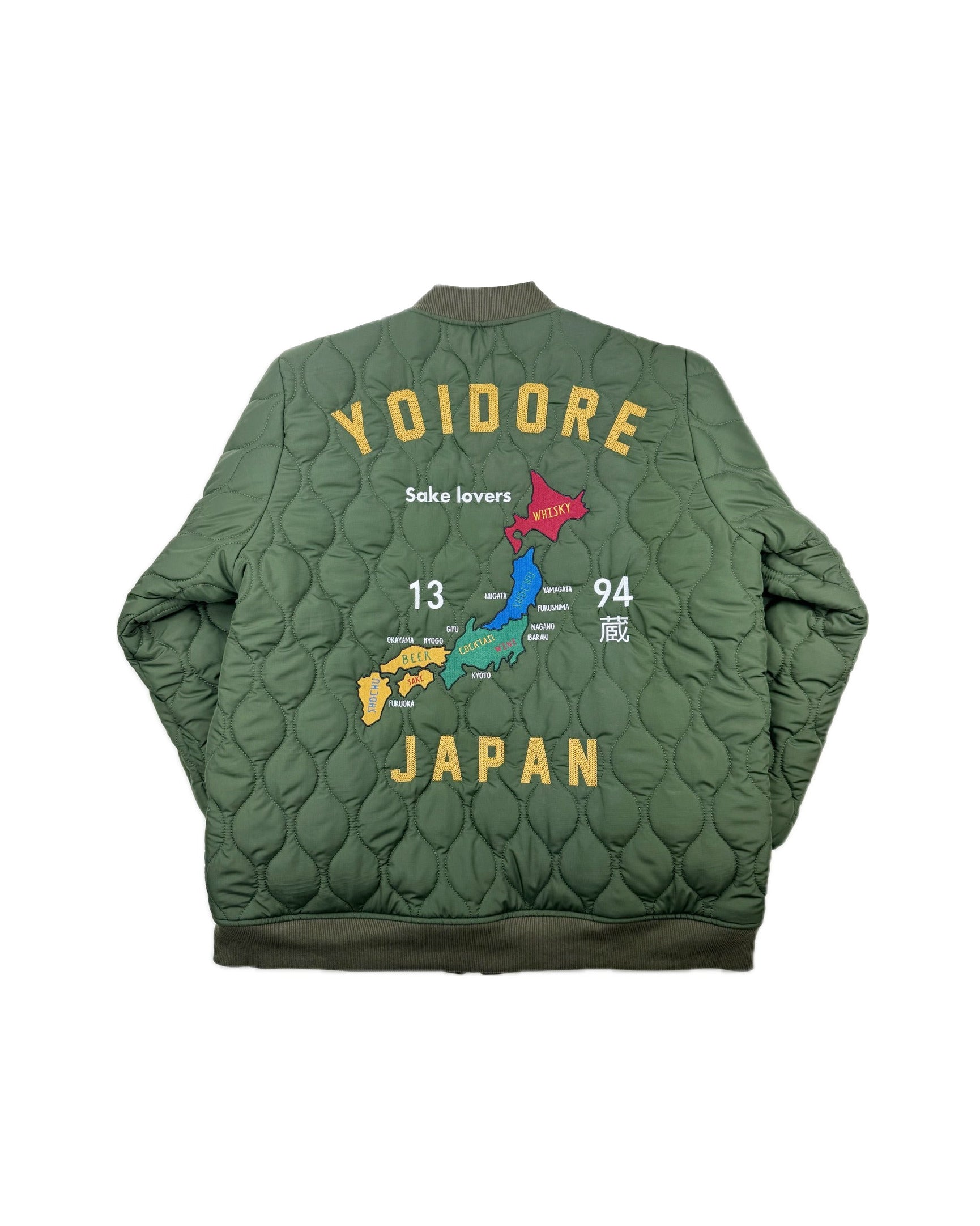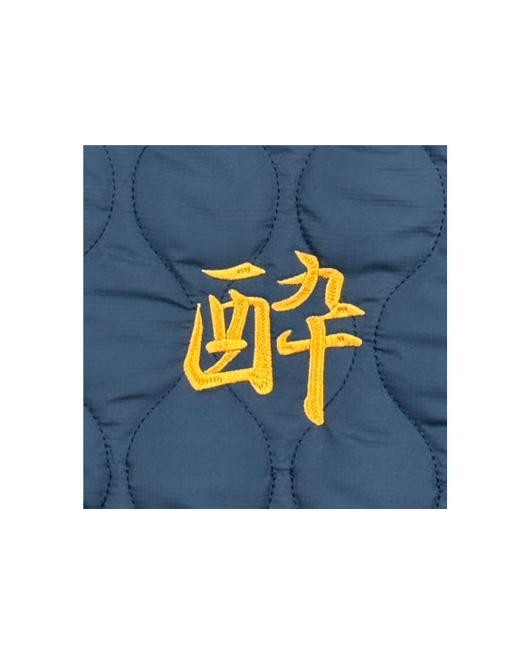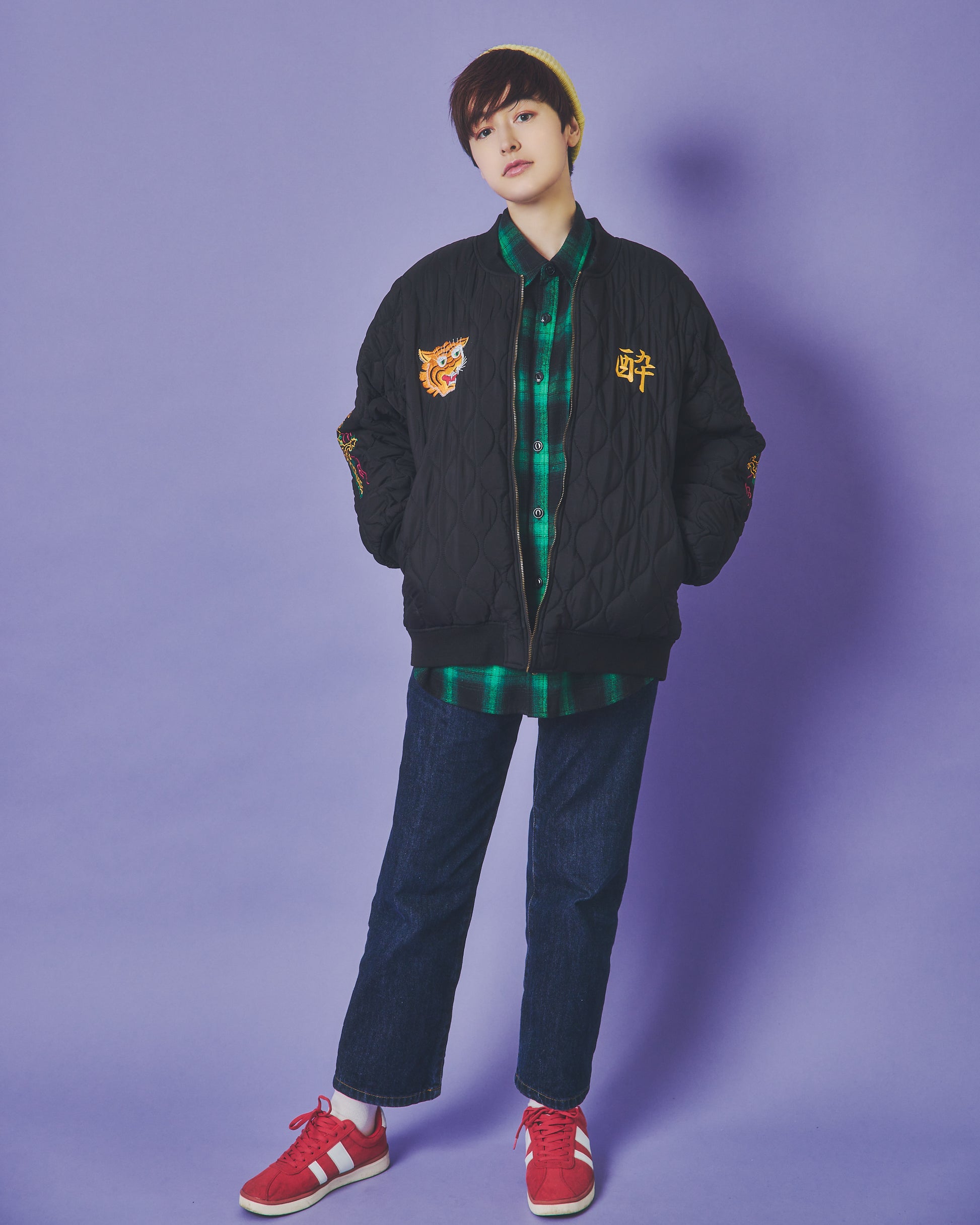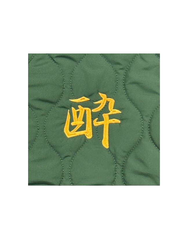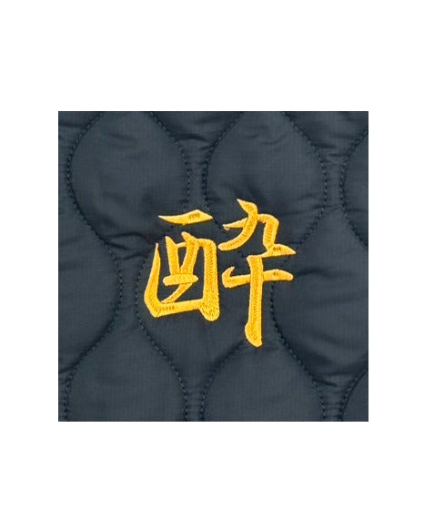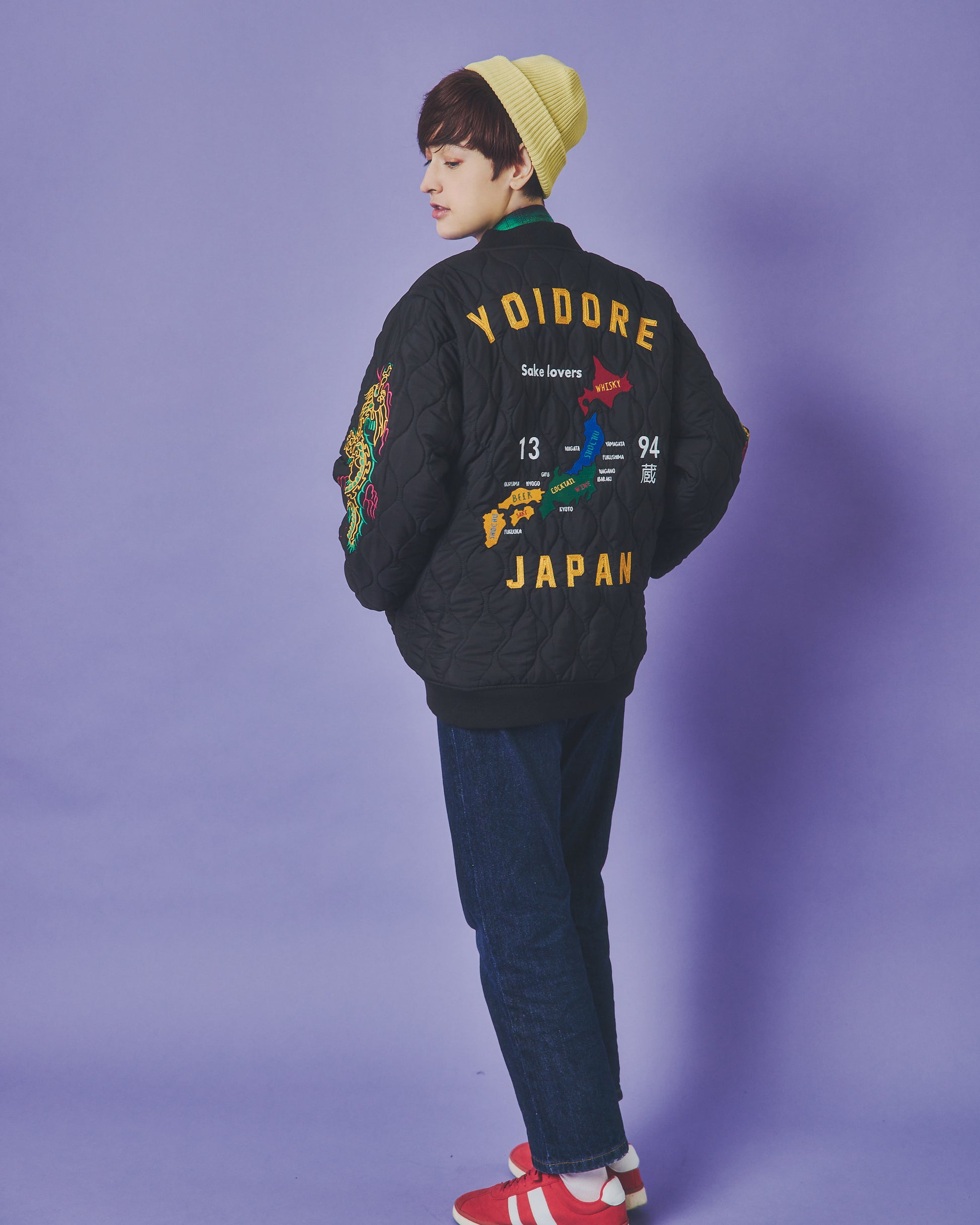 暖かみのあるウェーブキルト面はYOIDOREの代表的モチーフ「スーベニア」デザイン。胸には酔虎、袖には酔龍を刺繍であしらい、アグレッシブさを強調したミリタリーなアウターです。
