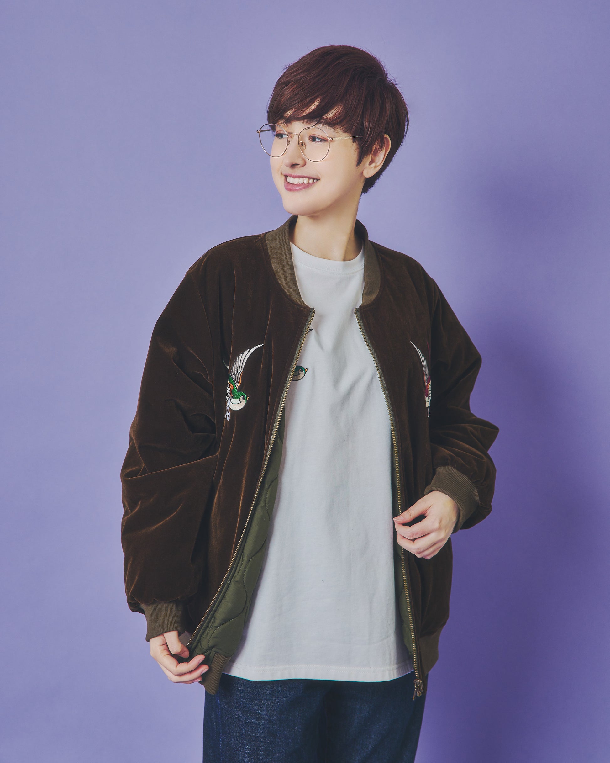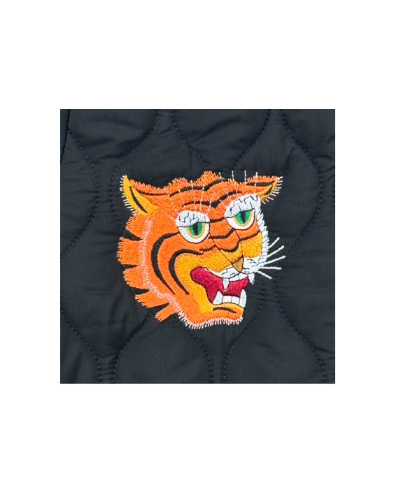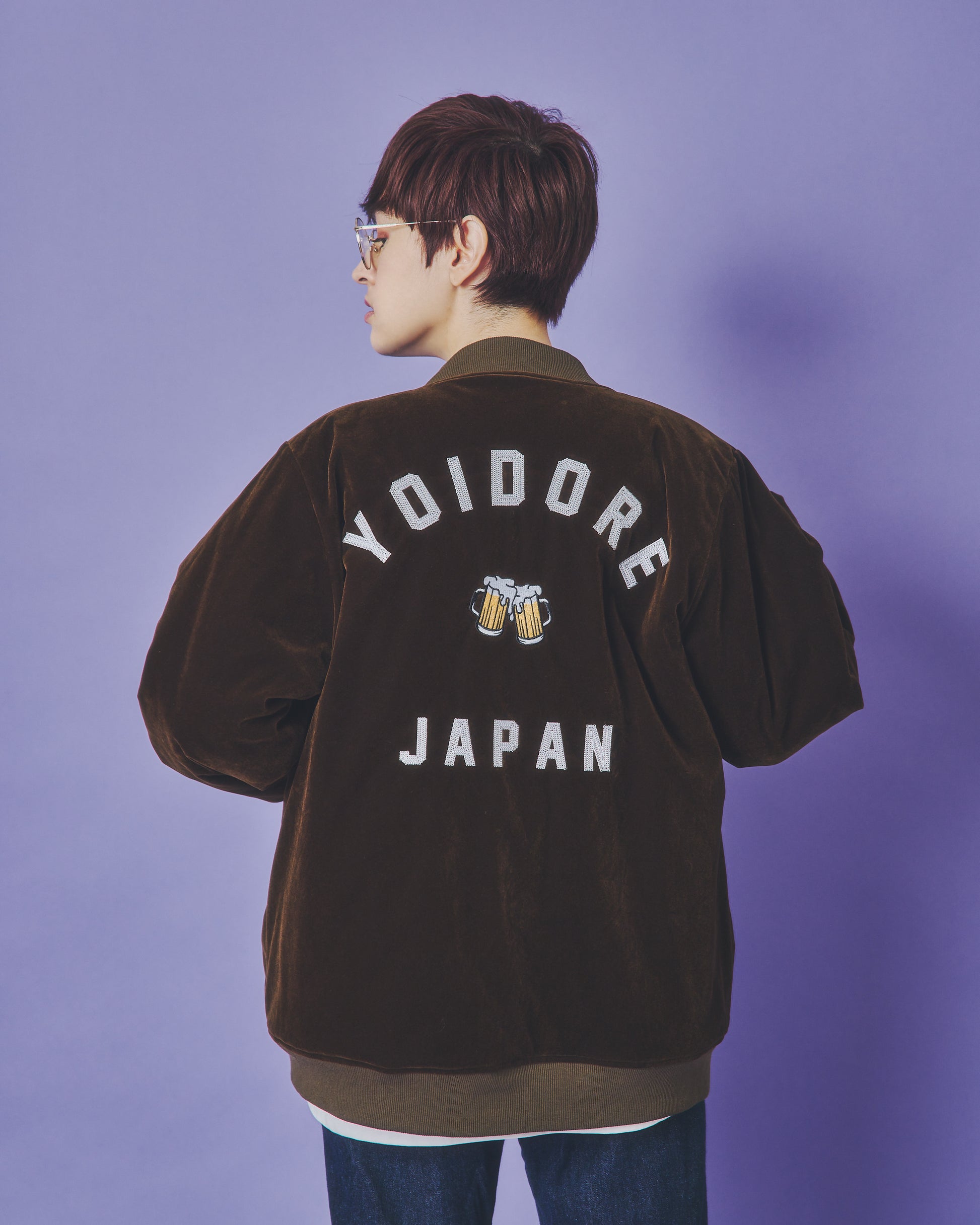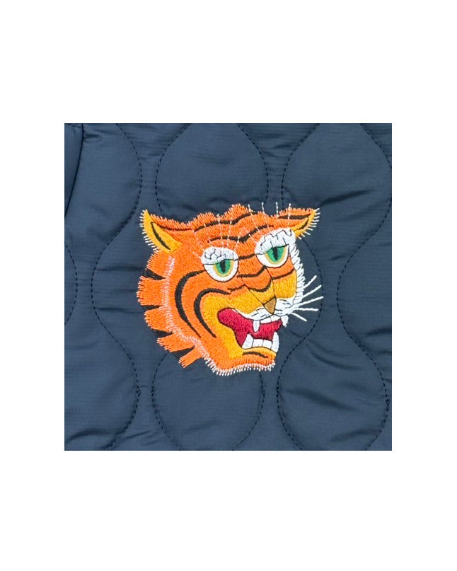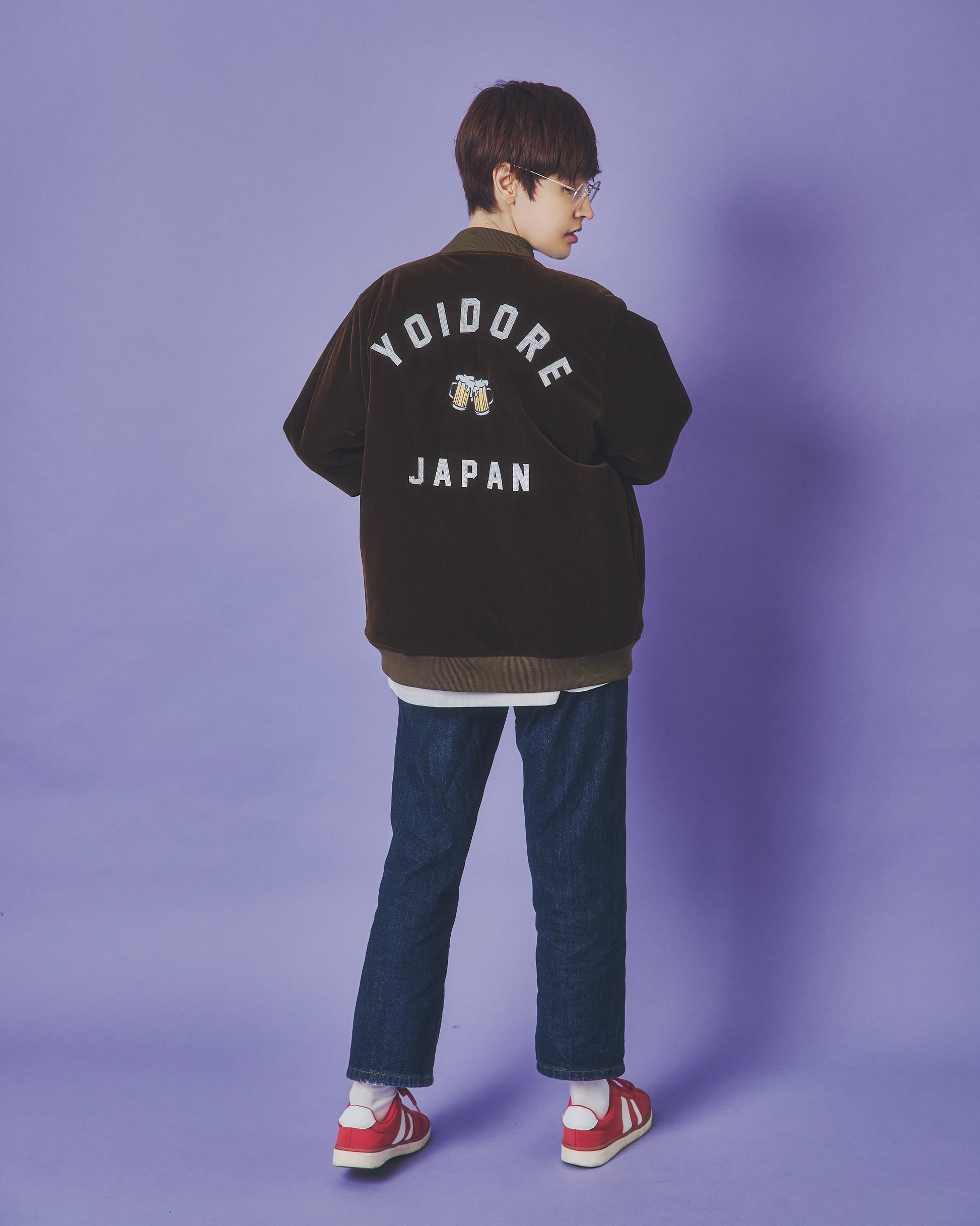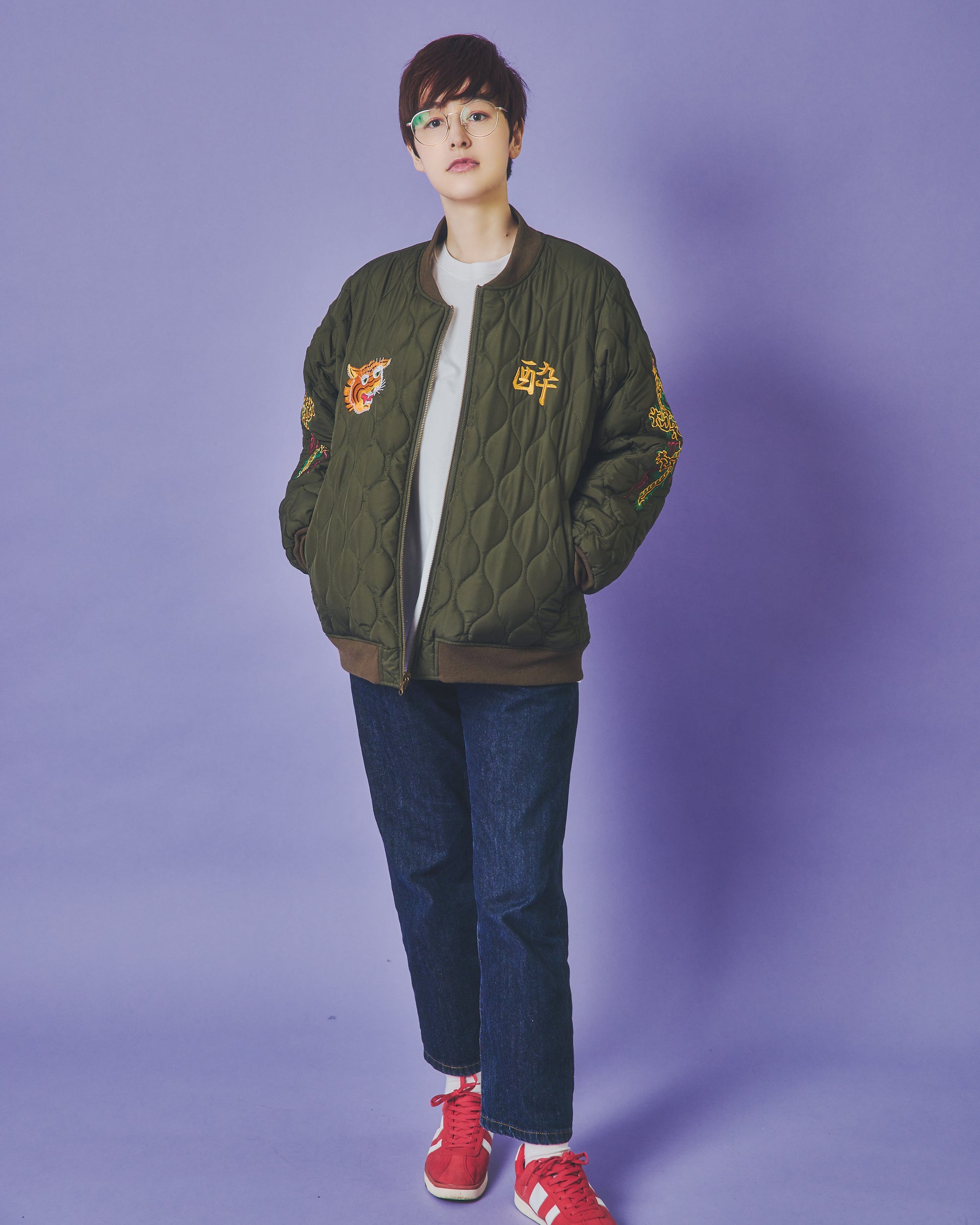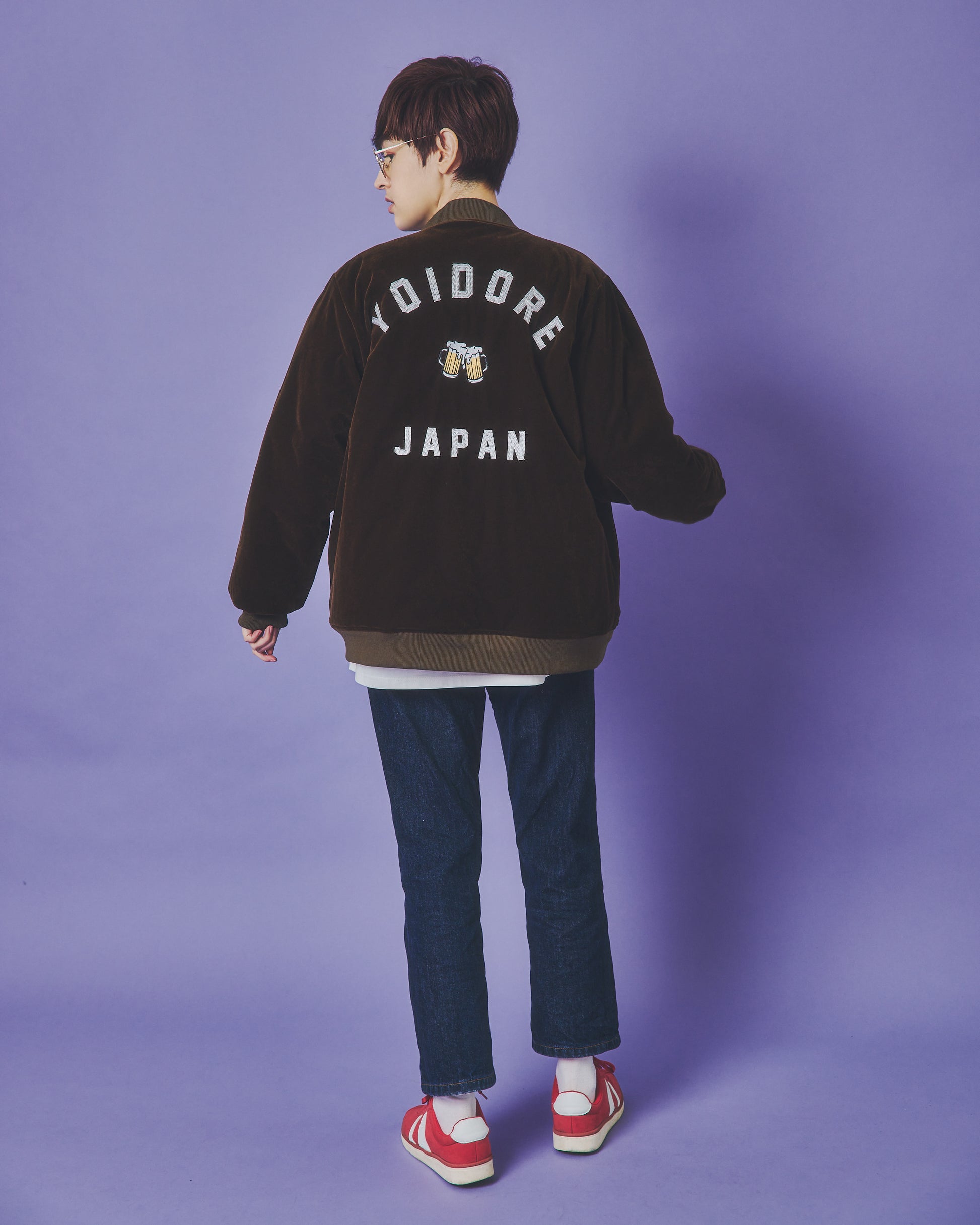 暖かみのあるウェーブキルト面はYOIDOREの代表的モチーフ「スーベニア」デザイン。胸には酔虎、袖には酔龍を刺繍であしらい、アグレッシブさを強調したミリタリーなアウターです。
